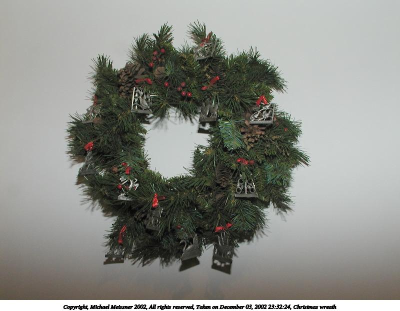 Picture #95: Christmas wreath 800x622, 67,722 bytes (67K), (html file) Copyright, Michael Meissner 2002, All rights reserved Olympus C-2100UZ camera f/8.0, ISO 100, 1/30 sec, 7.7mm, aperture priority, SHQ, cloudy, matrix metering 35mm equivalent focal length 43.0mm Taken by Michael Meissner on December 03, 2002 23:32:24 Last modified on December 04, 2002 at 07:29 |