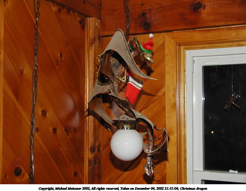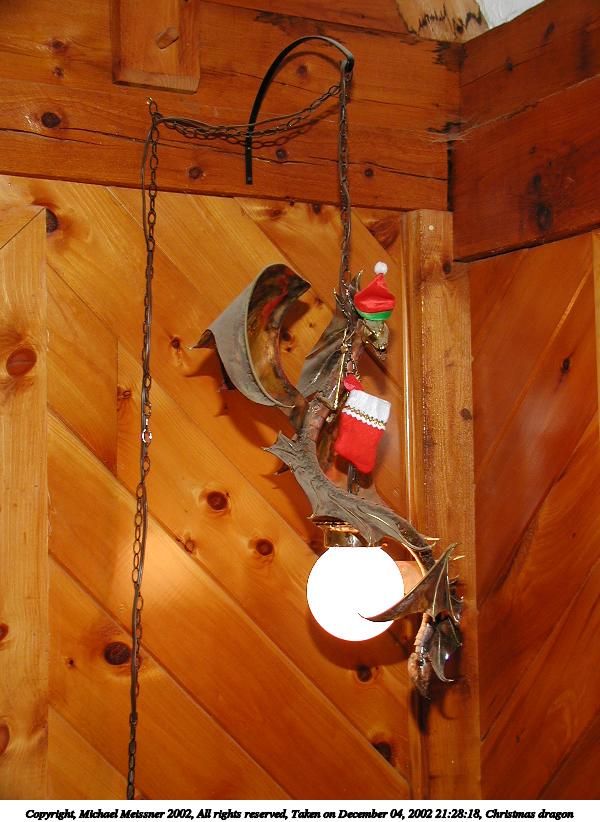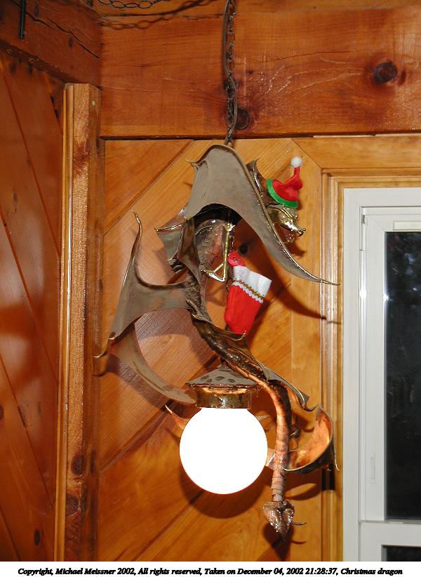 Picture #90: Christmas dragon #2 600x822, 85,307 bytes (84K), (html file) Copyright, Michael Meissner 2002, All rights reserved Olympus C-2100UZ camera f/2.8, ISO 100, 1/60 sec, 16.2mm, auto mode, SHQ, cloudy, matrix metering 35mm equivalent focal length 90.0mm Taken by Michael Meissner on December 04, 2002 21:28:37 Last modified on December 05, 2002 at 03:32 |