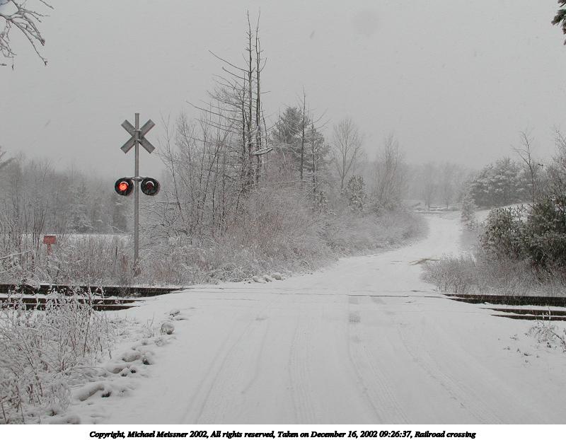 Picture #85: Railroad crossing 800x622, 73,910 bytes (73K), (html file) Copyright, Michael Meissner 2002, All rights reserved Olympus C-2100UZ camera f/8.0, ISO 100, 1/80 sec, 9.7mm, aperture priority, SHQ, matrix metering 35mm equivalent focal length 54.0mm Taken by Michael Meissner on December 16, 2002 09:26:37 Last modified on December 16, 2002 at 20:46 |