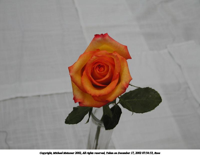 Picture #79: Rose #2 800x622, 62,612 bytes (62K), (html file) Copyright, Michael Meissner 2002, All rights reserved Olympus C-2100UZ camera f/8.0, ISO 100, 1/125 sec, 12.0mm, manual mode, SHQ, matrix metering 35mm equivalent focal length 67.0mm Taken by Michael Meissner on December 17, 2002 07:55:22 Last modified on December 17, 2002 at 08:13 Shutter speed of 1/125 or 1/250 may indicate use of flash |