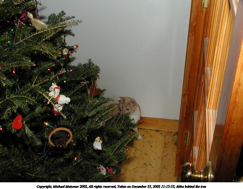 Picture #47: Abba behind the tree 800x622, 96,559 bytes (95K), (html file) Copyright, Michael Meissner 2002, All rights reserved Olympus C-2100UZ camera f/5.6, ISO 100, 1/40 sec, 8.6mm, aperture priority, SHQ, cloudy, matrix metering 35mm equivalent focal length 48.0mm Taken by Michael Meissner on December 25, 2002 11:15:53 Last modified on December 25, 2002 at 18:58 |
