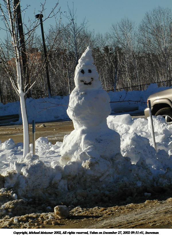 Picture #28: Snowman 600x822, 126,910 bytes (124K), (html file) Copyright, Michael Meissner 2002, All rights reserved Olympus C-2100UZ camera f/7.0, ISO 100, 1/800 sec, 21.5mm, auto mode, SHQ, cloudy, spot metering 35mm equivalent focal length 119.0mm Taken by Michael Meissner on December 27, 2002 09:31:41 Last modified on December 29, 2002 at 20:02 |