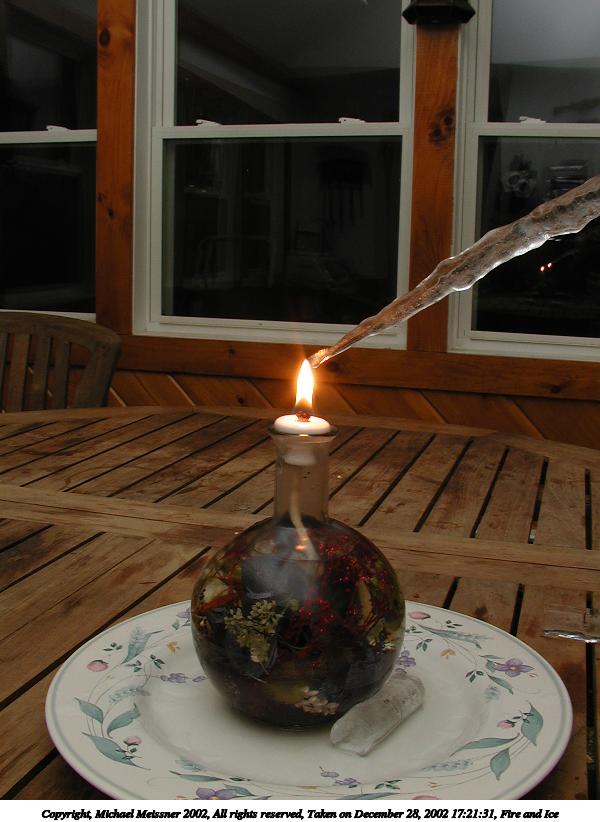 Picture #9: Fire and Ice #4 600x822, 53,512 bytes (53K), (html file) Copyright, Michael Meissner 2002, All rights reserved Olympus C-2100UZ camera f/8.0, ISO 100, 1/3 sec, 15.7mm, manual mode, SHQ, cloudy, matrix metering 35mm equivalent focal length 87.0mm Taken by Michael Meissner on December 28, 2002 17:23:02 Last modified on December 29, 2002 at 20:15 |