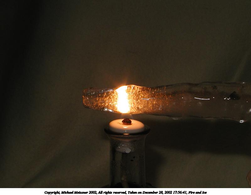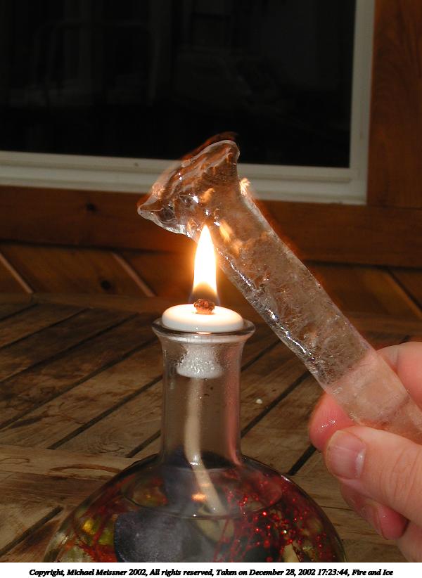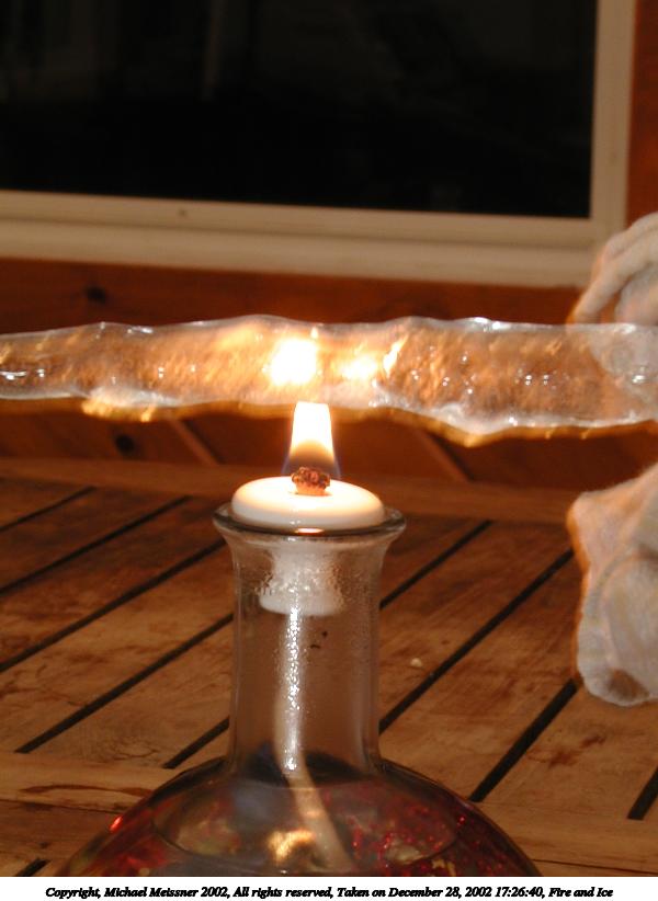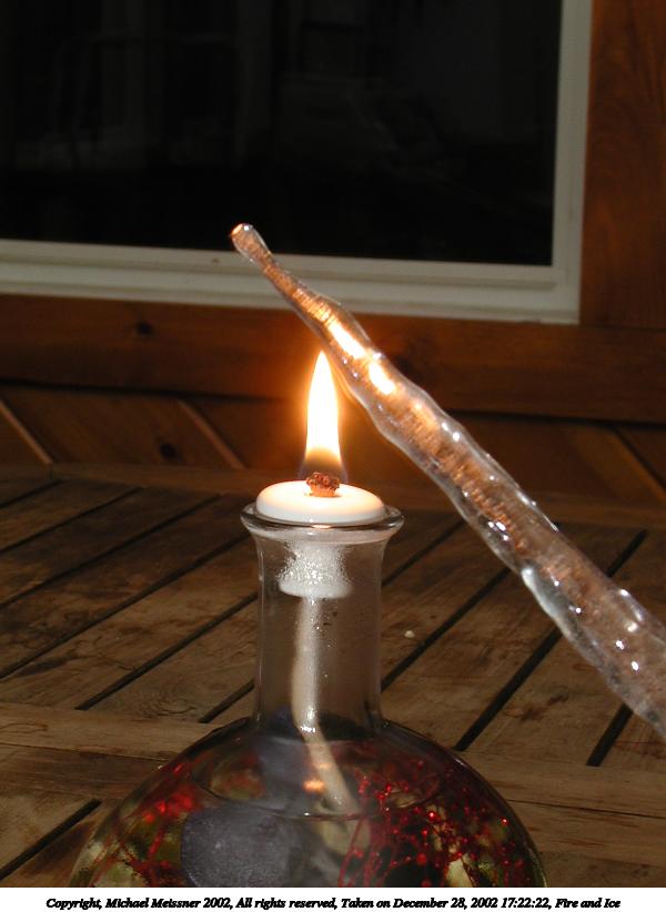 Picture #3: Fire and Ice #10 800x622, 35,700 bytes (35K), (html file) Copyright, Michael Meissner 2002, All rights reserved Olympus C-2100UZ camera f/8.0, ISO 100, 1/10 sec, 17.3mm, manual mode, SHQ, cloudy, matrix metering 35mm equivalent focal length 96.0mm Taken by Michael Meissner on December 28, 2002 17:57:06 Last modified on December 29, 2002 at 20:20 |