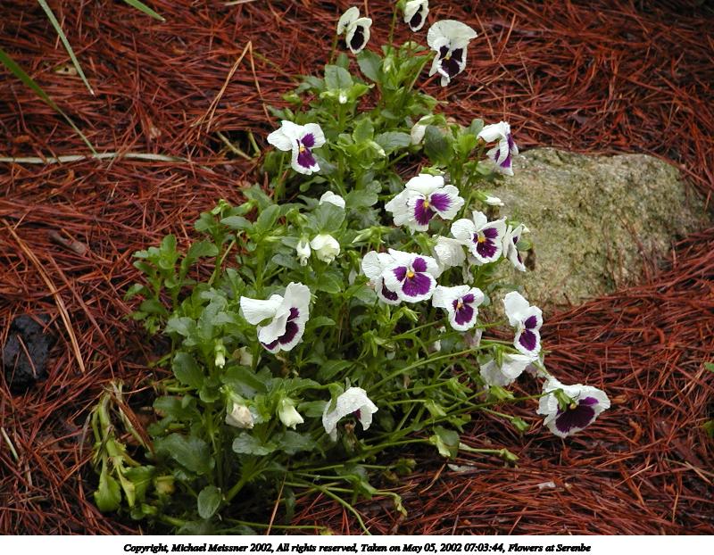 Picture #16: Flowers at Serenbe #5 800x622, 166,015 bytes (163K), (html file) Copyright, Michael Meissner 2002, All rights reserved Olympus C-2100UZ camera f/2.8, ISO 100, 1/125 sec, 7.0mm, auto mode, SHQ, matrix metering 35mm equivalent focal length 39.0mm Taken by Michael Meissner on May 05, 2002 08:27:49 Last modified on May 29, 2002 at 21:31 Shutter speed of 1/125 or 1/250 may indicate use of flash |