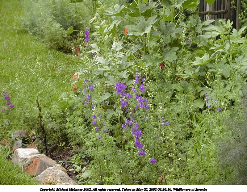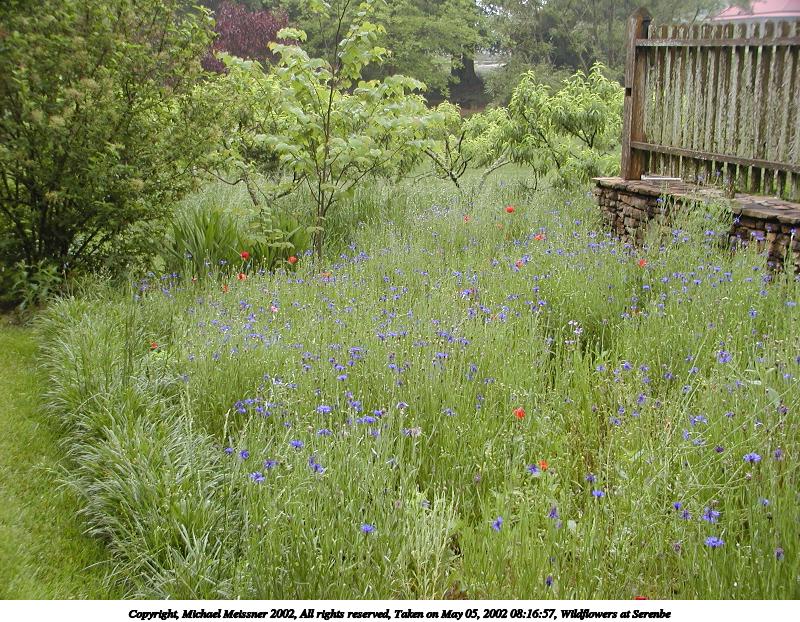 Picture #21: Wildflowers at Serenbe #2 800x622, 157,926 bytes (155K), (html file) Copyright, Michael Meissner 2002, All rights reserved Olympus C-2100UZ camera f/2.8, ISO 100, 1/125 sec, 22.3mm, auto mode, SHQ, matrix metering 35mm equivalent focal length 124.0mm Taken by Michael Meissner on May 05, 2002 08:26:10 Last modified on May 29, 2002 at 21:31 Shutter speed of 1/125 or 1/250 may indicate use of flash |