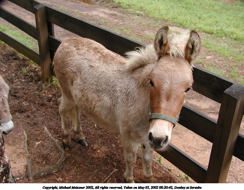 Picture #23: Donkey at Serenbe 800x622, 111,282 bytes (109K), (html file) Copyright, Michael Meissner 2002, All rights reserved Olympus C-2100UZ camera f/2.8, ISO 100, 1/50 sec, 8.0mm, auto mode, SHQ, matrix metering 35mm equivalent focal length 44.0mm Taken by Michael Meissner on May 05, 2002 08:20:42 Last modified on May 29, 2002 at 21:31 |