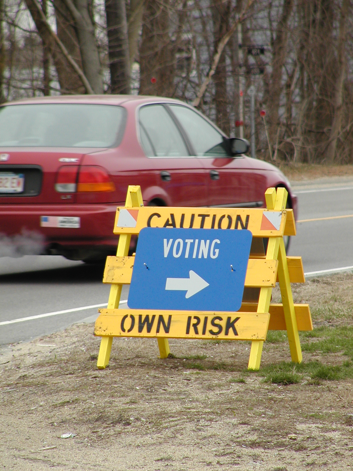 Picture #1: I thought voting was pretty safe in this country.... Thumb: 300x400, 32,946 bytes (33K) Small: 600x846, 98,592 bytes (97K), (html file) Large: 1200x1600, 1,262,368 bytes (1.2M), (html file) Copyright, Michael Meissner 2003, All rights reserved Olympus C-2100UZ camera f/3.5, ISO 100, 1/125 sec, 70.0mm, auto mode, SHQ, cloudy, matrix metering 35mm equivalent focal length 388.0mm Taken by Michael Meissner on April 01, 2003 14:05:03 Last modified on May 05, 2003 at 23:14 Shutter speed of 1/125 or 1/250 may indicate use of flash |