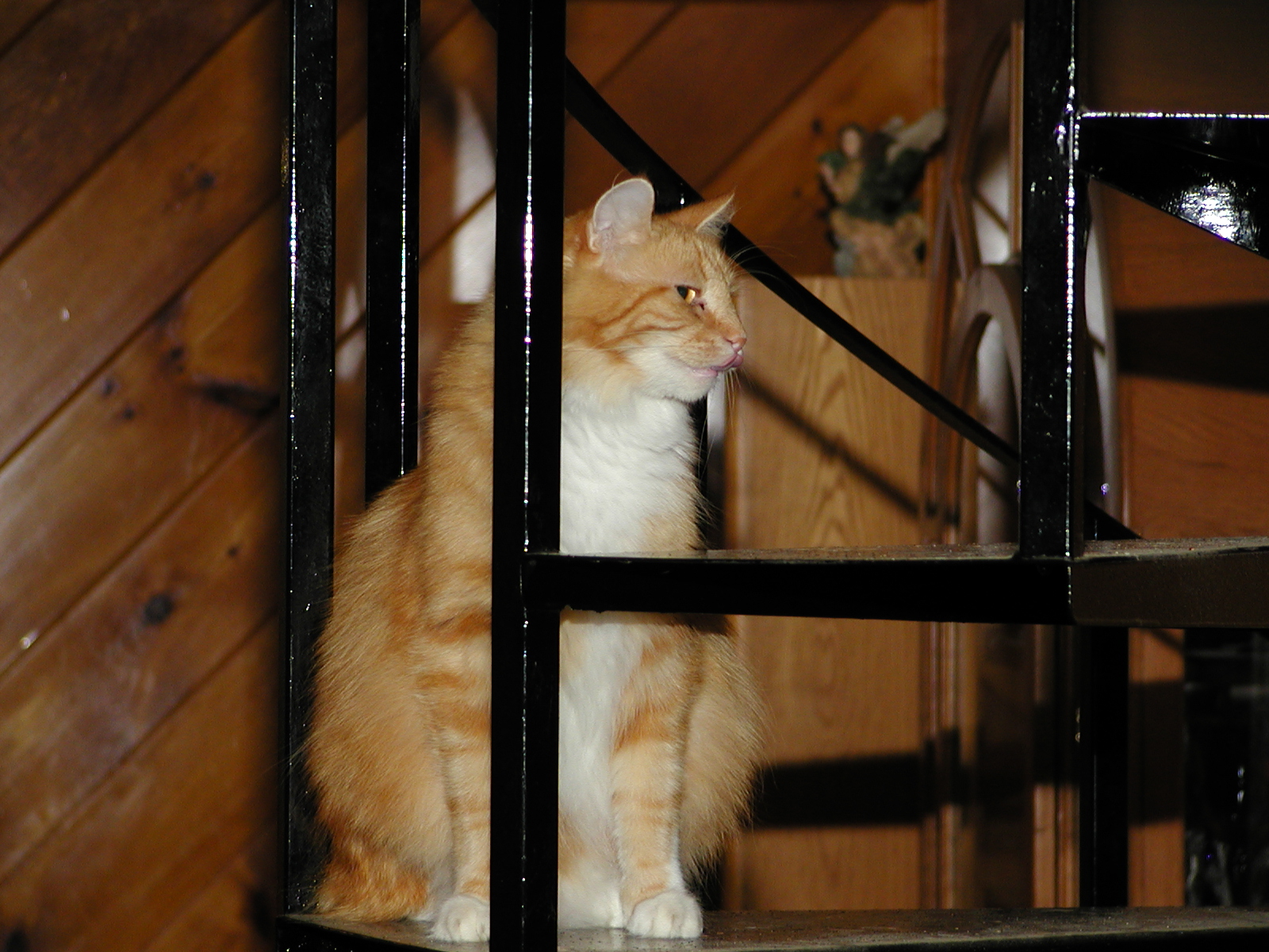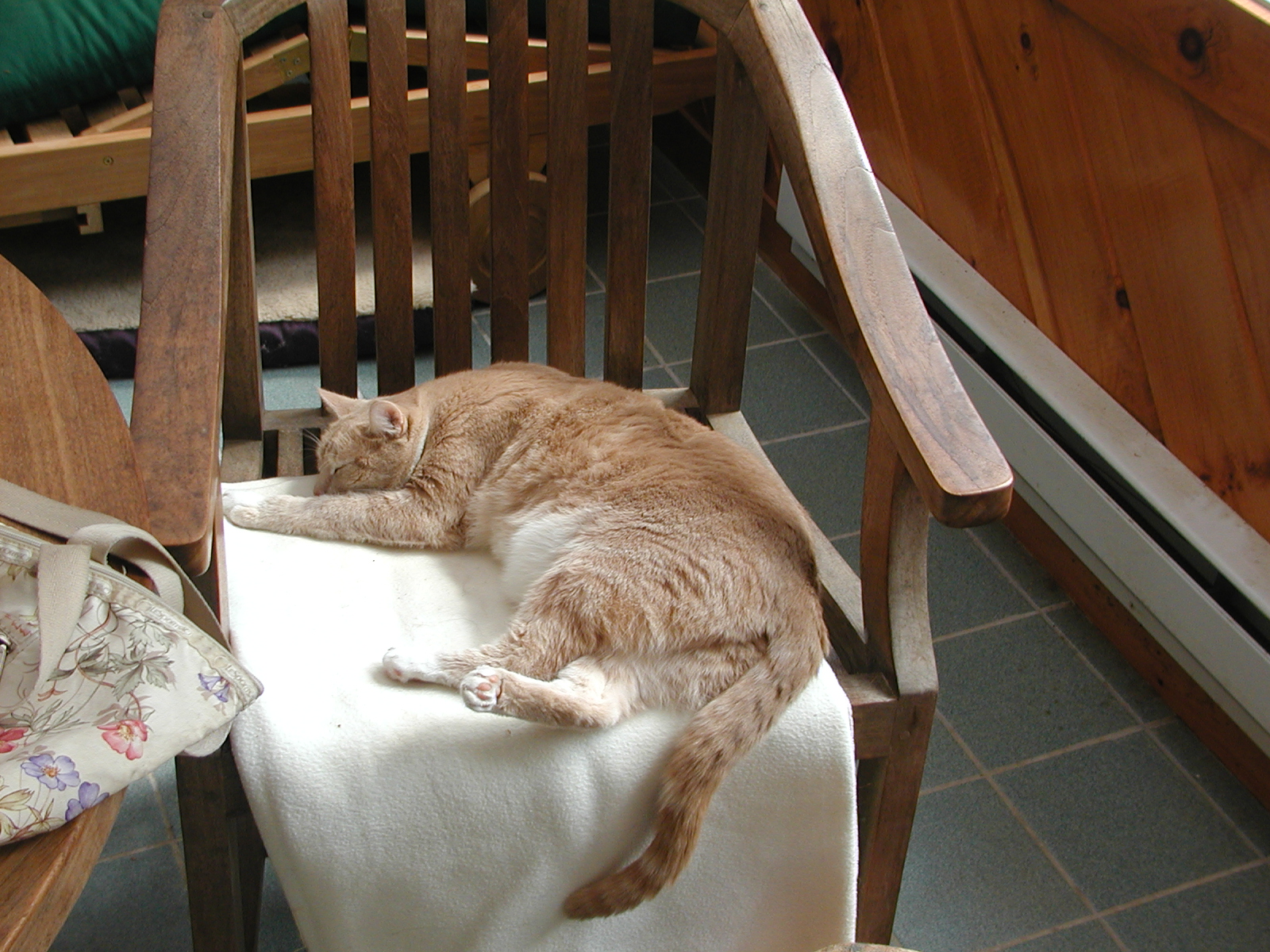 Picture #70: If I sleep with my tail over my eyes, I won't see the camera's flash Small: 800x623, 75,752 bytes (74K), (html file) Large: 1600x1200, 1,470,248 bytes (1.4M), (html file) Copyright, Michael Meissner 2003, All rights reserved Olympus C-2100UZ camera f/2.8, ISO 400, 1/80 sec, 17.9mm, auto mode, SHQ, matrix metering 35mm equivalent focal length 99.0mm Taken by Michael Meissner on September 17, 2003 11:07:15 Last modified on September 17, 2003 at 11:15 |