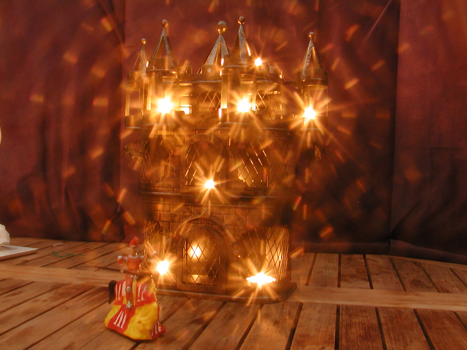 Picture #89: Candle castle (gold reflector with rear curtain flash) Small: 800x623, 103,274 bytes (101K), (html file) Large: 1600x1200, 1,392,415 bytes (1.3M), (html file) Copyright, Michael Meissner 2003, All rights reserved Olympus C-2100UZ camera f/8.0, ISO 100, 2.5 sec, 7.0mm, manual mode, SHQ, cloudy, matrix metering 35mm equivalent focal length 39.0mm Taken by Michael Meissner on September 13, 2003 22:29:08 Last modified on September 14, 2003 at 08:51 |