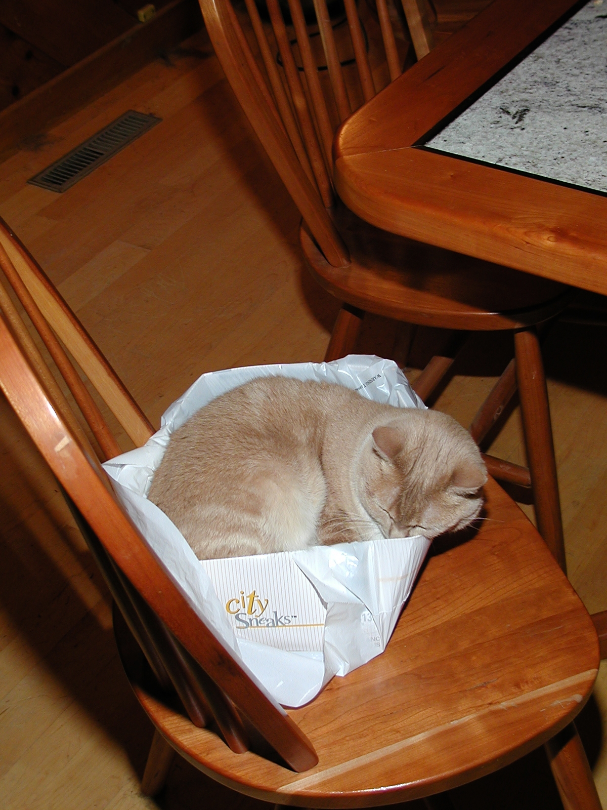 Picture #185: Cat in a shoebox #2 Small: 600x823, 70,556 bytes (69K), (html file) Large: 1200x1600, 1,265,048 bytes (1.2M), (html file) Olympus C-2100UZ camera f/2.8, ISO 100, 1/50 sec, 11.3mm, auto mode, SHQ, matrix metering 35mm equivalent focal length 63.0mm Taken by Michael Meissner on October 01, 2003 17:34:15 Last modified on December 06, 2004 at 08:28 |