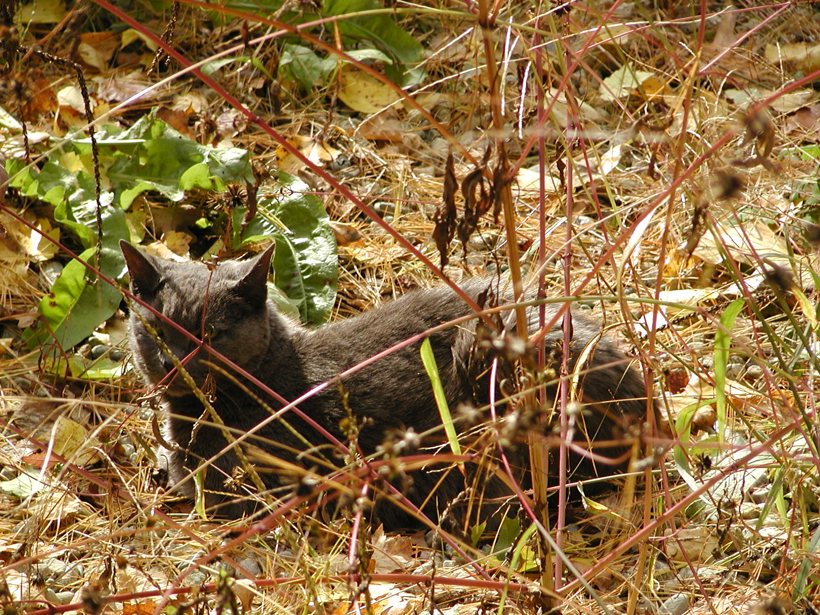 Picture #73: Can you spot the cat? Small: 800x623, 132,229 bytes (130K), (html file) Large: 1600x1200, 1,301,981 bytes (1.2M), (html file) Olympus C-2100UZ camera f/2.8, ISO 100, 1/125 sec, 29.8mm, auto mode, SHQ, cloudy, matrix metering 35mm equivalent focal length 165.0mm Taken by Michael Meissner on October 21, 2003 10:19:01 Last modified on December 06, 2004 at 08:28 Shutter speed of 1/125 or 1/250 may indicate use of flash |