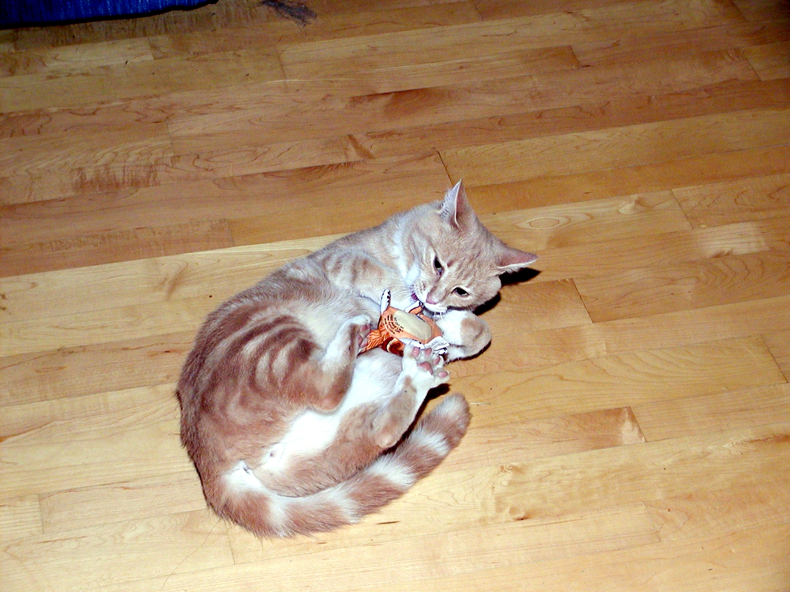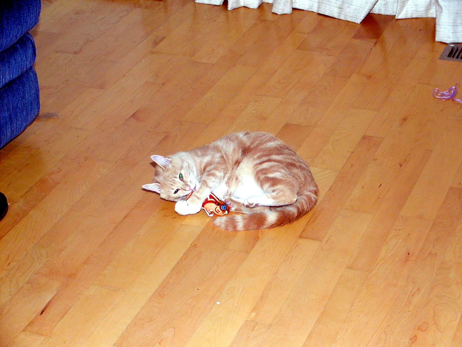 Picture #38: America inspects the new cat toy Small: 800x623, 72,888 bytes (72K), (html file) Large: 1600x1200, 1,264,605 bytes (1.2M), (html file) Copyright, Michael Meissner 2003, All rights reserved Olympus C-2100UZ camera f/2.8, ISO 100, 1/60 sec, 13.8mm, auto mode, SHQ, matrix metering 35mm equivalent focal length 77.0mm Taken by Michael Meissner on November 17, 2003 18:40:14 Last modified on November 18, 2003 at 13:41 |