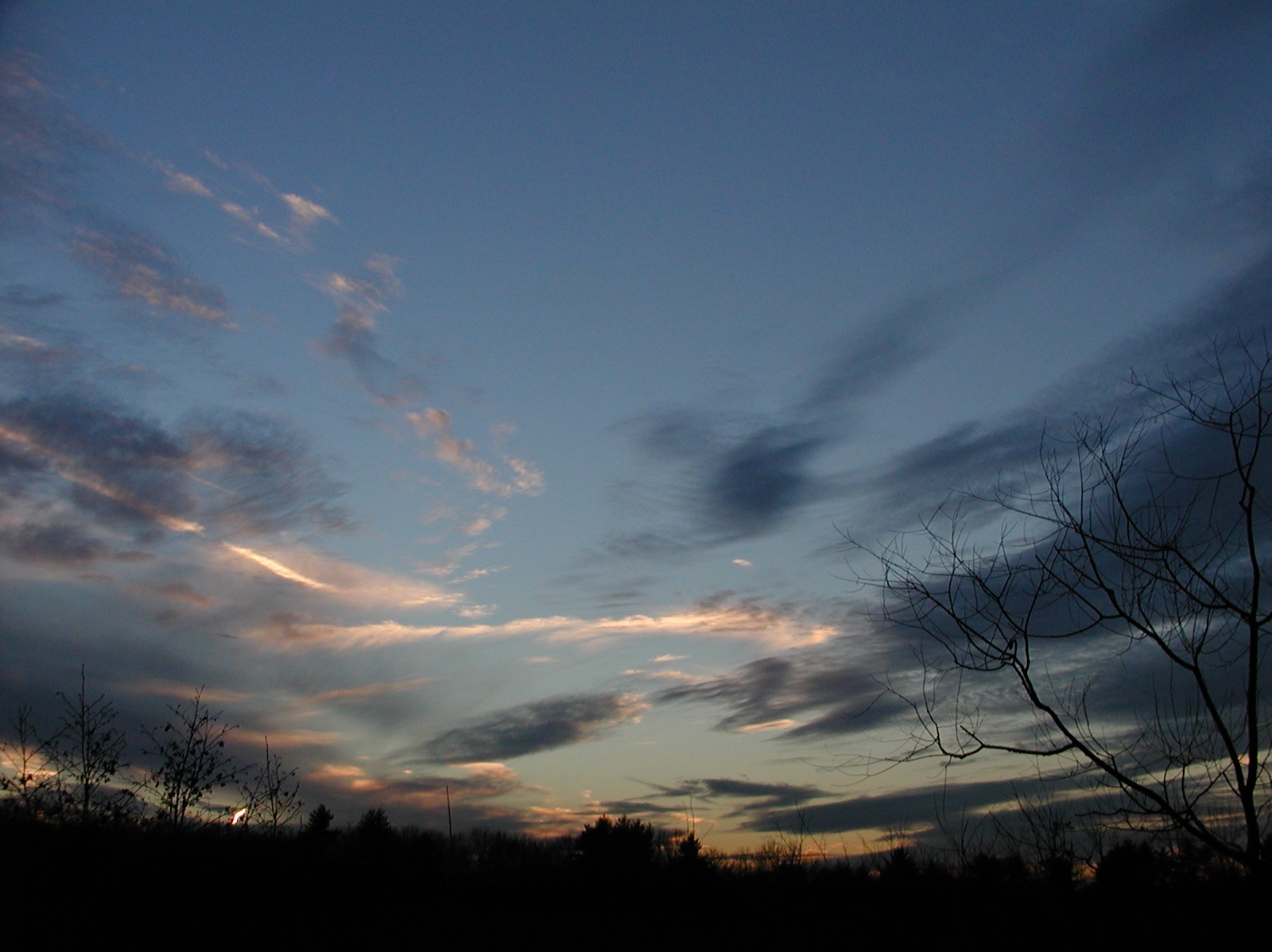 Picture #4: Sunset clouds in south Boston #2 Small: 800x378, 45,299 bytes (45K), (html file) Large: 1600x709, 600,193 bytes (587K), (html file) Copyright, Michael Meissner 2003, All rights reserved Olympus C-2100UZ camera f/2.8, ISO 100, 1/400 sec, 24.2mm, auto mode, SHQ, spot metering 35mm equivalent focal length 134.0mm Taken by Michael Meissner on November 29, 2003 15:50:38 Last modified on December 01, 2003 at 00:09 |