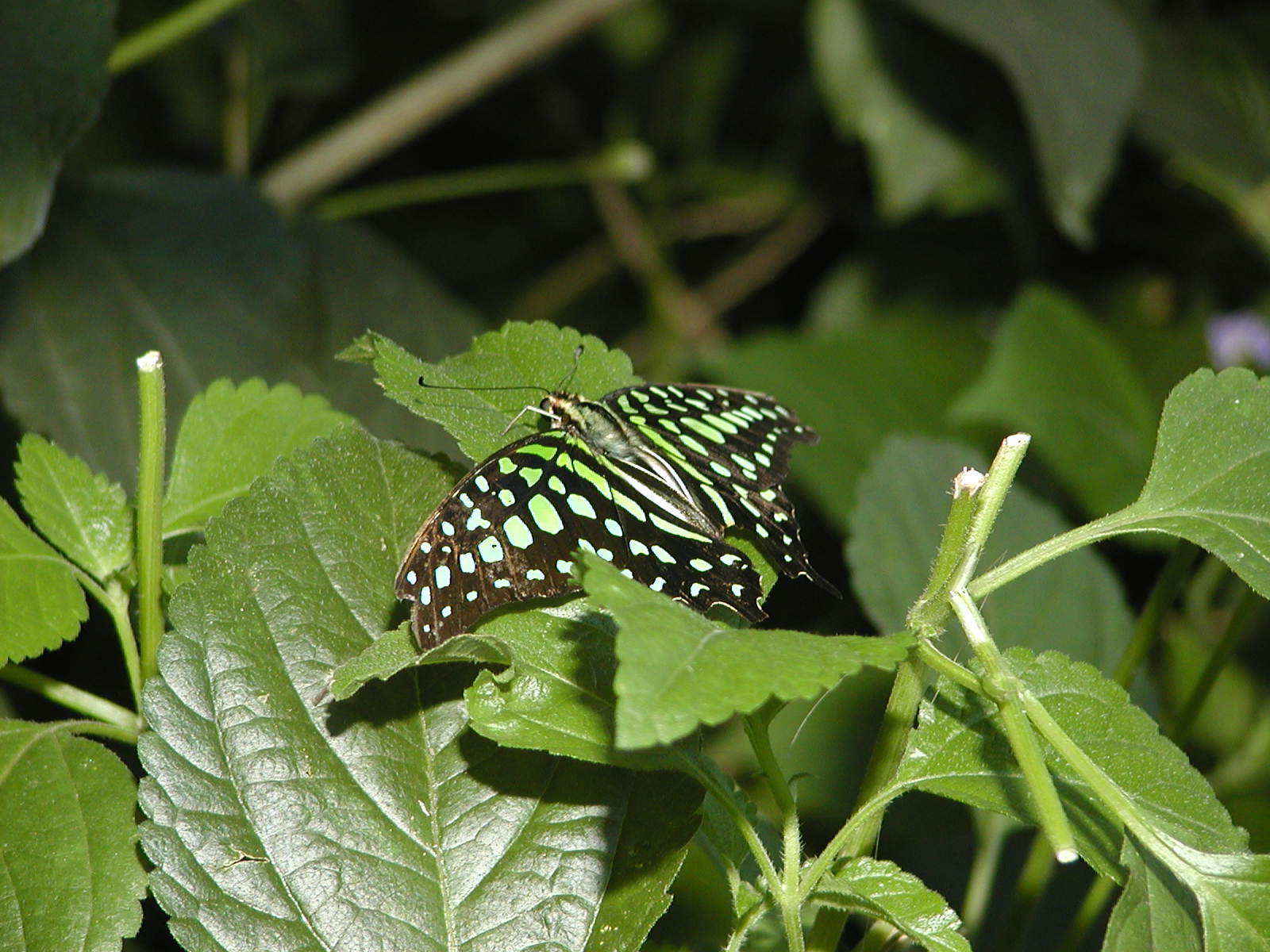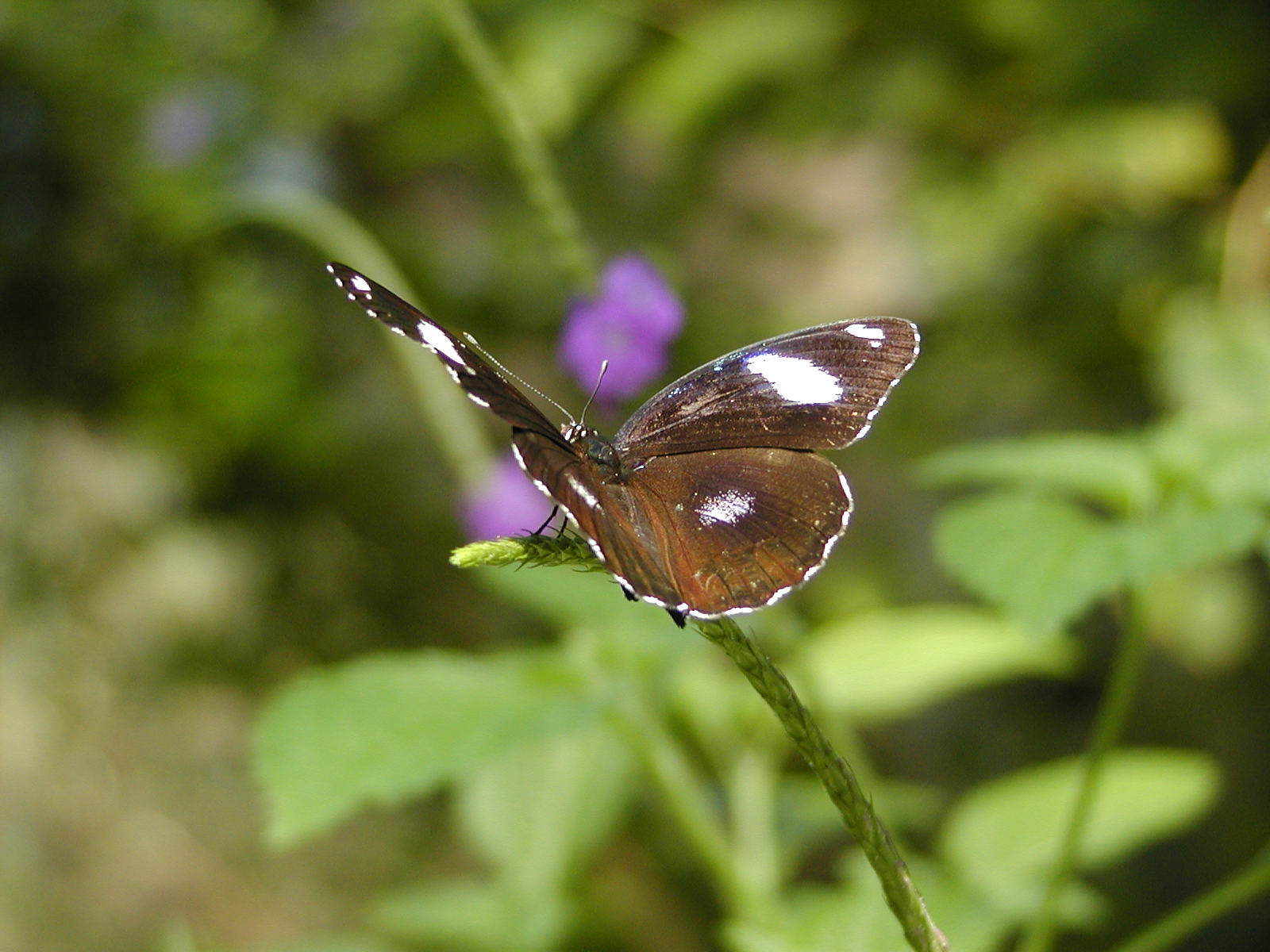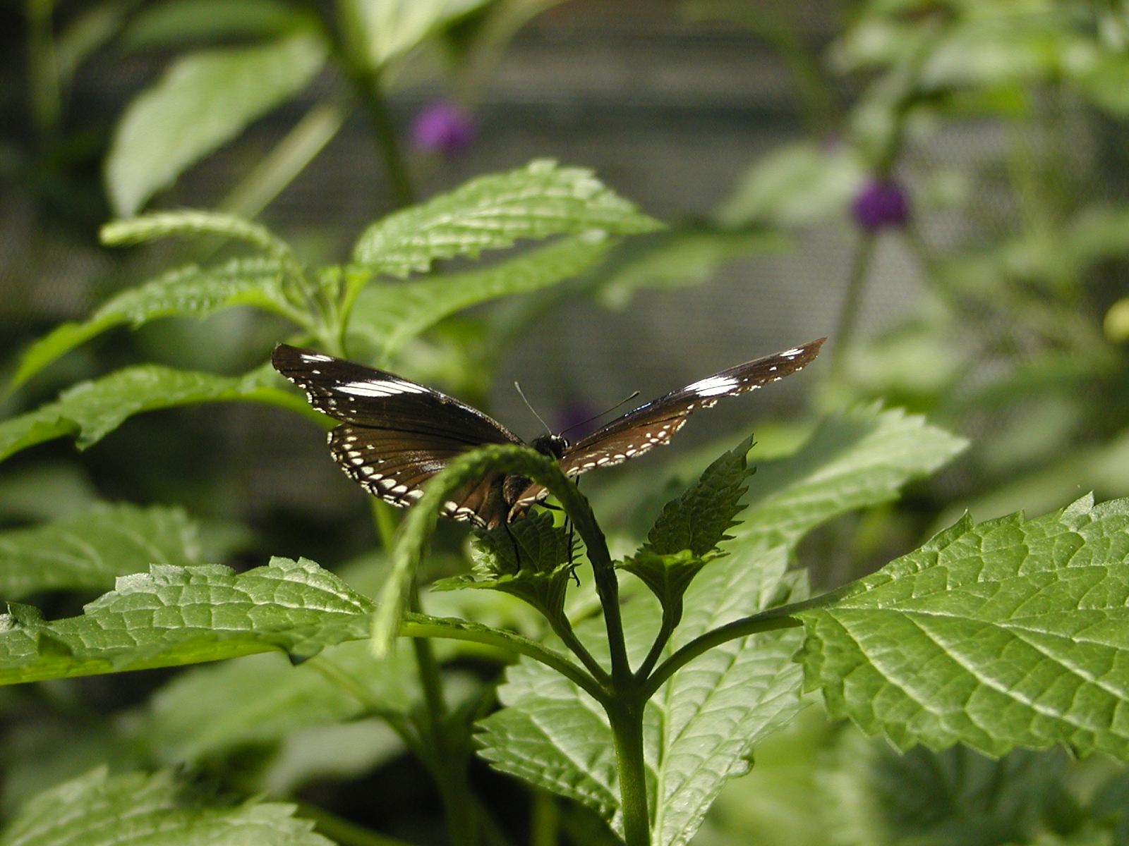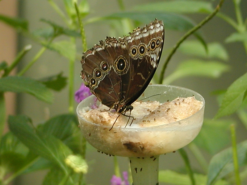 Picture #9: Common Blue Morpho #3 Thumb: 400x300, 34,786 bytes (34K) Small: 800x623, 97,317 bytes (96K), (html file) Large: 1600x1200, 1,252,876 bytes (1.2M), (html file) Copyright, Michael Meissner 2003, All rights reserved Olympus C-2100UZ camera f/2.8, ISO 100, 1/250 sec, 24.2mm, shutter priority, SHQ, cloudy, matrix metering 35mm equivalent focal length 134.0mm Taken by Michael Meissner on September 20, 2003 14:23:28 Last modified on September 20, 2003 at 22:28 Shutter speed of 1/125 or 1/250 may indicate use of flash |