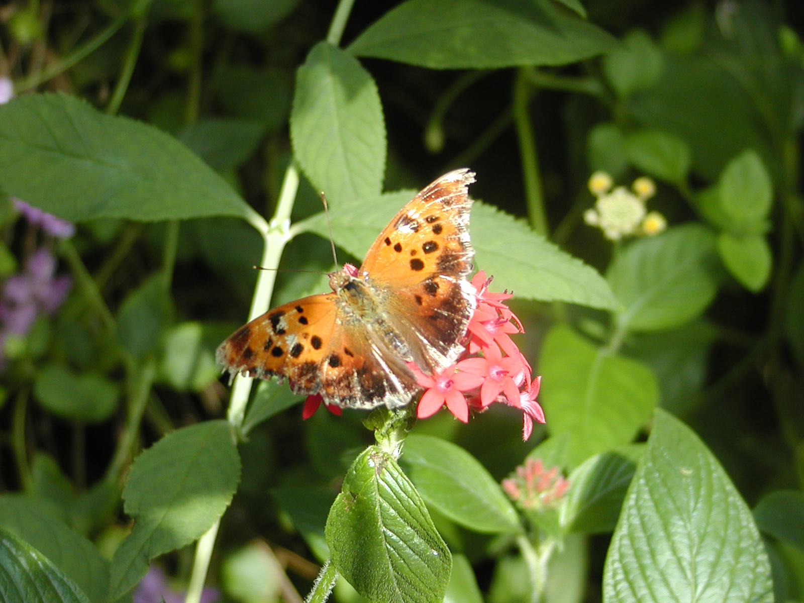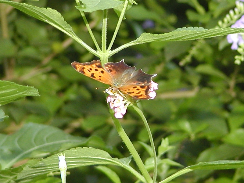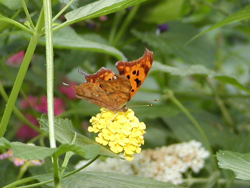 Picture #7: Butterfly Thumb: 400x300, 27,233 bytes (27K) Small: 800x623, 74,688 bytes (73K), (html file) Large: 800x600, 362,198 bytes (354K), (html file) Copyright, Michael Meissner 2003, All rights reserved Olympus C-2100UZ camera f/2.8, ISO 100, 1/250 sec, 19.3mm, shutter priority, SHQ, cloudy, matrix metering 35mm equivalent focal length 107.0mm Taken by Michael Meissner on September 20, 2003 14:22:09 Last modified on September 20, 2003 at 22:24 Shutter speed of 1/125 or 1/250 may indicate use of flash |