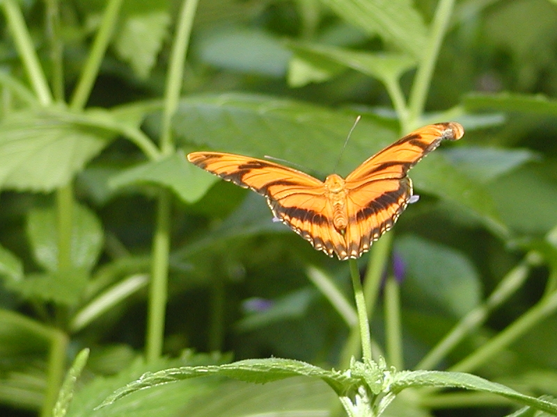 Picture #3: Tiger Longwing #2 Thumb: 300x400, 23,423 bytes (23K) Small: 600x823, 64,030 bytes (63K), (html file) Large: 600x800, 342,079 bytes (335K), (html file) Copyright, Michael Meissner 2003, All rights reserved Olympus C-2100UZ camera f/2.8, ISO 100, 1/250 sec, 25.2mm, shutter priority, SHQ, cloudy, matrix metering 35mm equivalent focal length 140.0mm Taken by Michael Meissner on September 20, 2003 14:19:40 Last modified on September 20, 2003 at 22:11 Shutter speed of 1/125 or 1/250 may indicate use of flash |