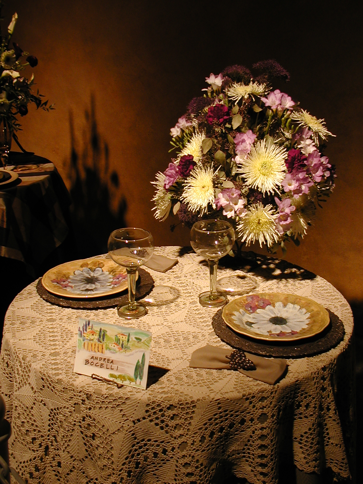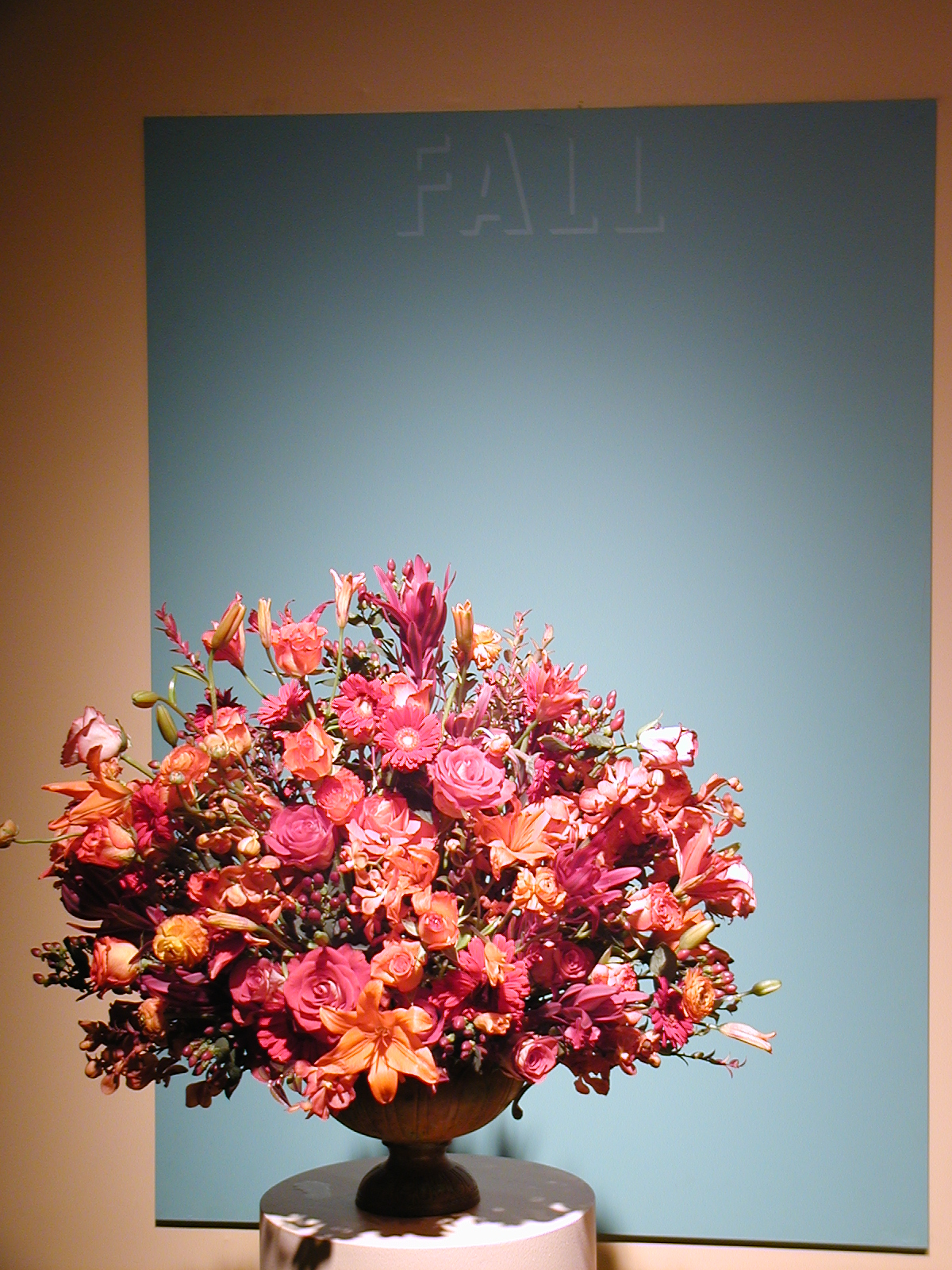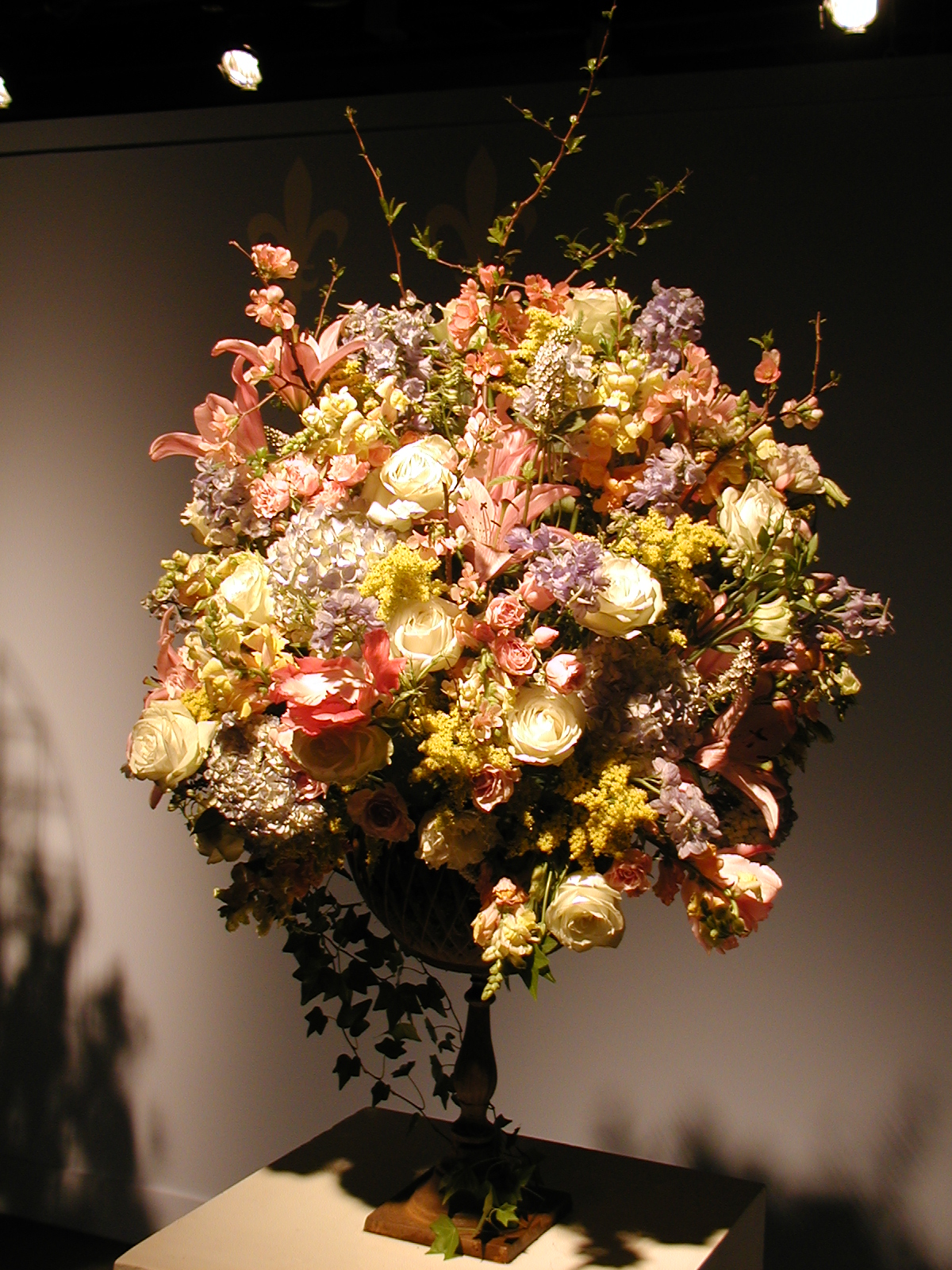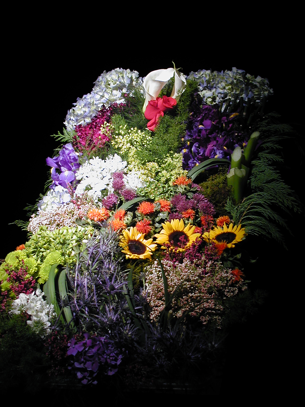 Picture #35: Floral design #11 Small: 600x823, 107,073 bytes (105K), (html file) Large: 1200x1600, 1,366,314 bytes (1.3M), (html file) Copyright, Michael Meissner 2003, All rights reserved Olympus C-2100UZ camera f/2.8, ISO 100, 1/250 sec, 11.0mm, auto mode, SHQ, matrix metering 35mm equivalent focal length 61.0mm Taken by Michael Meissner on March 17, 2003 10:02:26 Last modified on March 28, 2003 at 16:02 Shutter speed of 1/125 or 1/250 may indicate use of flash |