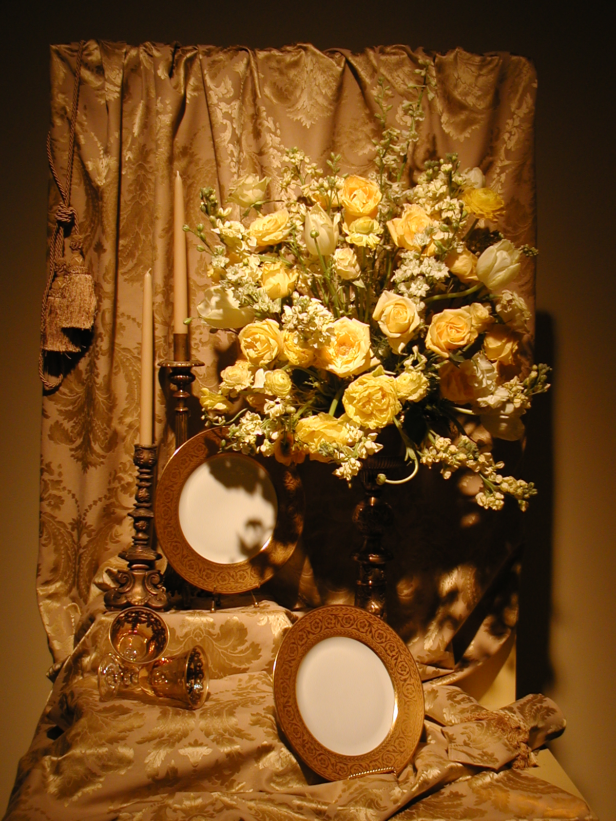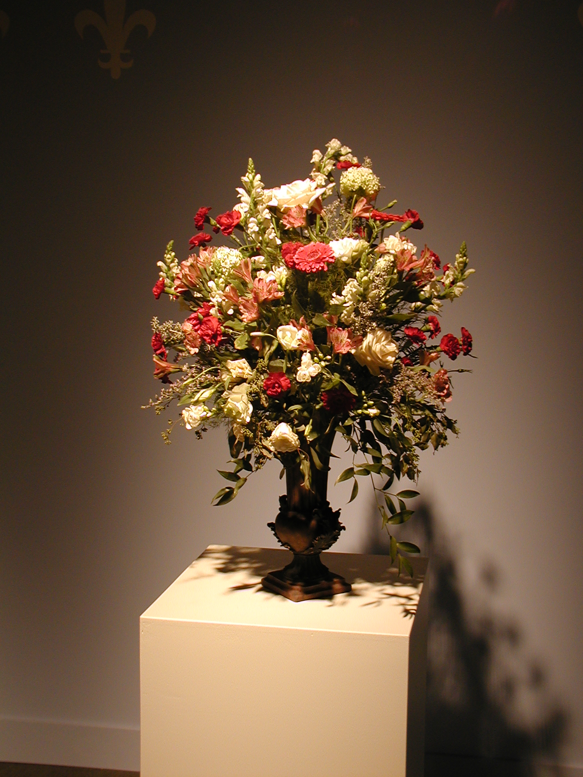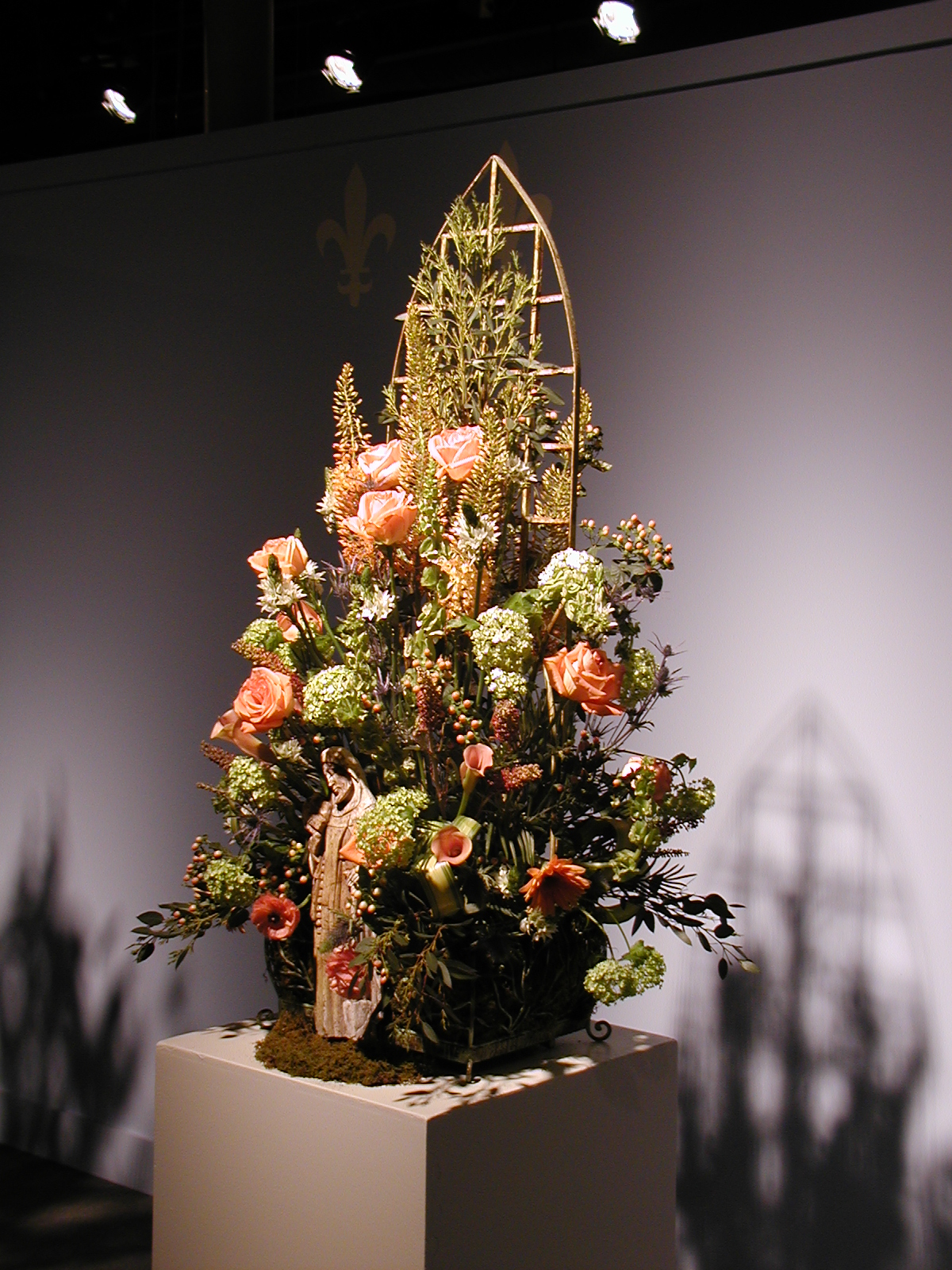 Picture #38: Floral design #8 Small: 600x823, 87,858 bytes (86K), (html file) Large: 1200x1600, 1,103,777 bytes (1.1M), (html file) Copyright, Michael Meissner 2003, All rights reserved Olympus C-2100UZ camera f/2.8, ISO 100, 1/125 sec, 11.0mm, auto mode, SHQ, matrix metering 35mm equivalent focal length 61.0mm Taken by Michael Meissner on March 17, 2003 09:59:51 Last modified on March 28, 2003 at 16:02 Shutter speed of 1/125 or 1/250 may indicate use of flash |