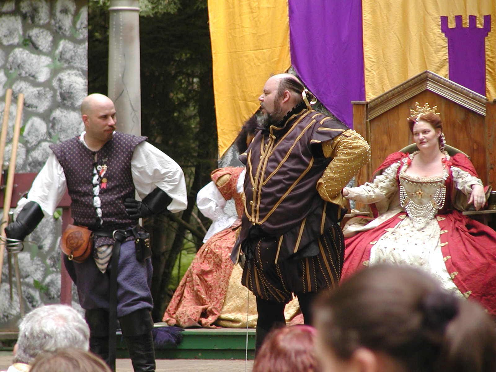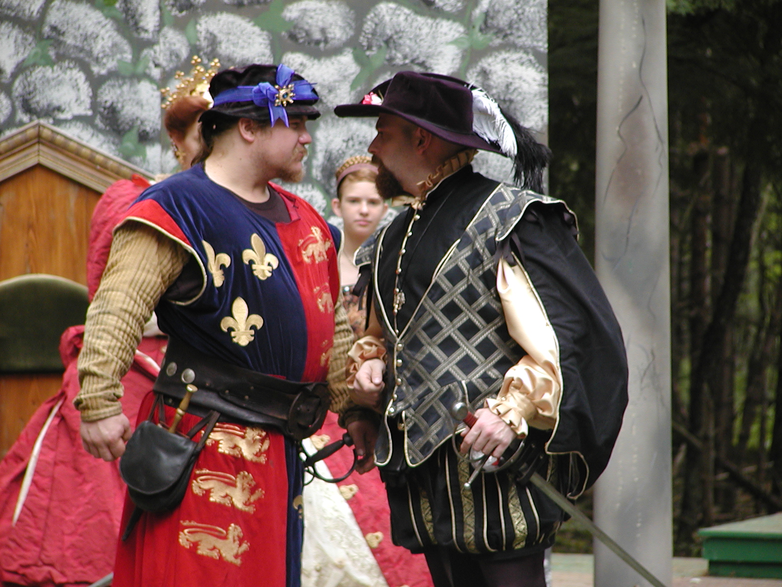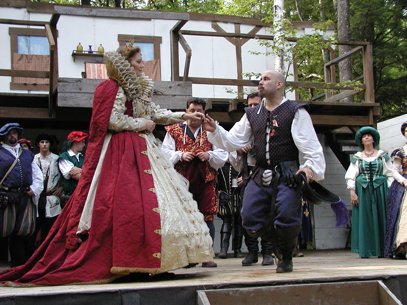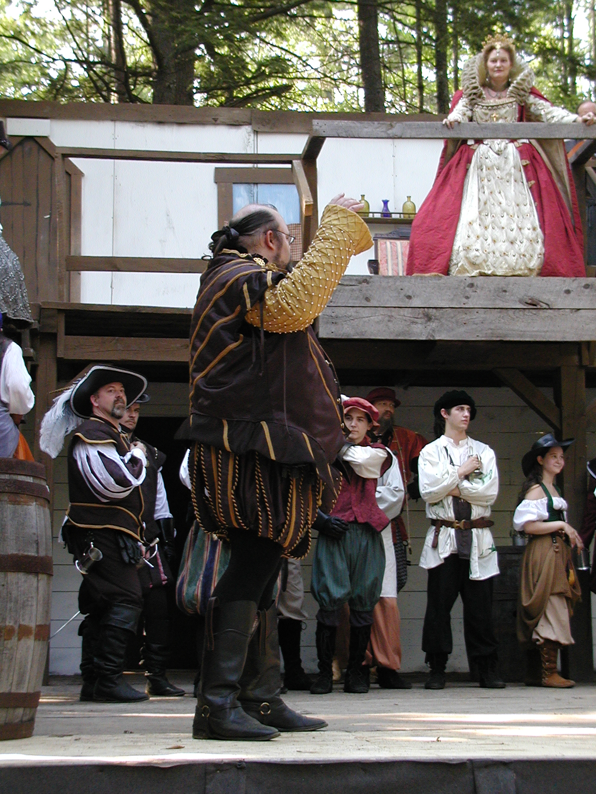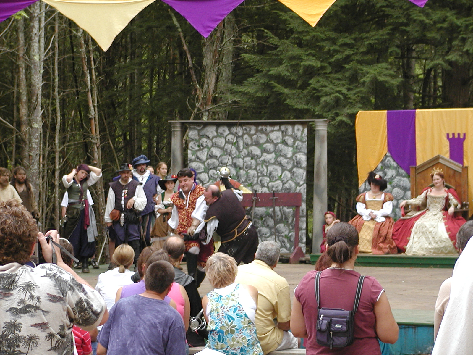 Picture #13: The queen confronts Mendoza and Drake #2 Small: 800x623, 135,070 bytes (132K), (html file) Large: 1600x1200, 1,254,998 bytes (1.2M), (html file) Copyright, Michael Meissner 2003, All rights reserved Olympus C-2100UZ camera f/2.8, ISO 100, 1/125 sec, 17.9mm, auto mode, SHQ, matrix metering 35mm equivalent focal length 99.0mm Taken by Michael Meissner on August 10, 2003 11:17:56 Last modified on August 14, 2003 at 10:50 Shutter speed of 1/125 or 1/250 may indicate use of flash |