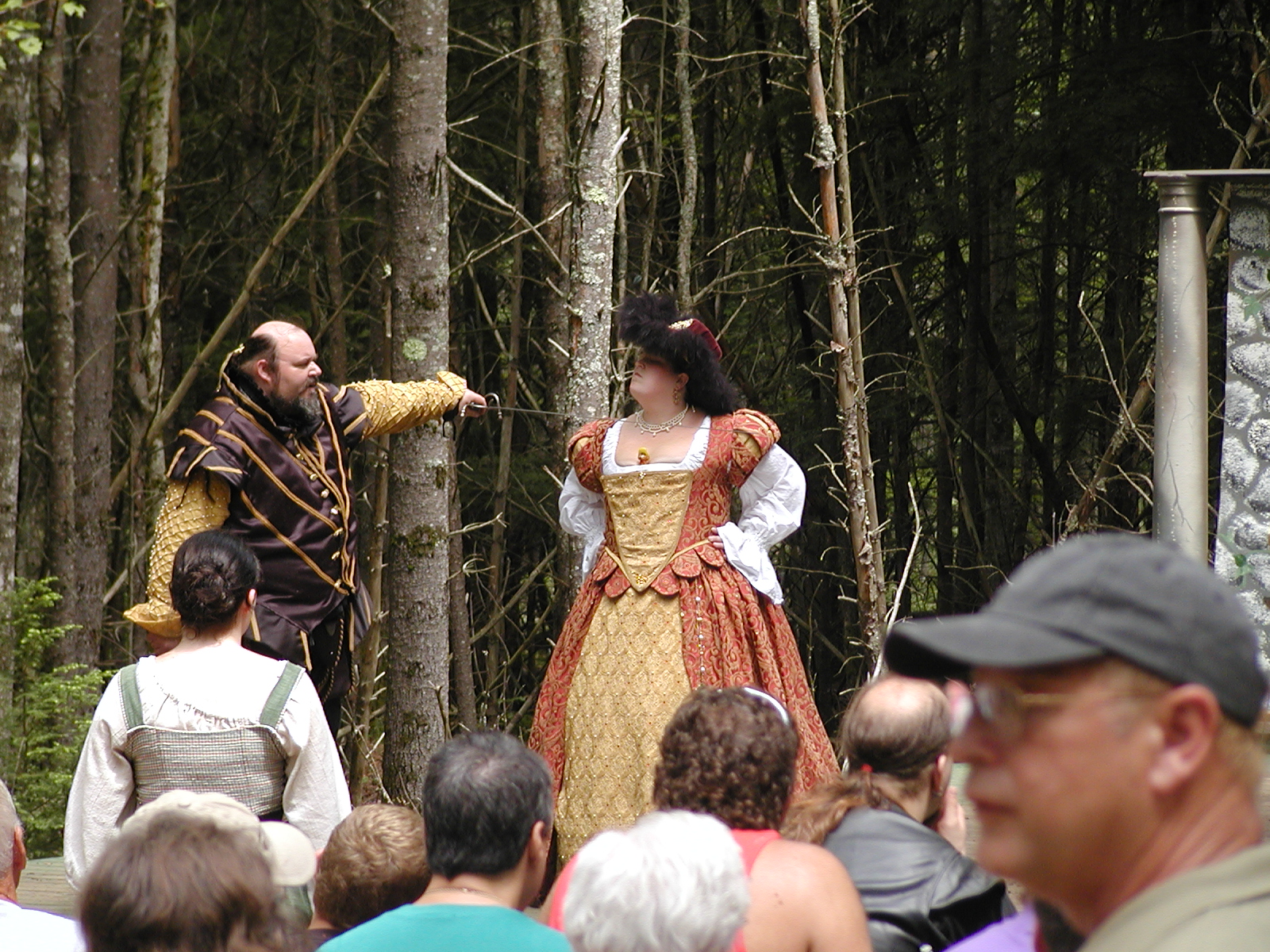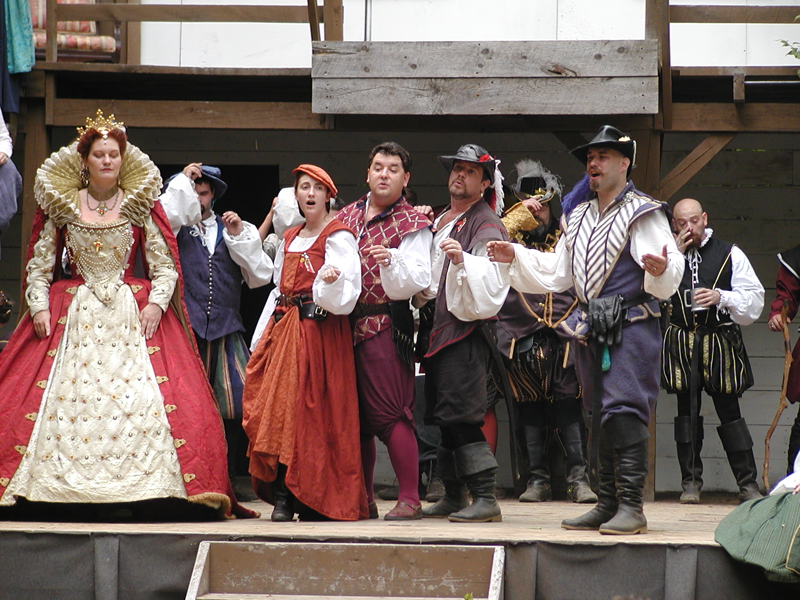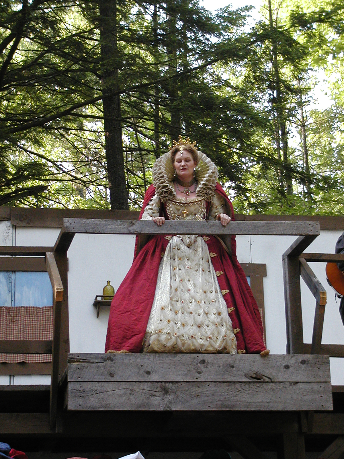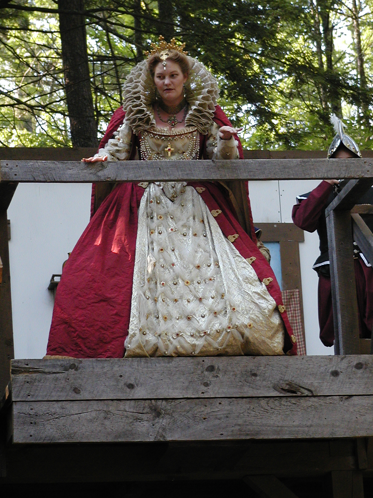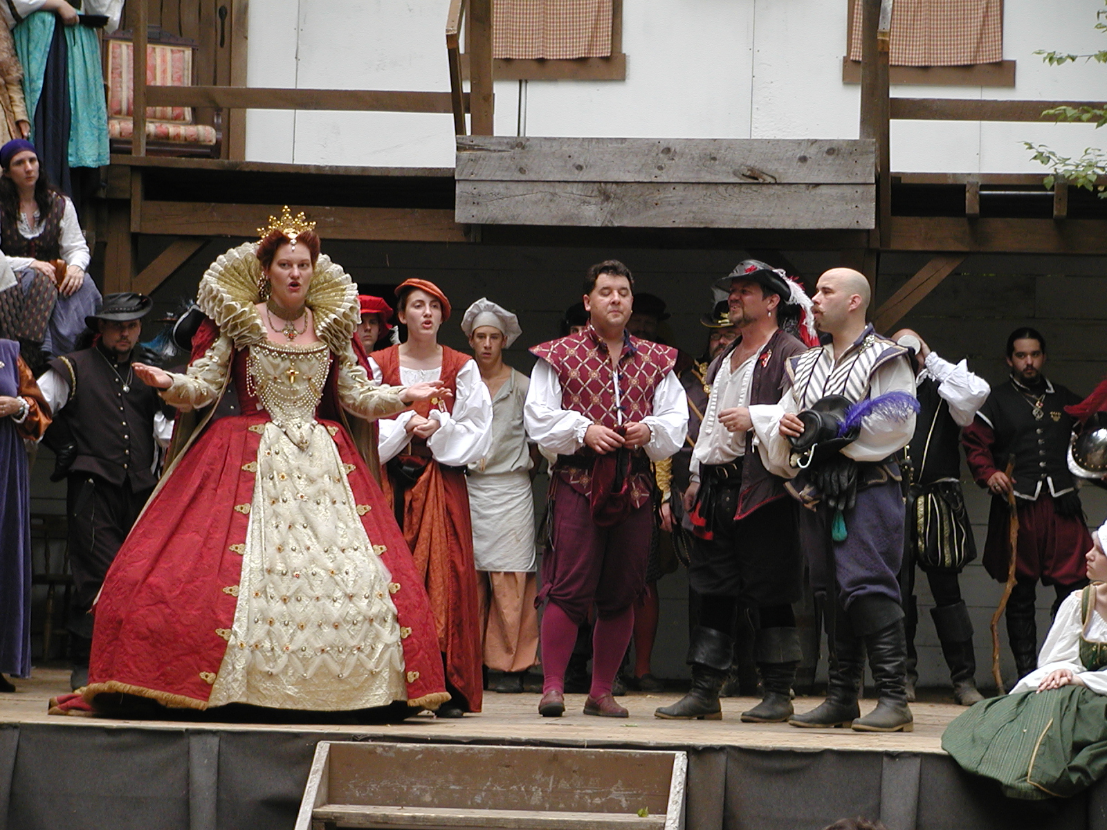 Picture #13: The queen confronts Mendoza and Drake #2 Small: 800x623, 135,070 bytes (132K), (html file) Large: 1600x1200, 1,254,998 bytes (1.2M), (html file) Copyright, Michael Meissner 2003, All rights reserved Olympus C-2100UZ camera f/2.8, ISO 100, 1/125 sec, 17.9mm, auto mode, SHQ, matrix metering 35mm equivalent focal length 99.0mm Taken by Michael Meissner on August 10, 2003 11:17:56 Last modified on August 14, 2003 at 10:50 Shutter speed of 1/125 or 1/250 may indicate use of flash |