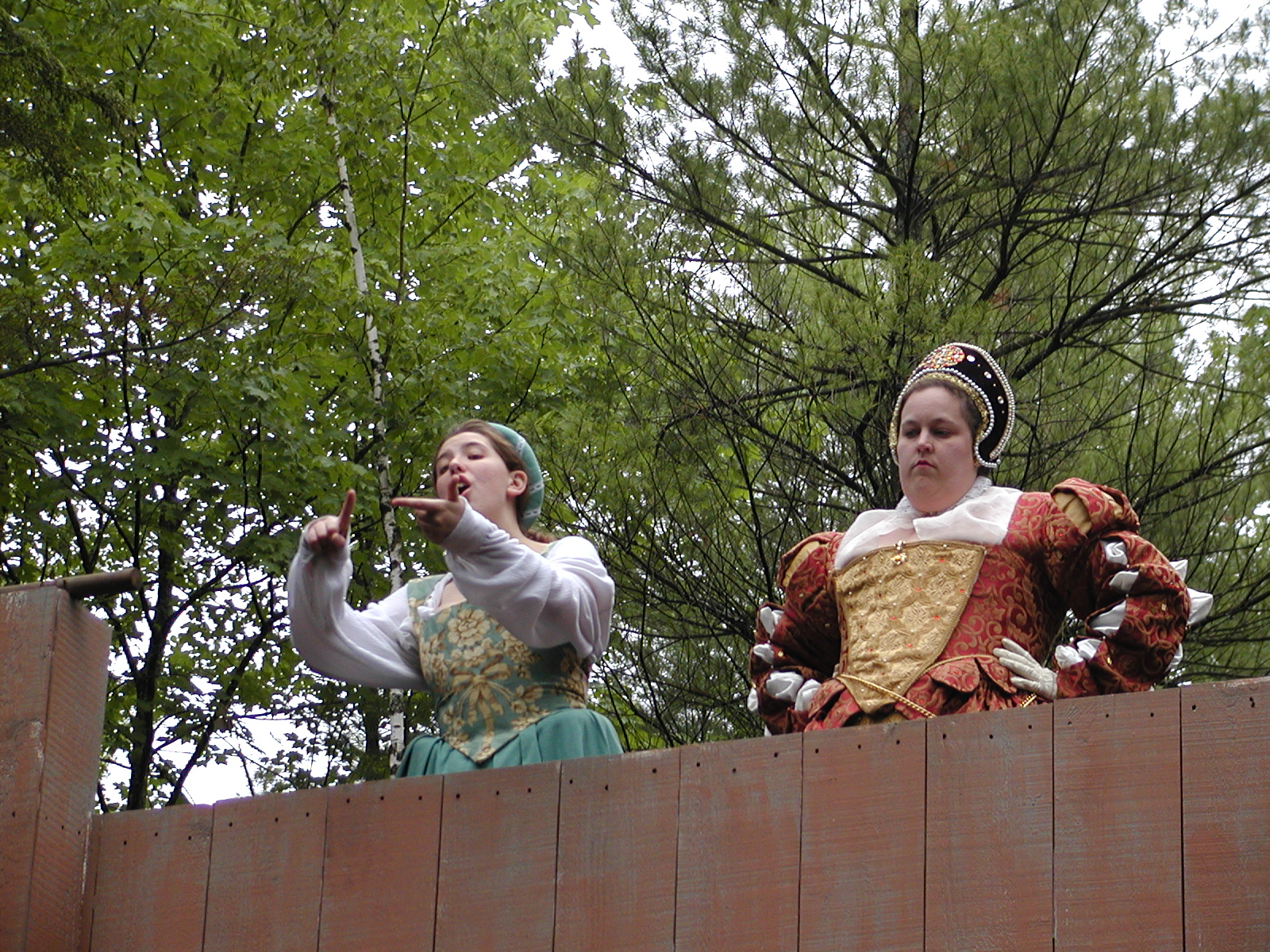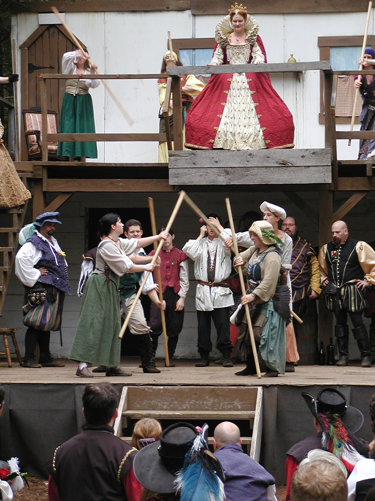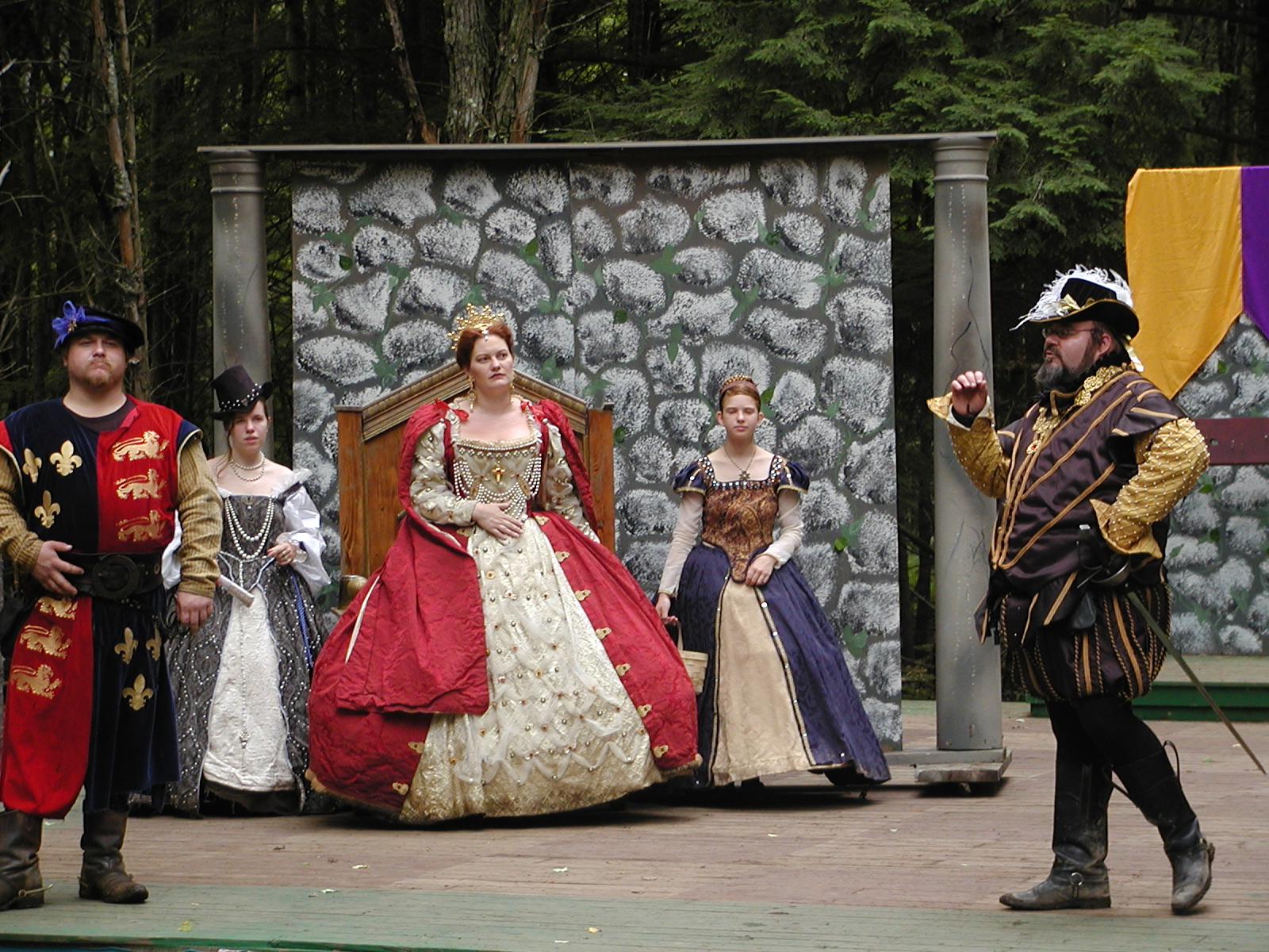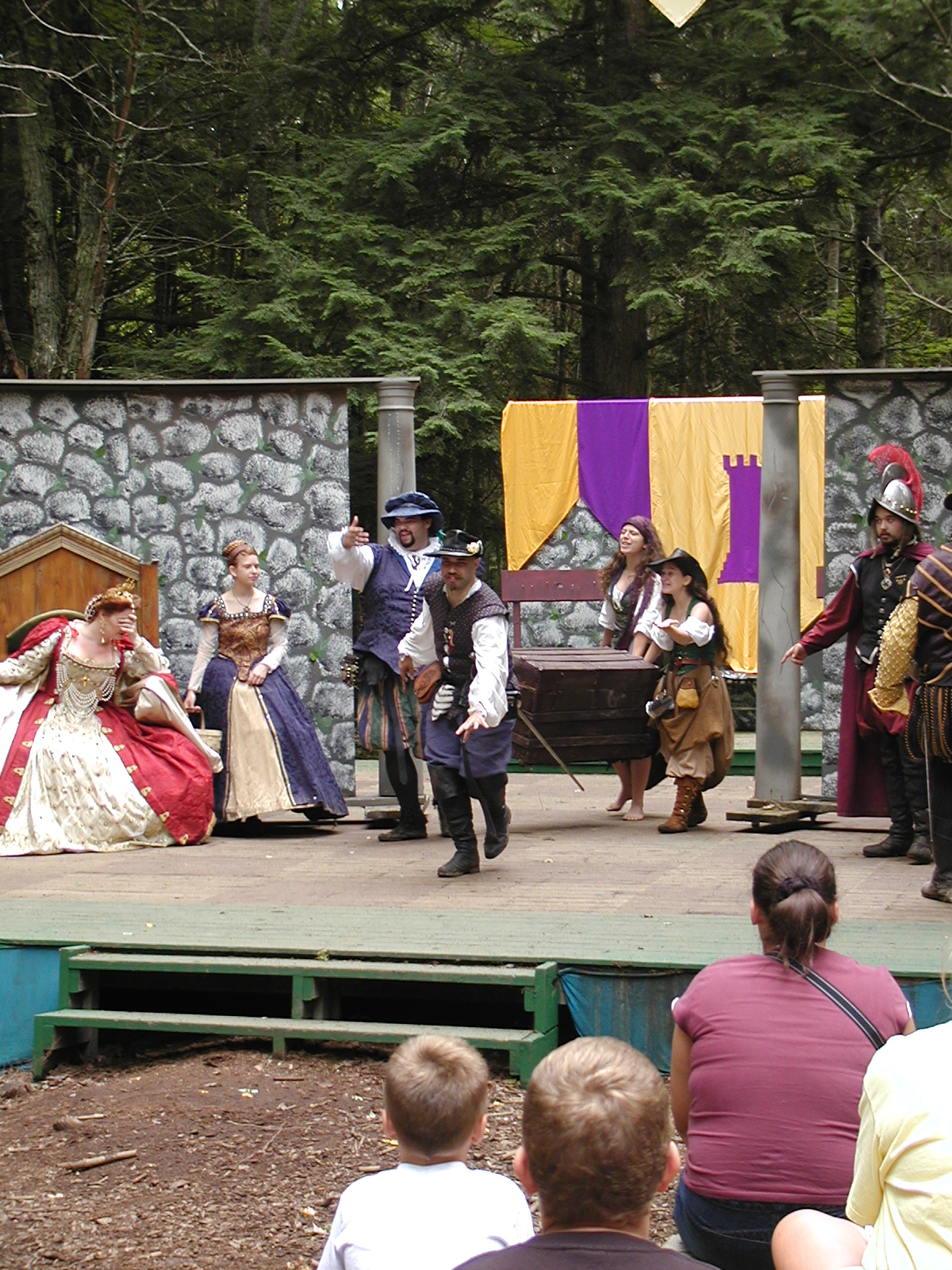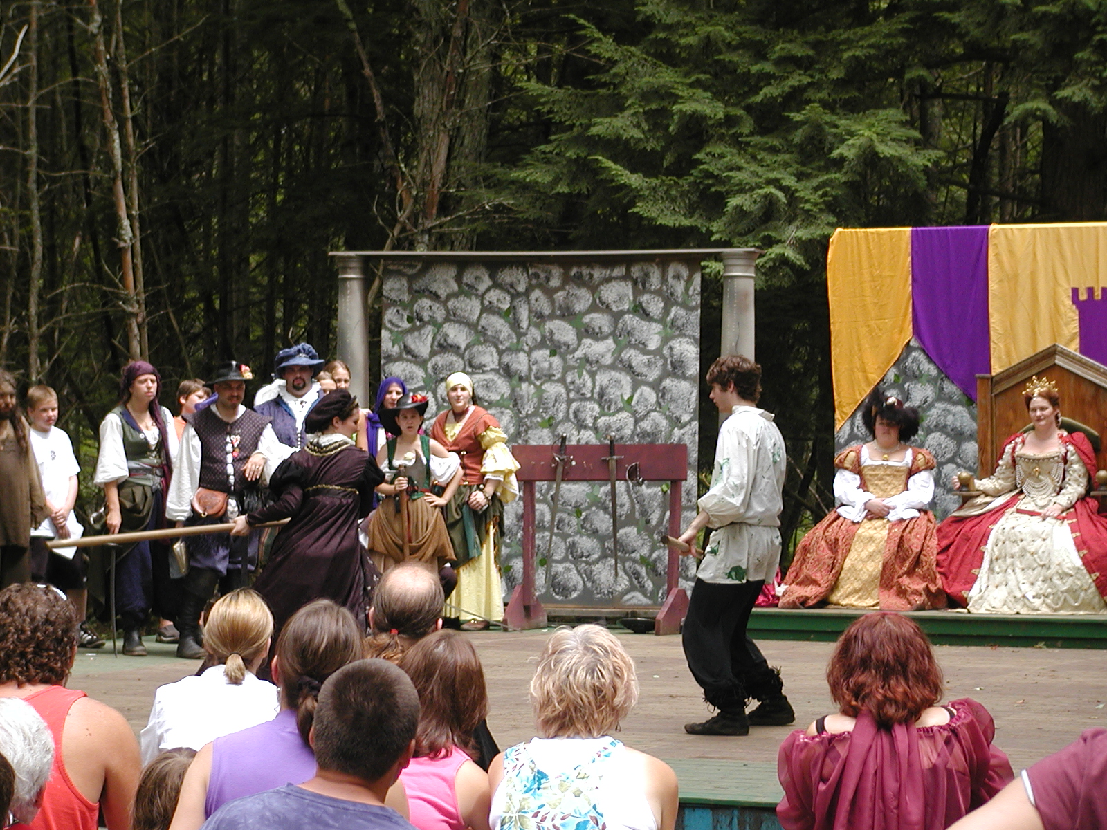 Picture #13: The queen confronts Mendoza and Drake #2 Small: 800x623, 135,070 bytes (132K), (html file) Large: 1600x1200, 1,254,998 bytes (1.2M), (html file) Copyright, Michael Meissner 2003, All rights reserved Olympus C-2100UZ camera f/2.8, ISO 100, 1/125 sec, 17.9mm, auto mode, SHQ, matrix metering 35mm equivalent focal length 99.0mm Taken by Michael Meissner on August 10, 2003 11:17:56 Last modified on August 14, 2003 at 10:50 Shutter speed of 1/125 or 1/250 may indicate use of flash |