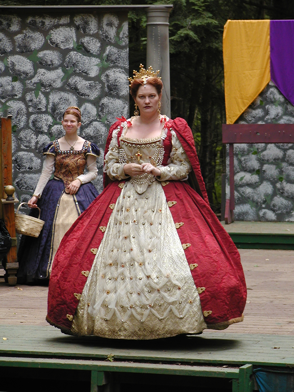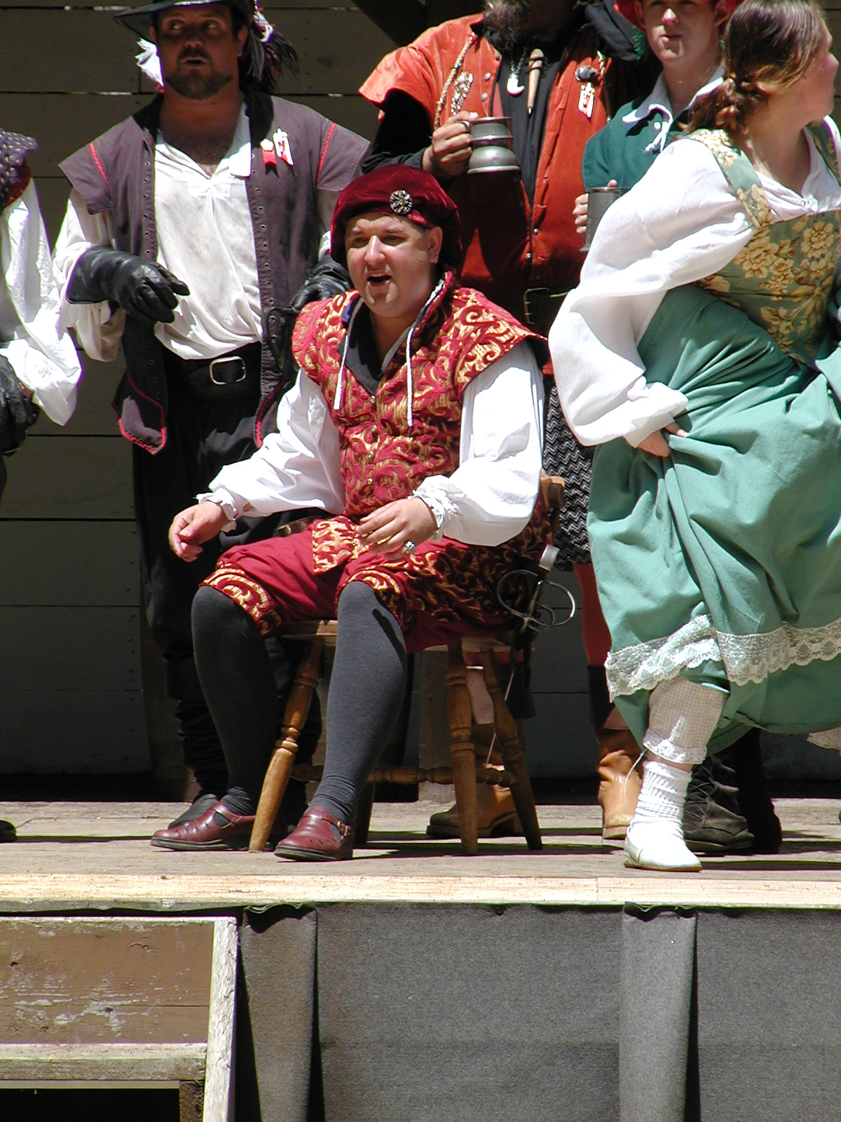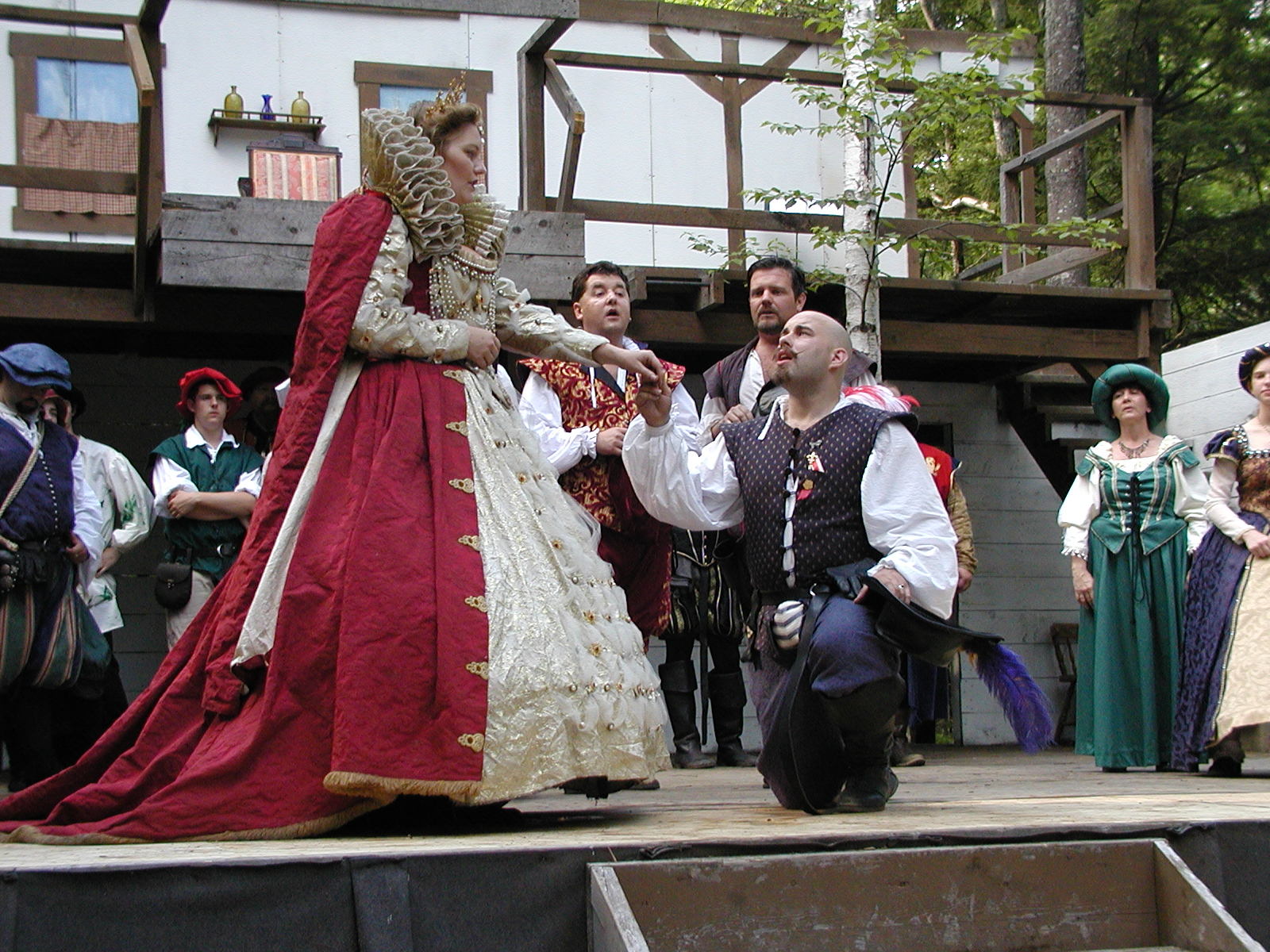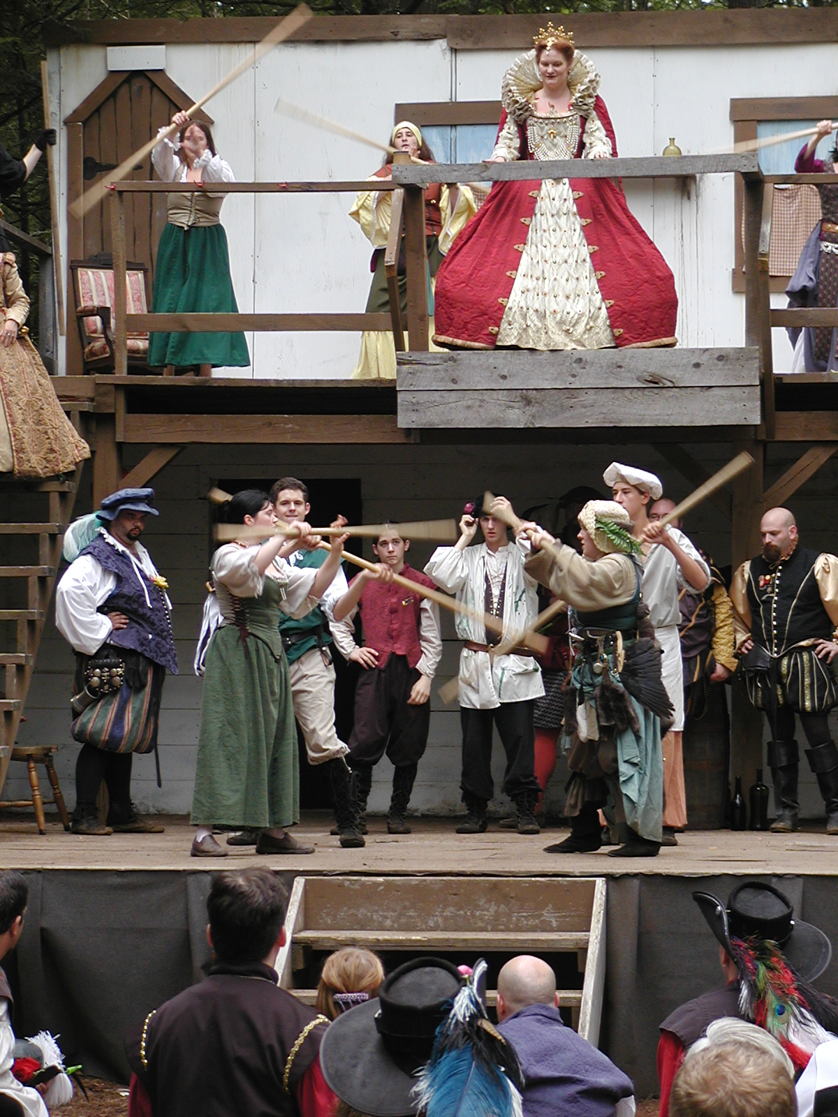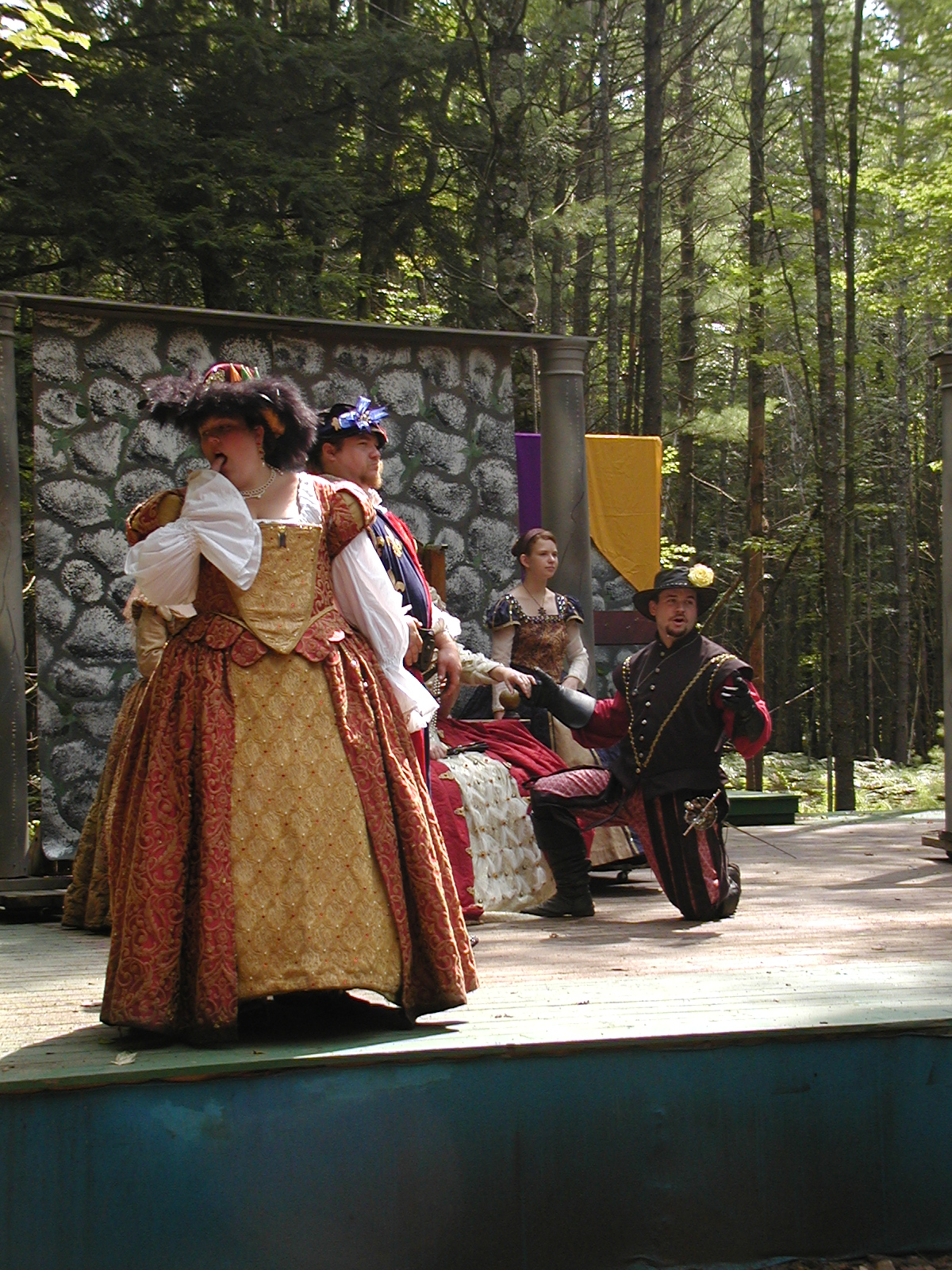Picture #13: The queen confronts Mendoza and Drake #2 Small: 800x623, 135,070 bytes (132K), (html file) Large: 1600x1200, 1,254,998 bytes (1.2M), (html file) Copyright, Michael Meissner 2003, All rights reserved Olympus C-2100UZ camera f/2.8, ISO 100, 1/125 sec, 17.9mm, auto mode, SHQ, matrix metering 35mm equivalent focal length 99.0mm Taken by Michael Meissner on August 10, 2003 11:17:56 Last modified on August 14, 2003 at 10:50 Shutter speed of 1/125 or 1/250 may indicate use of flash |