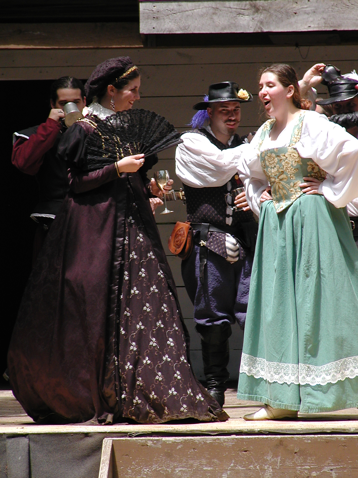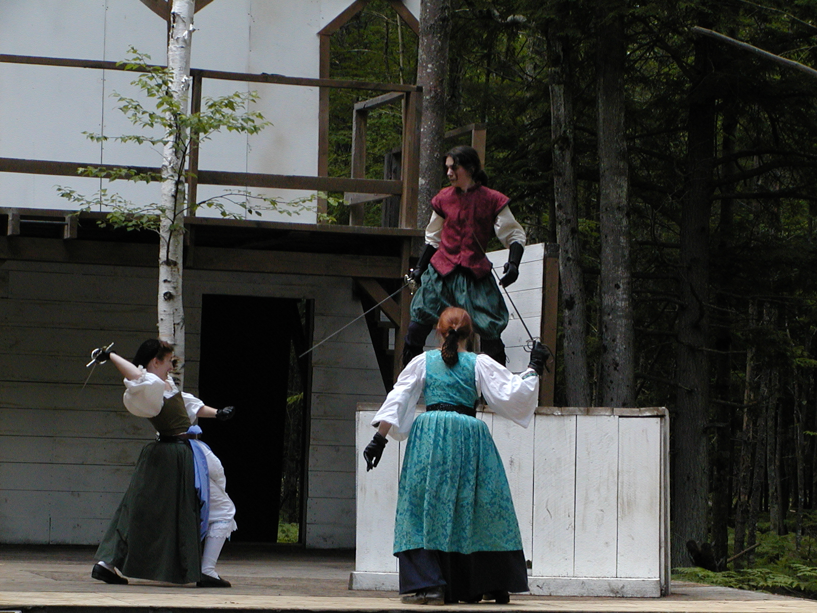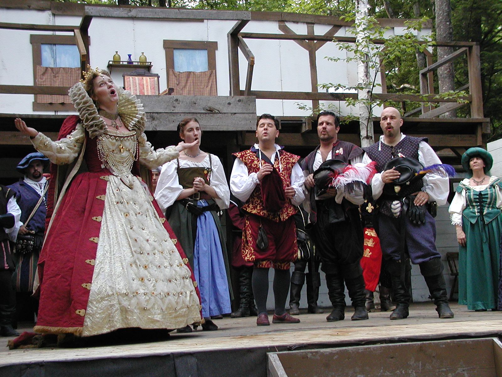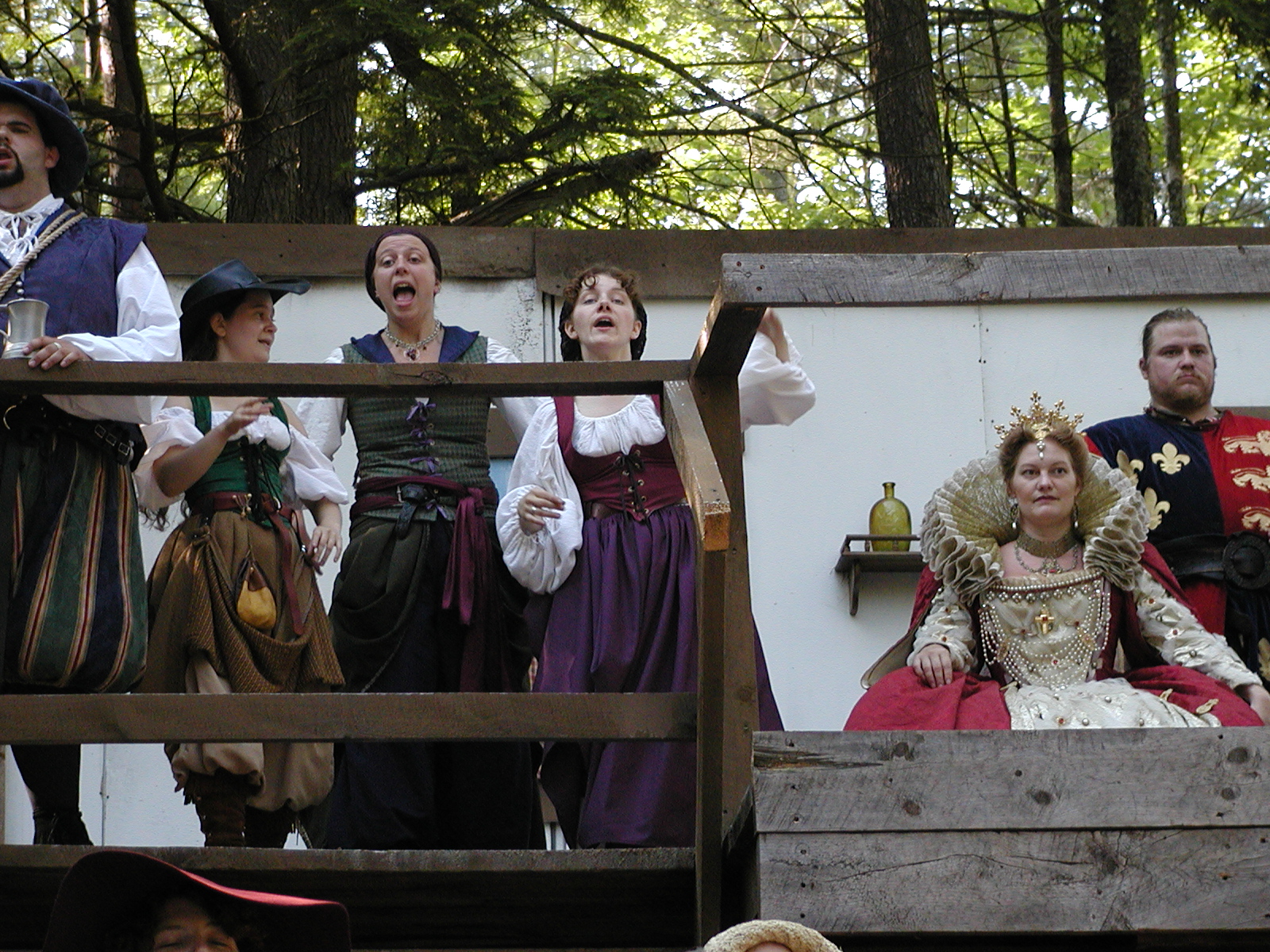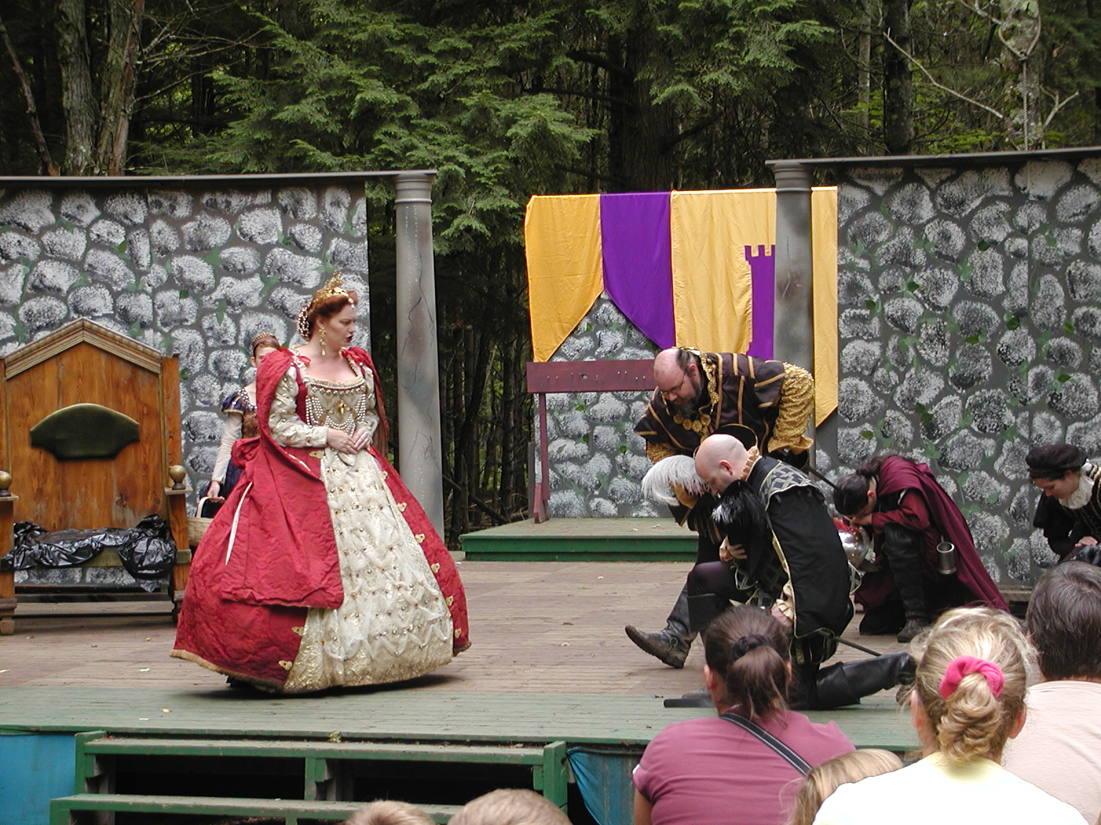 Picture #13: The queen confronts Mendoza and Drake #2 Small: 800x623, 135,070 bytes (132K), (html file) Large: 1600x1200, 1,254,998 bytes (1.2M), (html file) Copyright, Michael Meissner 2003, All rights reserved Olympus C-2100UZ camera f/2.8, ISO 100, 1/125 sec, 17.9mm, auto mode, SHQ, matrix metering 35mm equivalent focal length 99.0mm Taken by Michael Meissner on August 10, 2003 11:17:56 Last modified on August 14, 2003 at 10:50 Shutter speed of 1/125 or 1/250 may indicate use of flash |