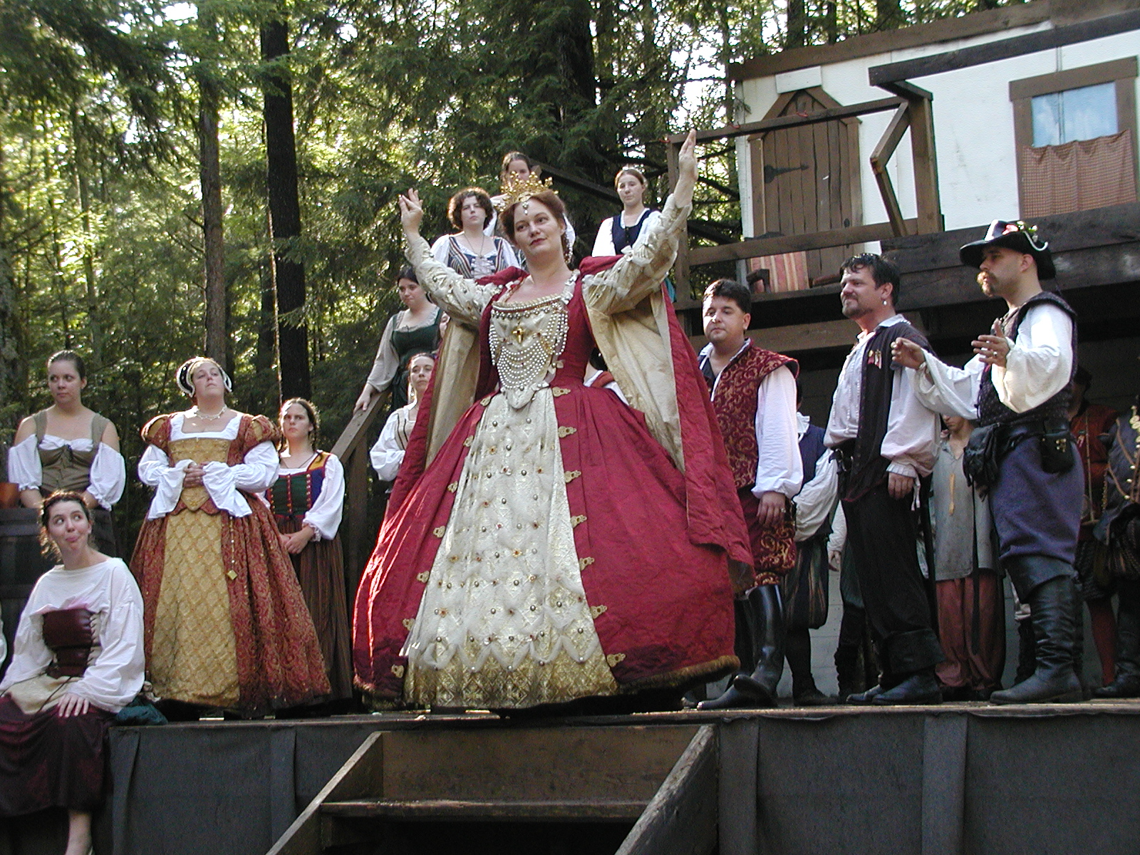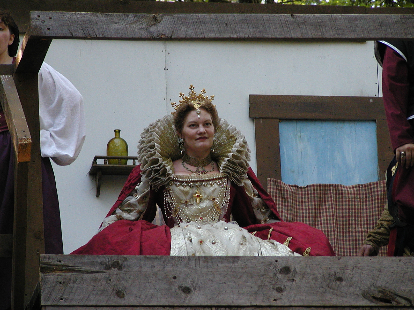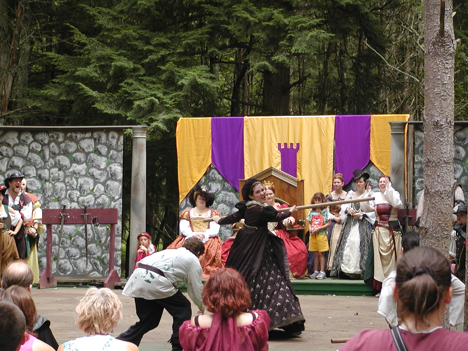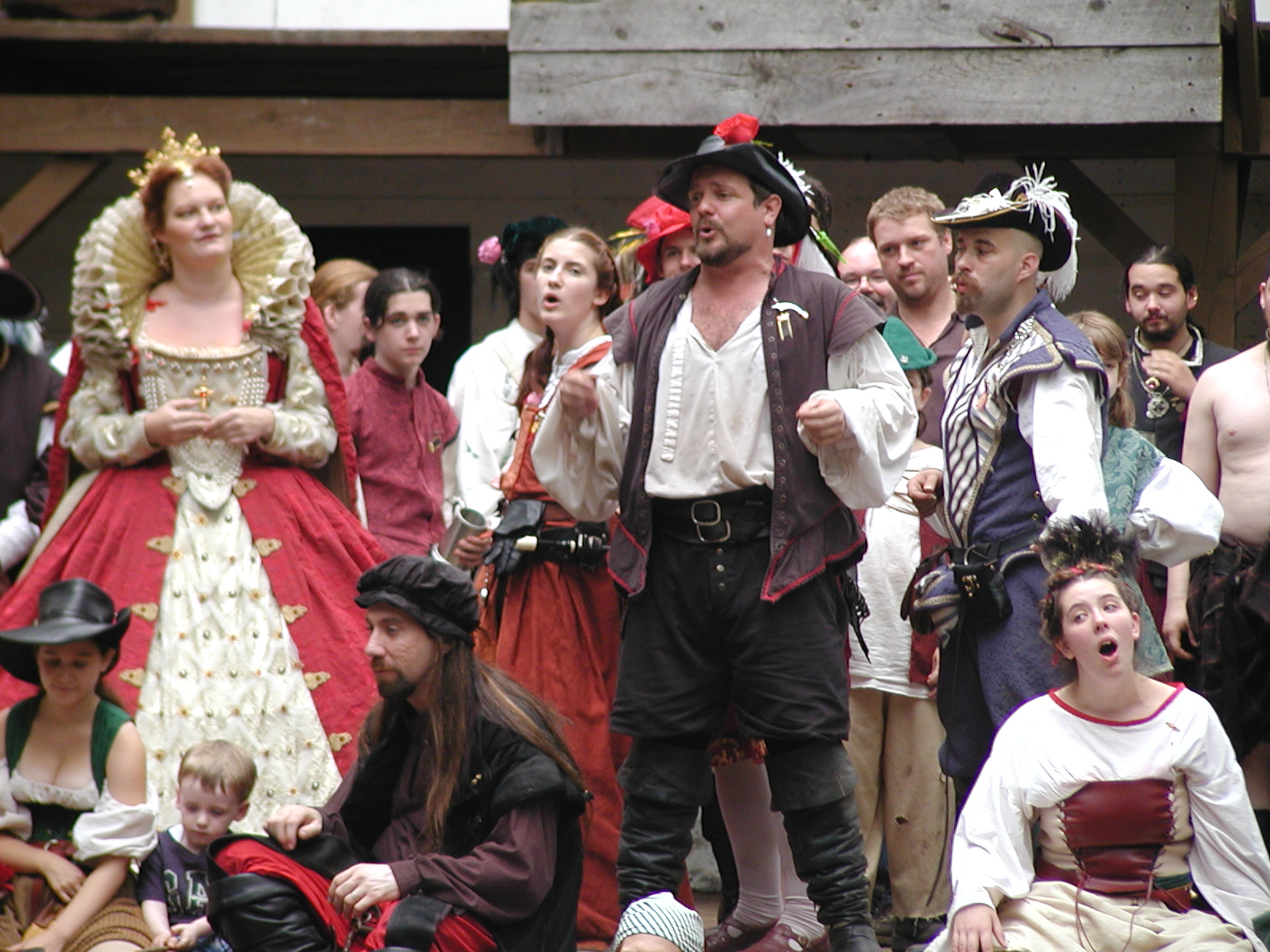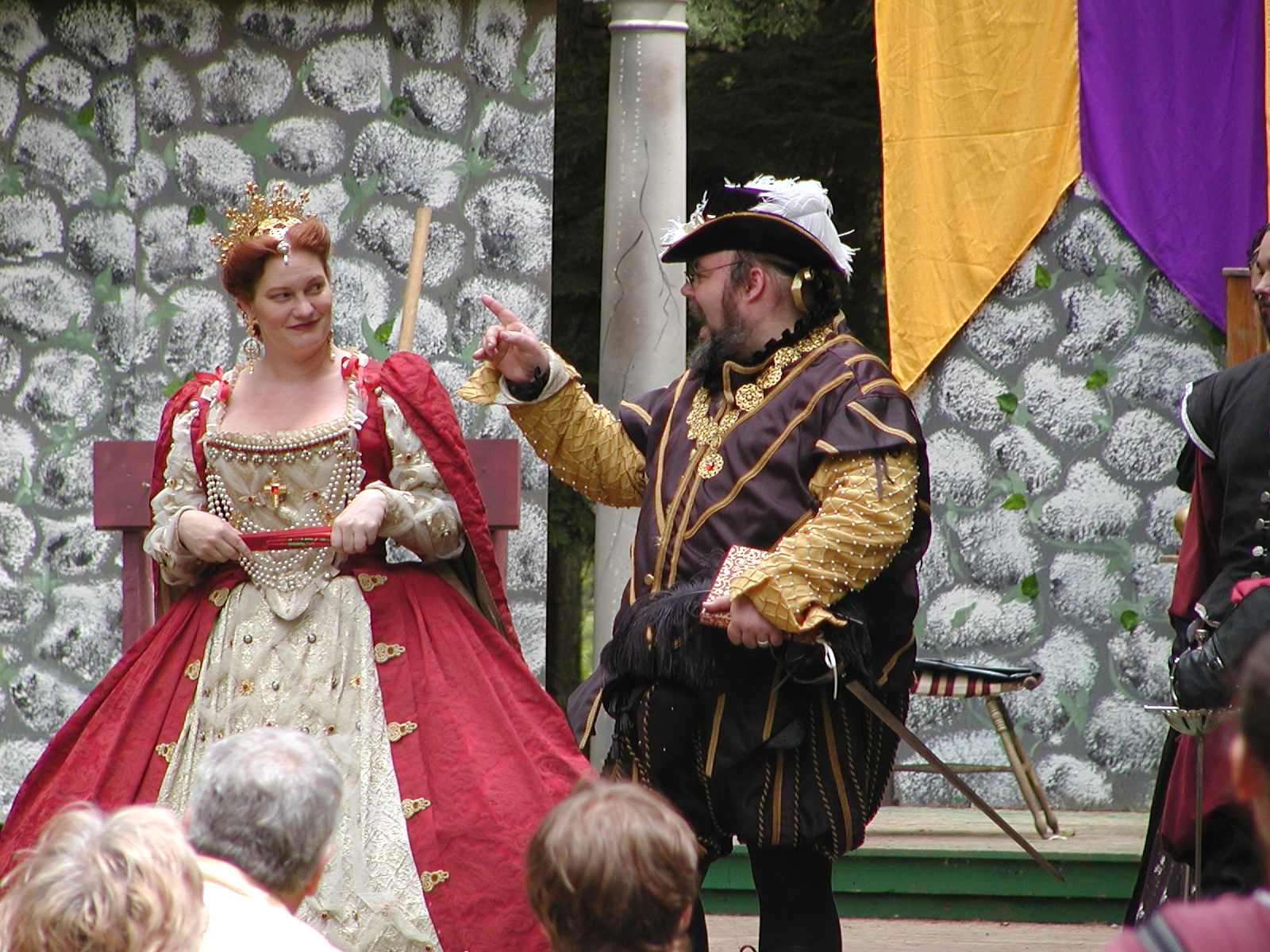 Picture #13: The queen confronts Mendoza and Drake #2 Small: 800x623, 135,070 bytes (132K), (html file) Large: 1600x1200, 1,254,998 bytes (1.2M), (html file) Copyright, Michael Meissner 2003, All rights reserved Olympus C-2100UZ camera f/2.8, ISO 100, 1/125 sec, 17.9mm, auto mode, SHQ, matrix metering 35mm equivalent focal length 99.0mm Taken by Michael Meissner on August 10, 2003 11:17:56 Last modified on August 14, 2003 at 10:50 Shutter speed of 1/125 or 1/250 may indicate use of flash |
