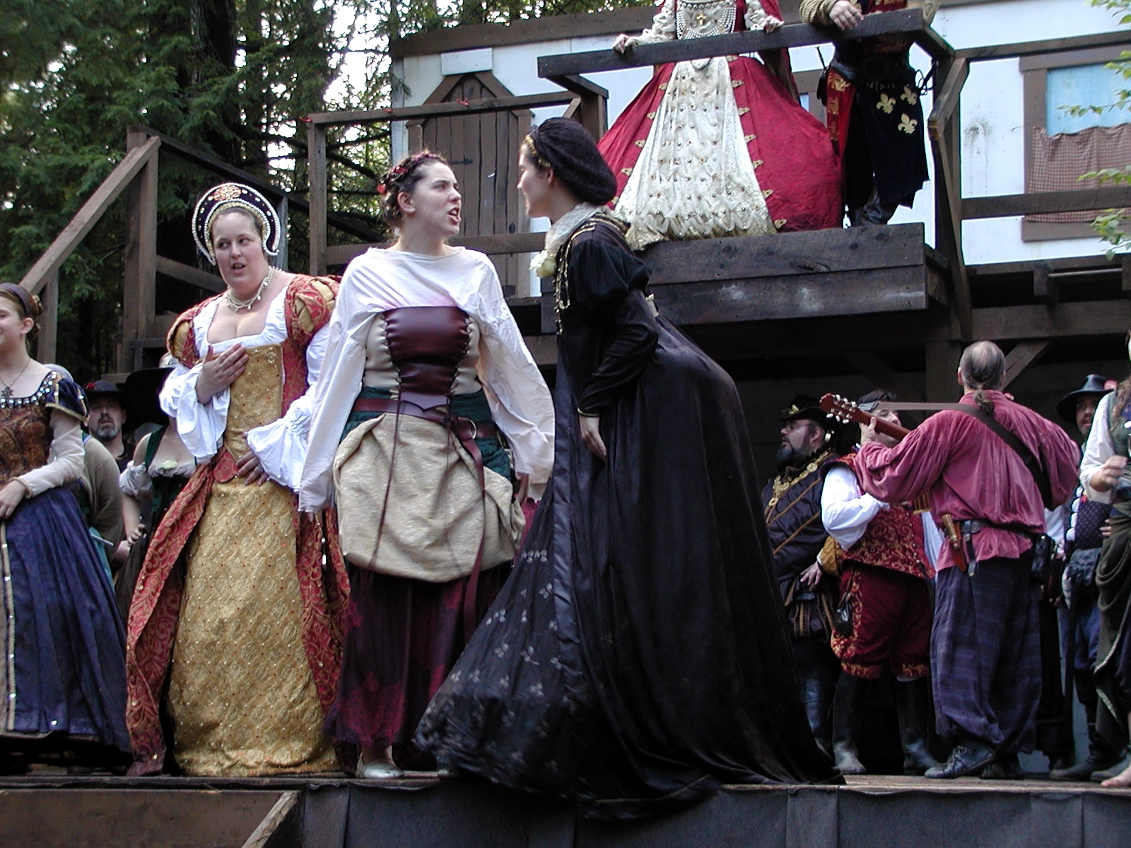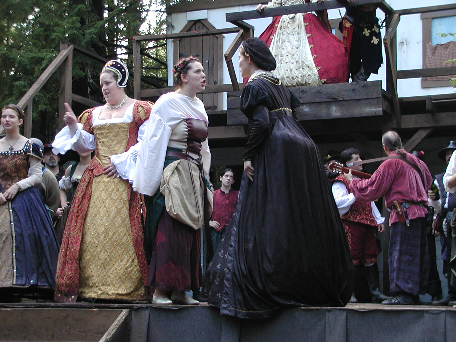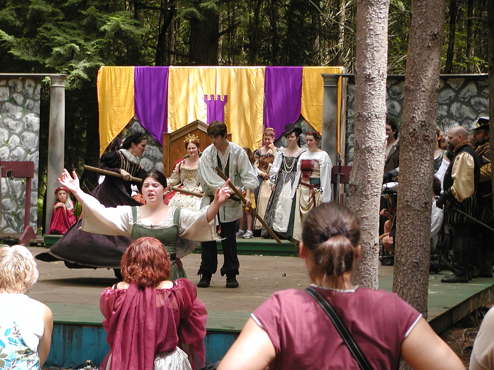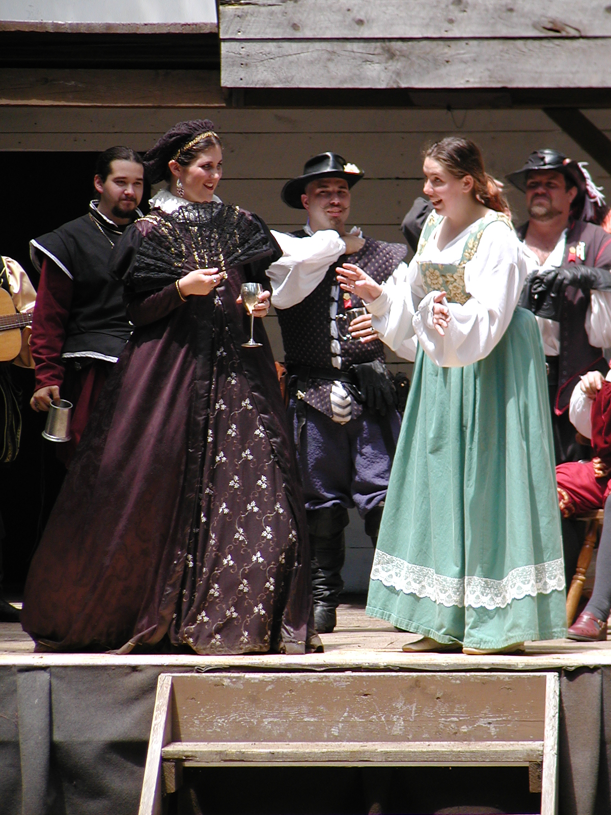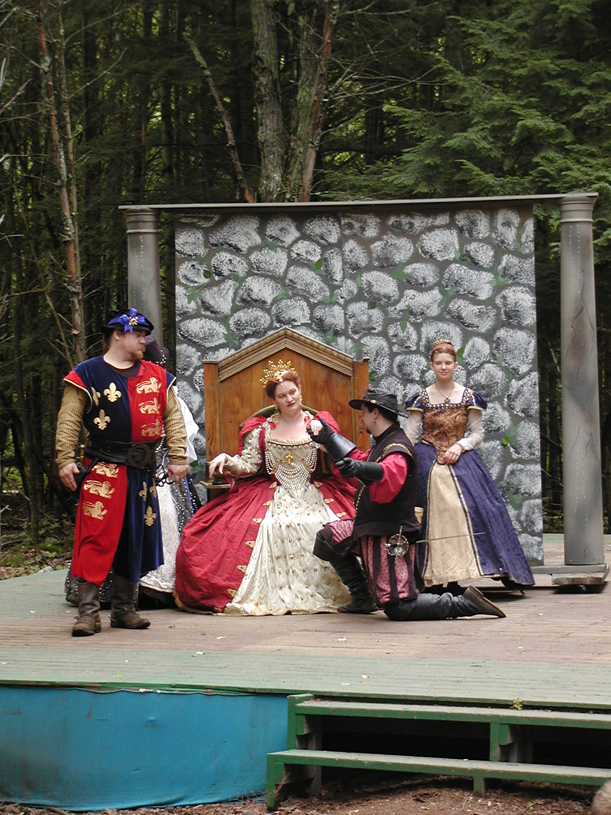 Picture #13: The queen confronts Mendoza and Drake #2 Small: 800x623, 135,070 bytes (132K), (html file) Large: 1600x1200, 1,254,998 bytes (1.2M), (html file) Copyright, Michael Meissner 2003, All rights reserved Olympus C-2100UZ camera f/2.8, ISO 100, 1/125 sec, 17.9mm, auto mode, SHQ, matrix metering 35mm equivalent focal length 99.0mm Taken by Michael Meissner on August 10, 2003 11:17:56 Last modified on August 14, 2003 at 10:50 Shutter speed of 1/125 or 1/250 may indicate use of flash |