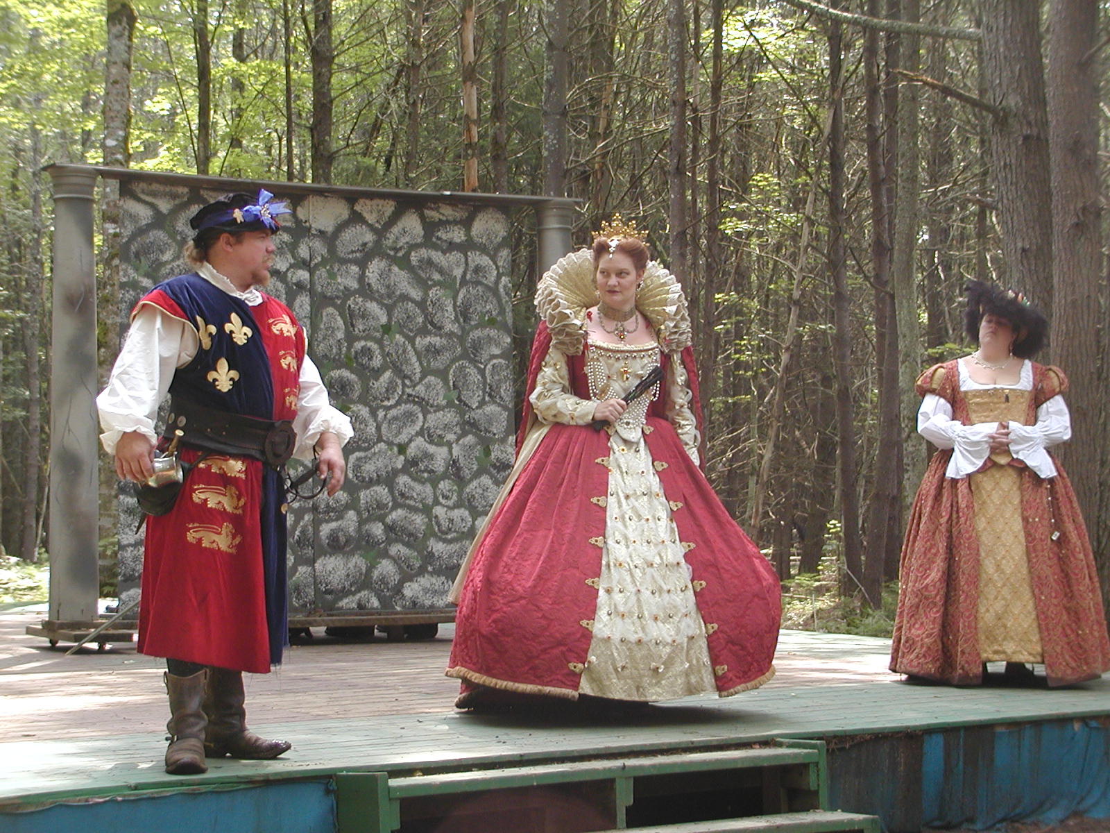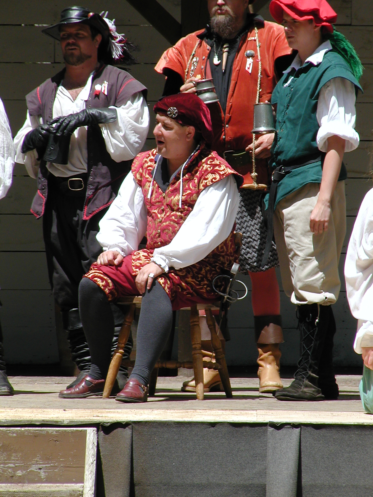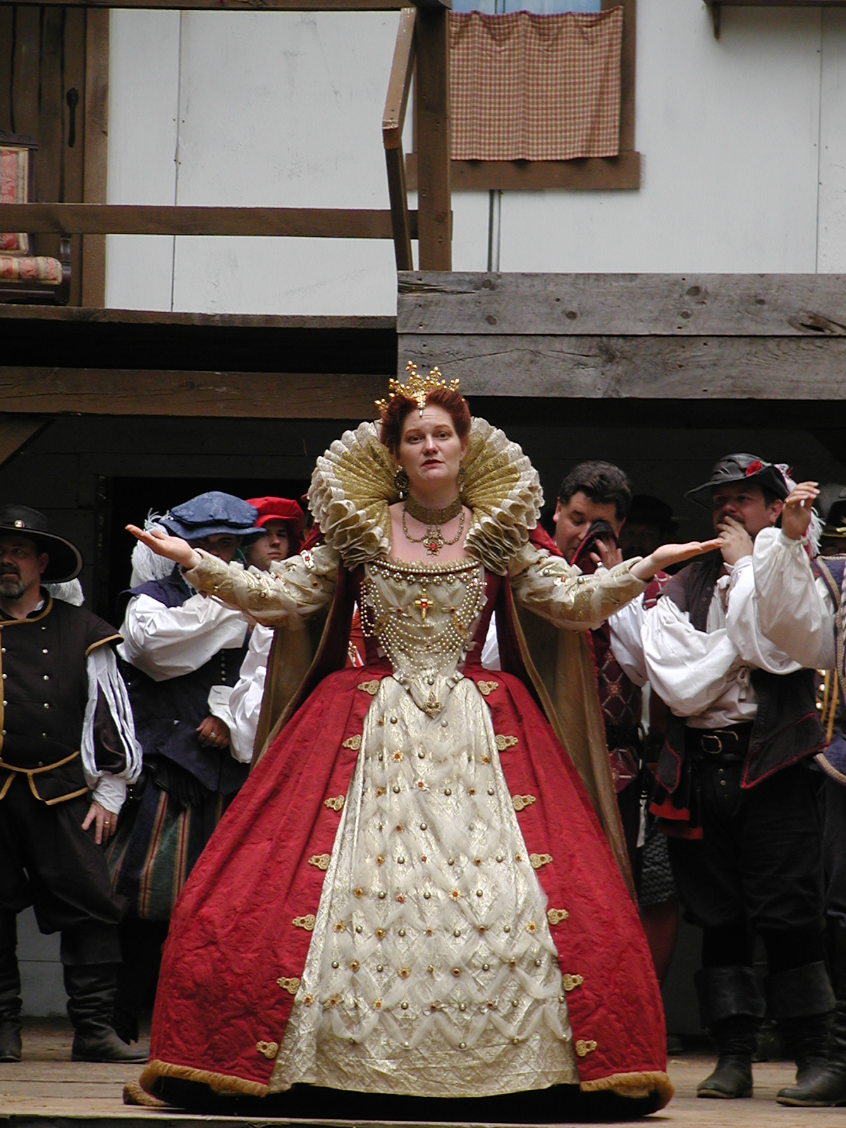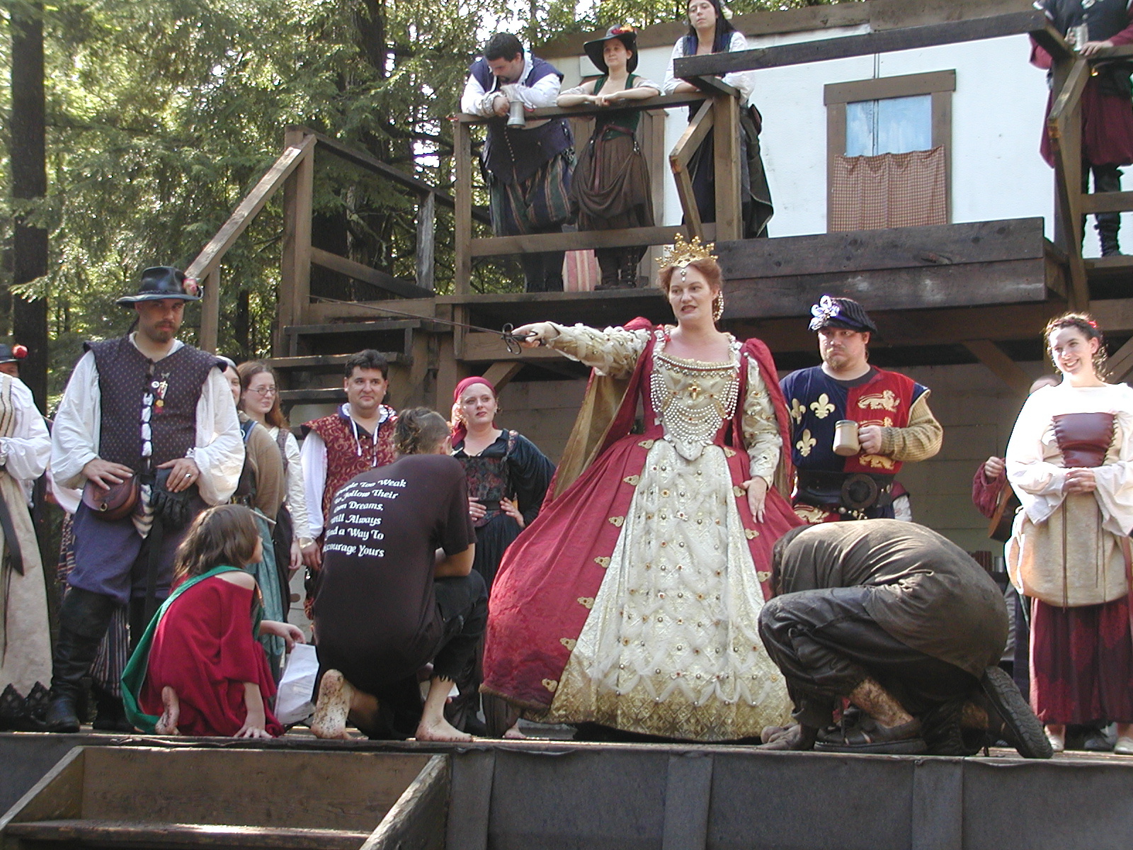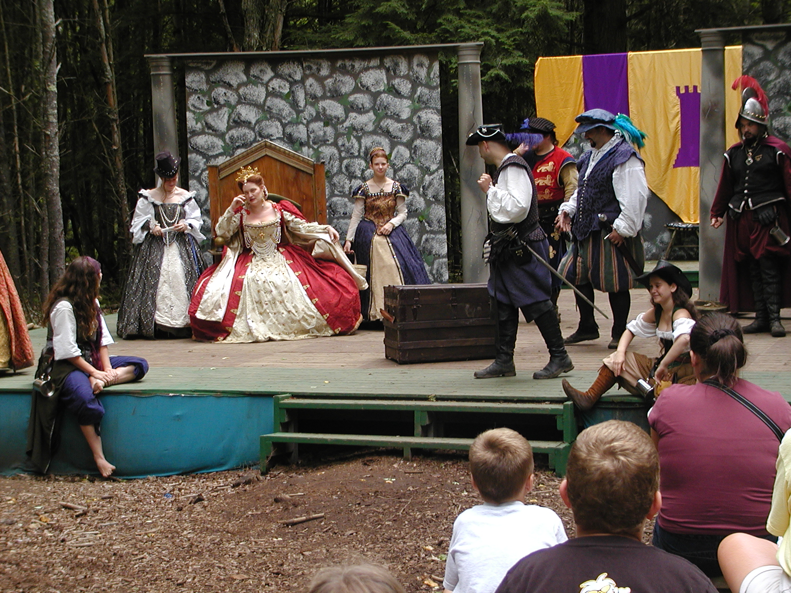 Picture #13: The queen confronts Mendoza and Drake #2 Small: 800x623, 135,070 bytes (132K), (html file) Large: 1600x1200, 1,254,998 bytes (1.2M), (html file) Copyright, Michael Meissner 2003, All rights reserved Olympus C-2100UZ camera f/2.8, ISO 100, 1/125 sec, 17.9mm, auto mode, SHQ, matrix metering 35mm equivalent focal length 99.0mm Taken by Michael Meissner on August 10, 2003 11:17:56 Last modified on August 14, 2003 at 10:50 Shutter speed of 1/125 or 1/250 may indicate use of flash |