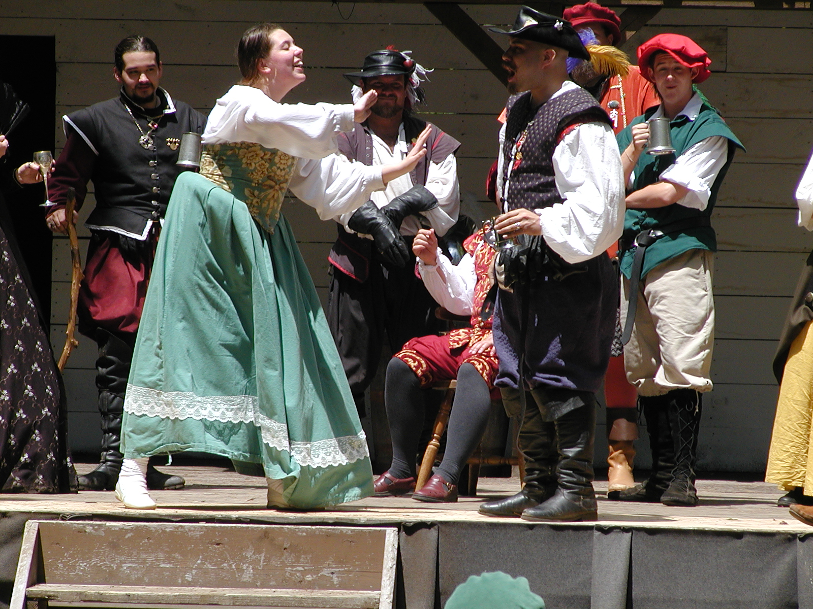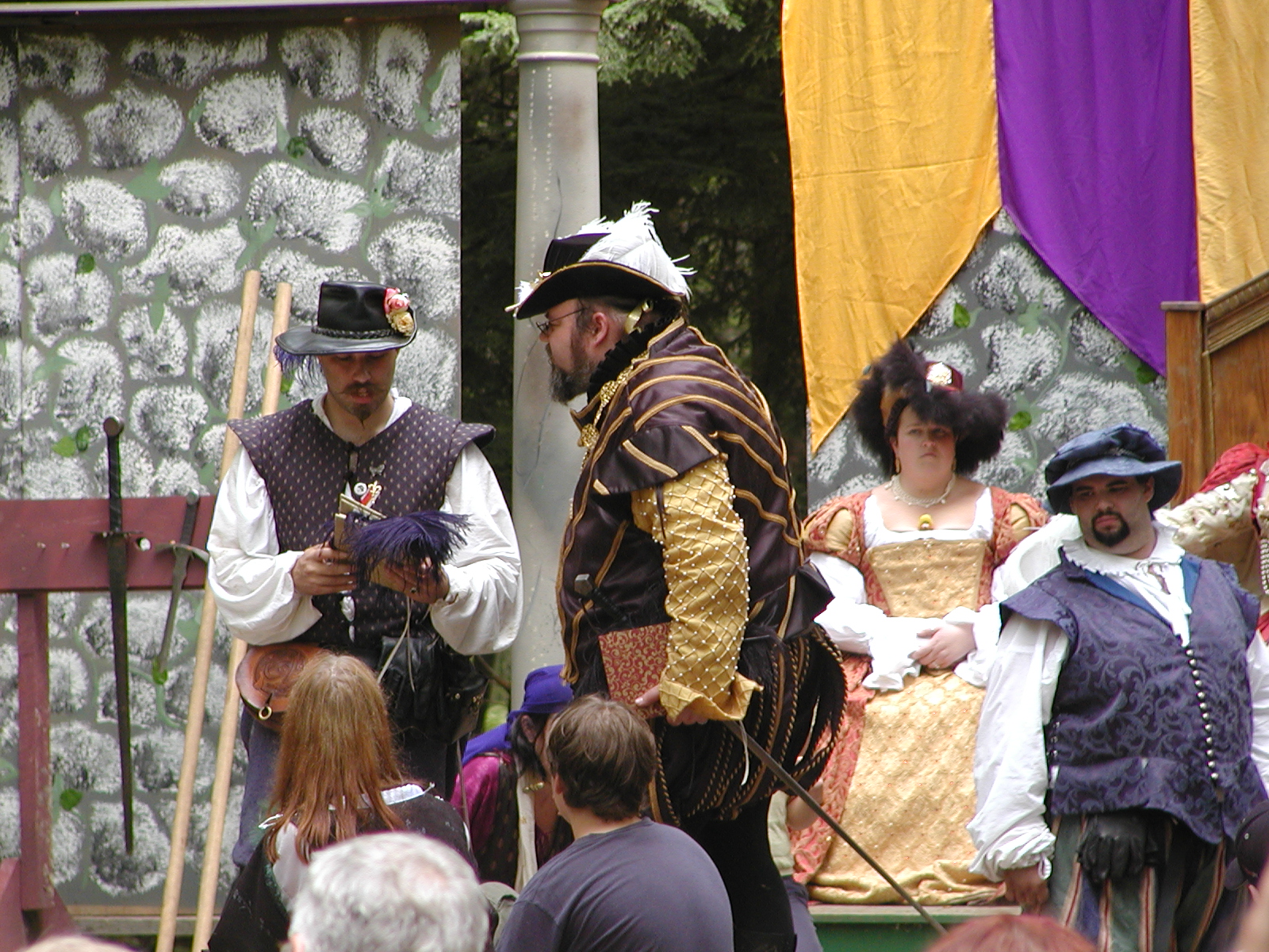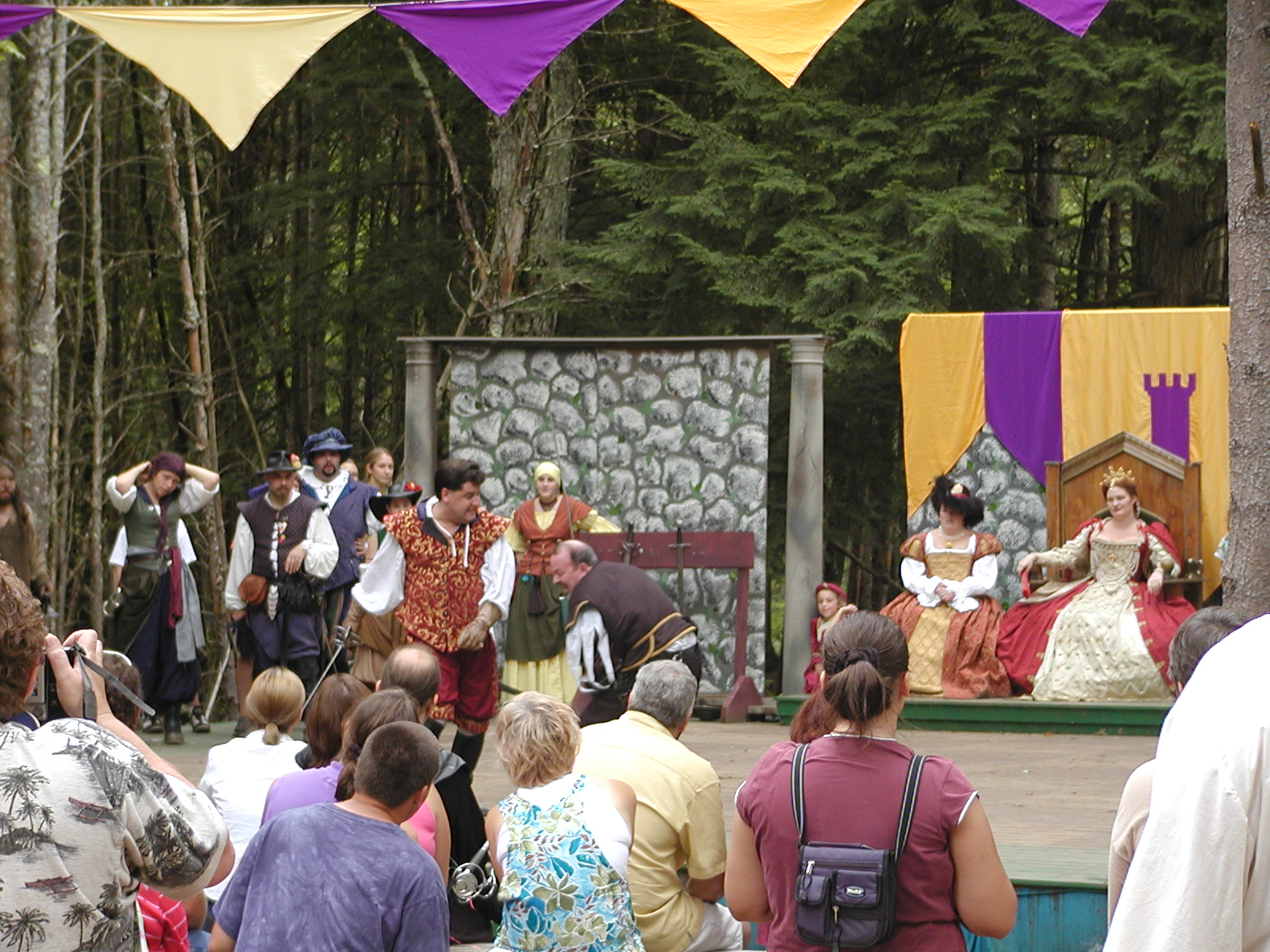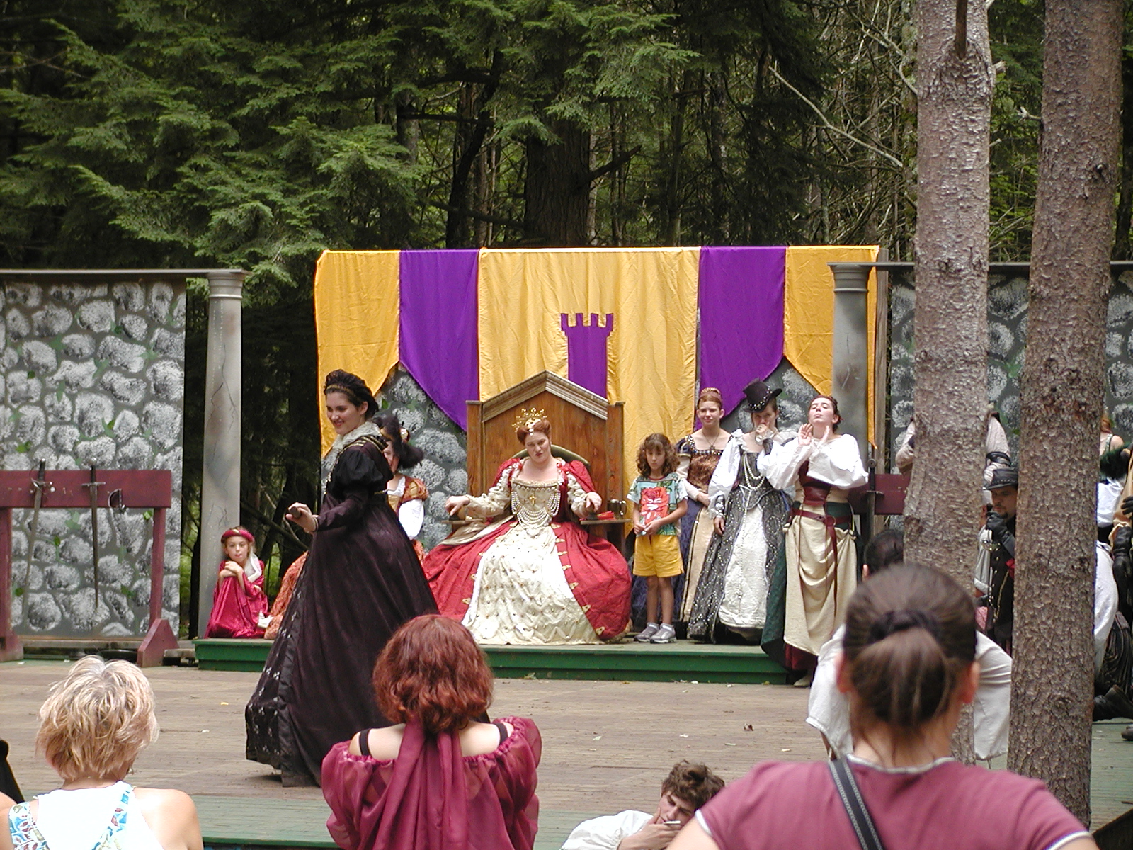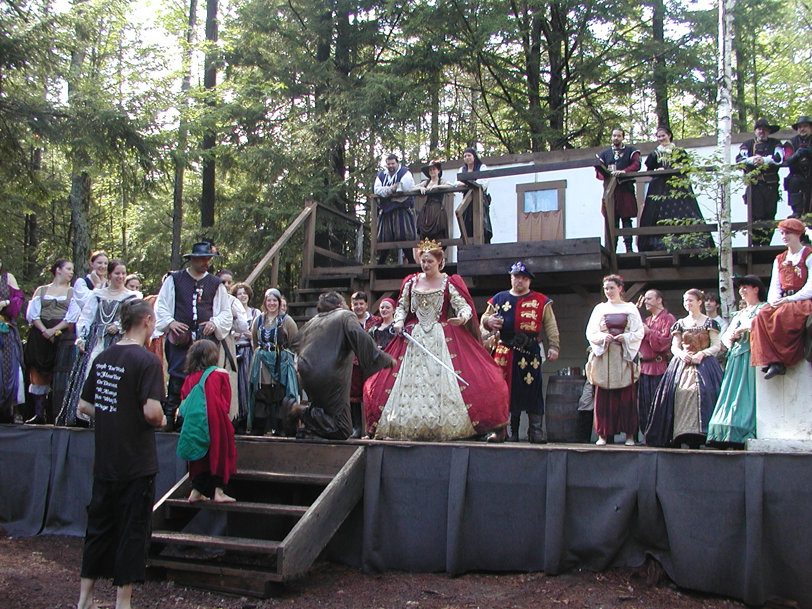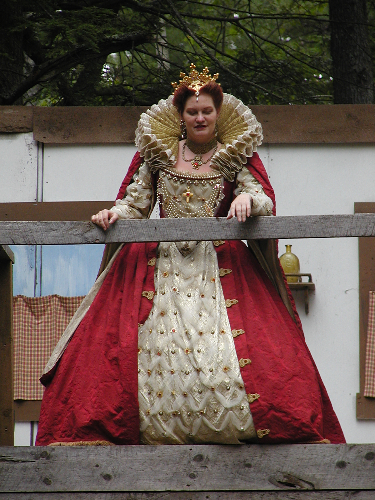 Picture #13: The queen confronts Mendoza and Drake #2 Small: 800x623, 135,070 bytes (132K), (html file) Large: 1600x1200, 1,254,998 bytes (1.2M), (html file) Copyright, Michael Meissner 2003, All rights reserved Olympus C-2100UZ camera f/2.8, ISO 100, 1/125 sec, 17.9mm, auto mode, SHQ, matrix metering 35mm equivalent focal length 99.0mm Taken by Michael Meissner on August 10, 2003 11:17:56 Last modified on August 14, 2003 at 10:50 Shutter speed of 1/125 or 1/250 may indicate use of flash |