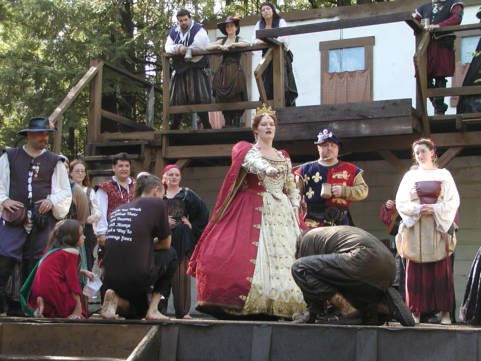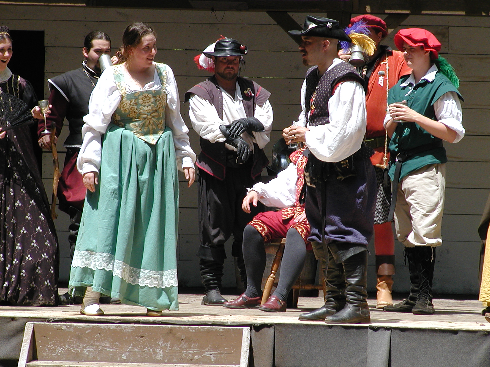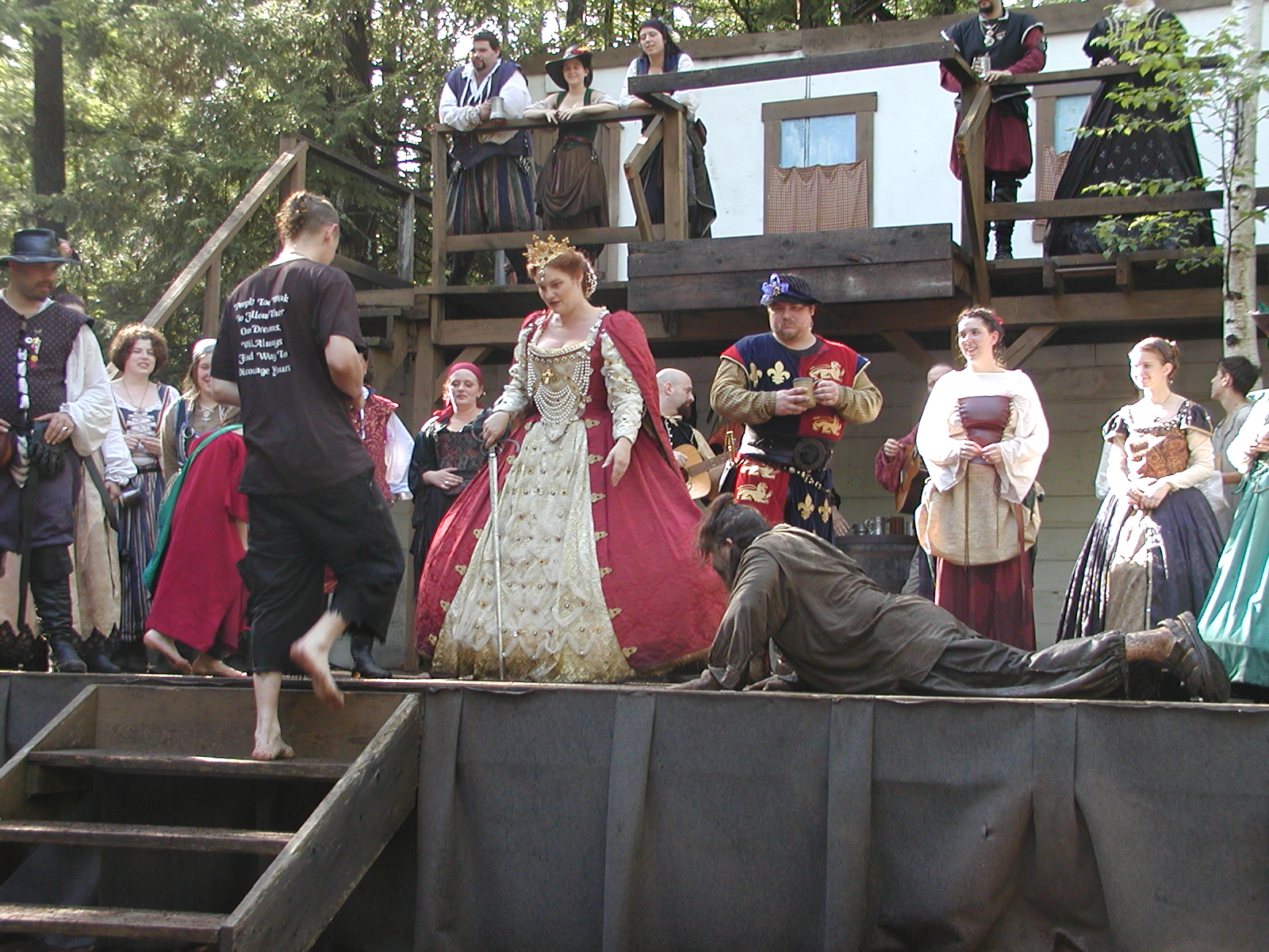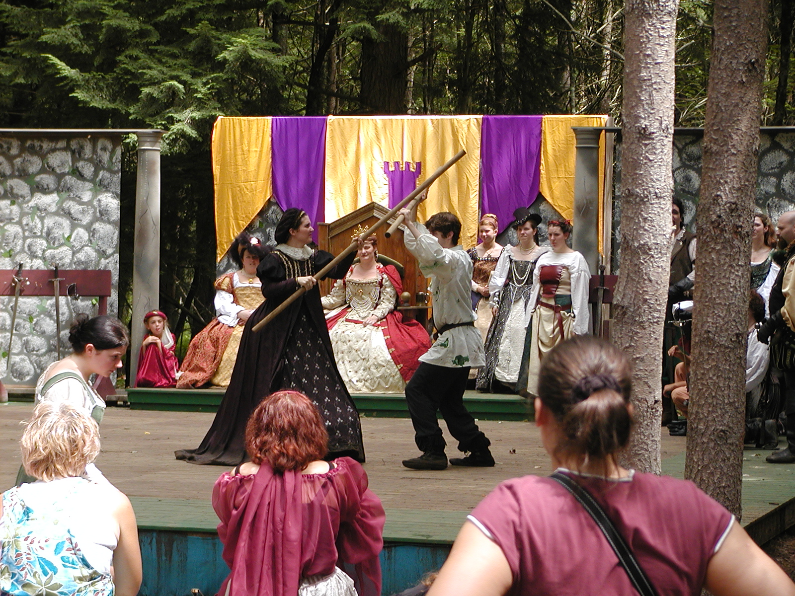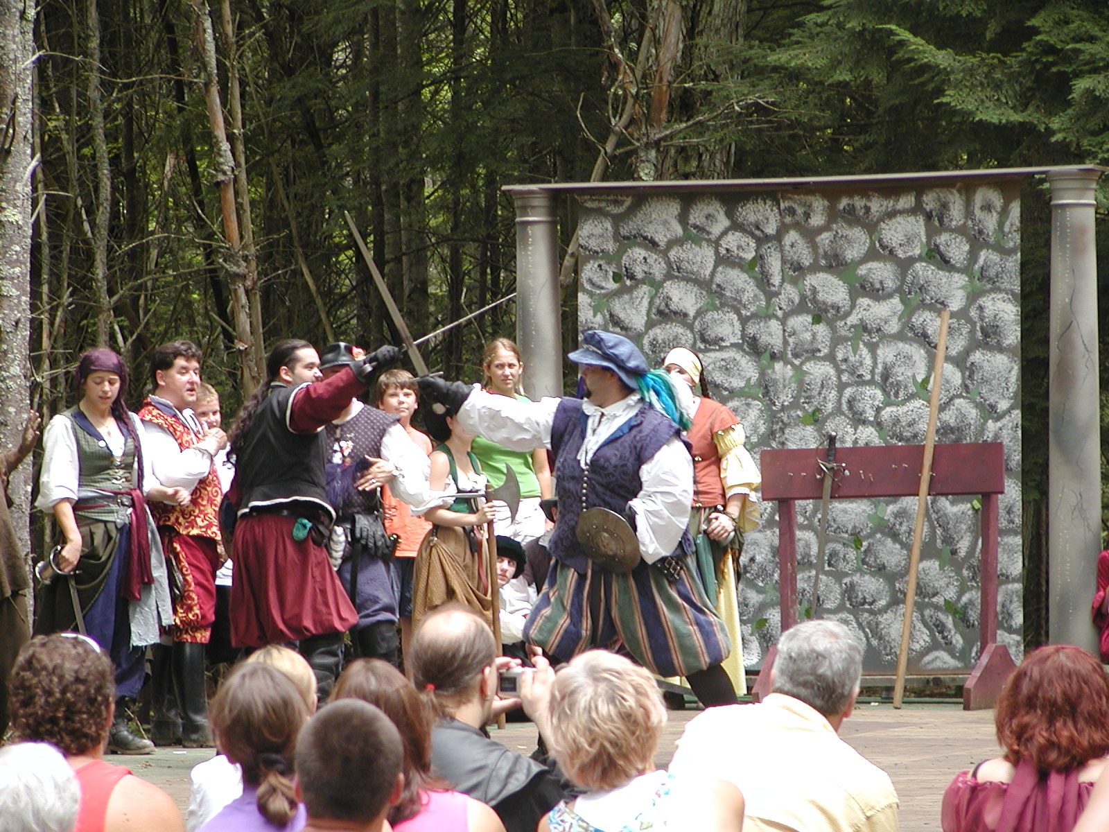 Picture #13: The queen confronts Mendoza and Drake #2 Small: 800x623, 135,070 bytes (132K), (html file) Large: 1600x1200, 1,254,998 bytes (1.2M), (html file) Copyright, Michael Meissner 2003, All rights reserved Olympus C-2100UZ camera f/2.8, ISO 100, 1/125 sec, 17.9mm, auto mode, SHQ, matrix metering 35mm equivalent focal length 99.0mm Taken by Michael Meissner on August 10, 2003 11:17:56 Last modified on August 14, 2003 at 10:50 Shutter speed of 1/125 or 1/250 may indicate use of flash |