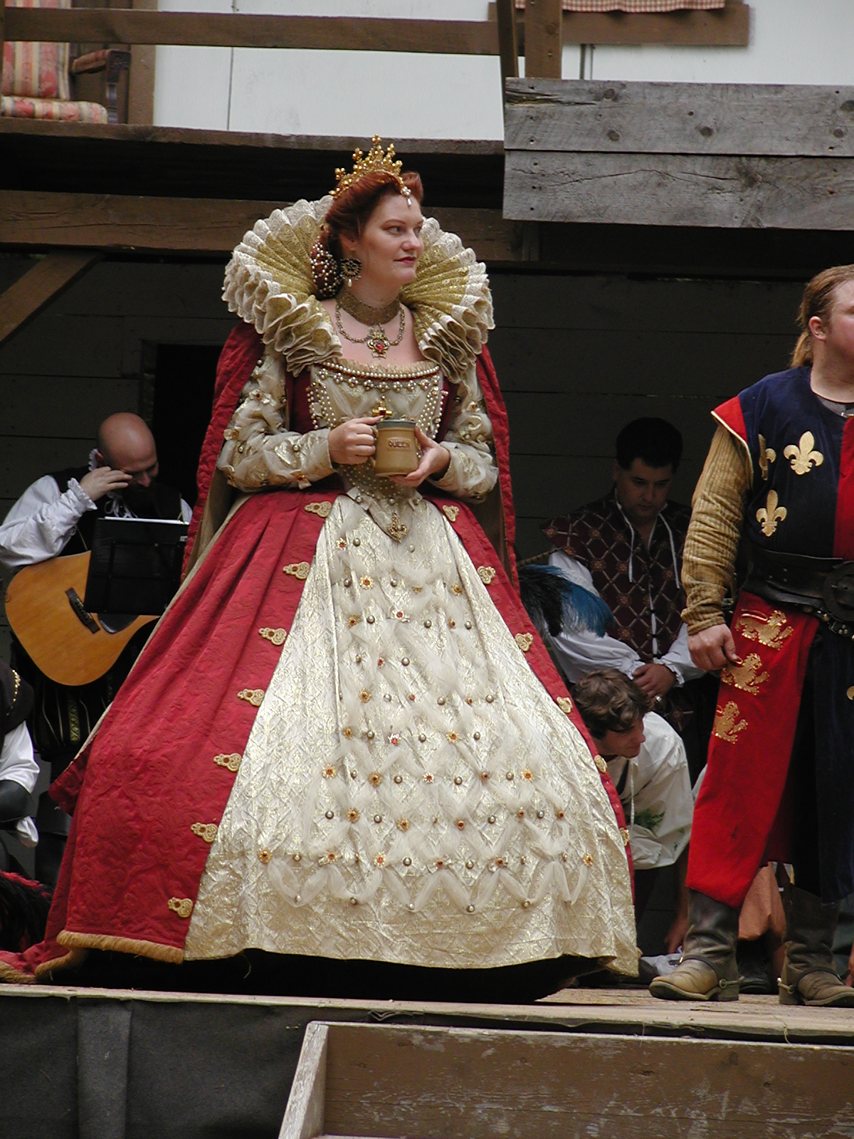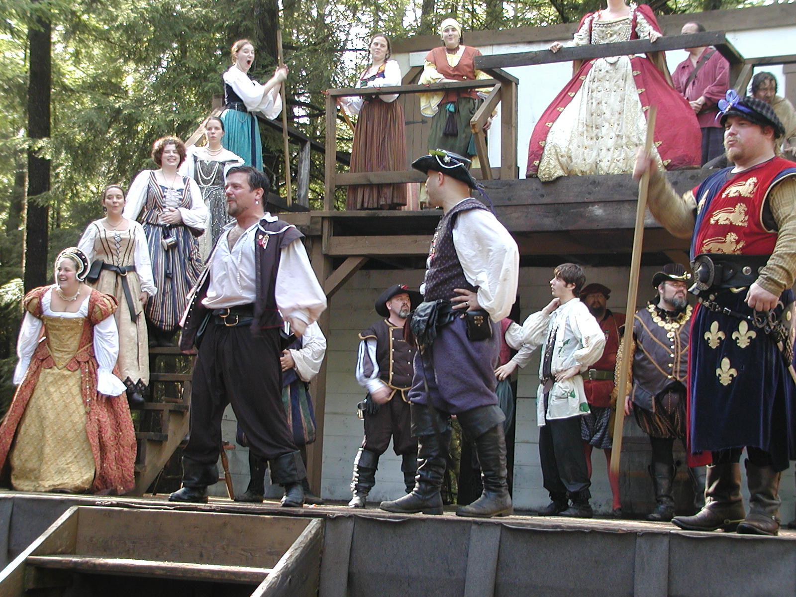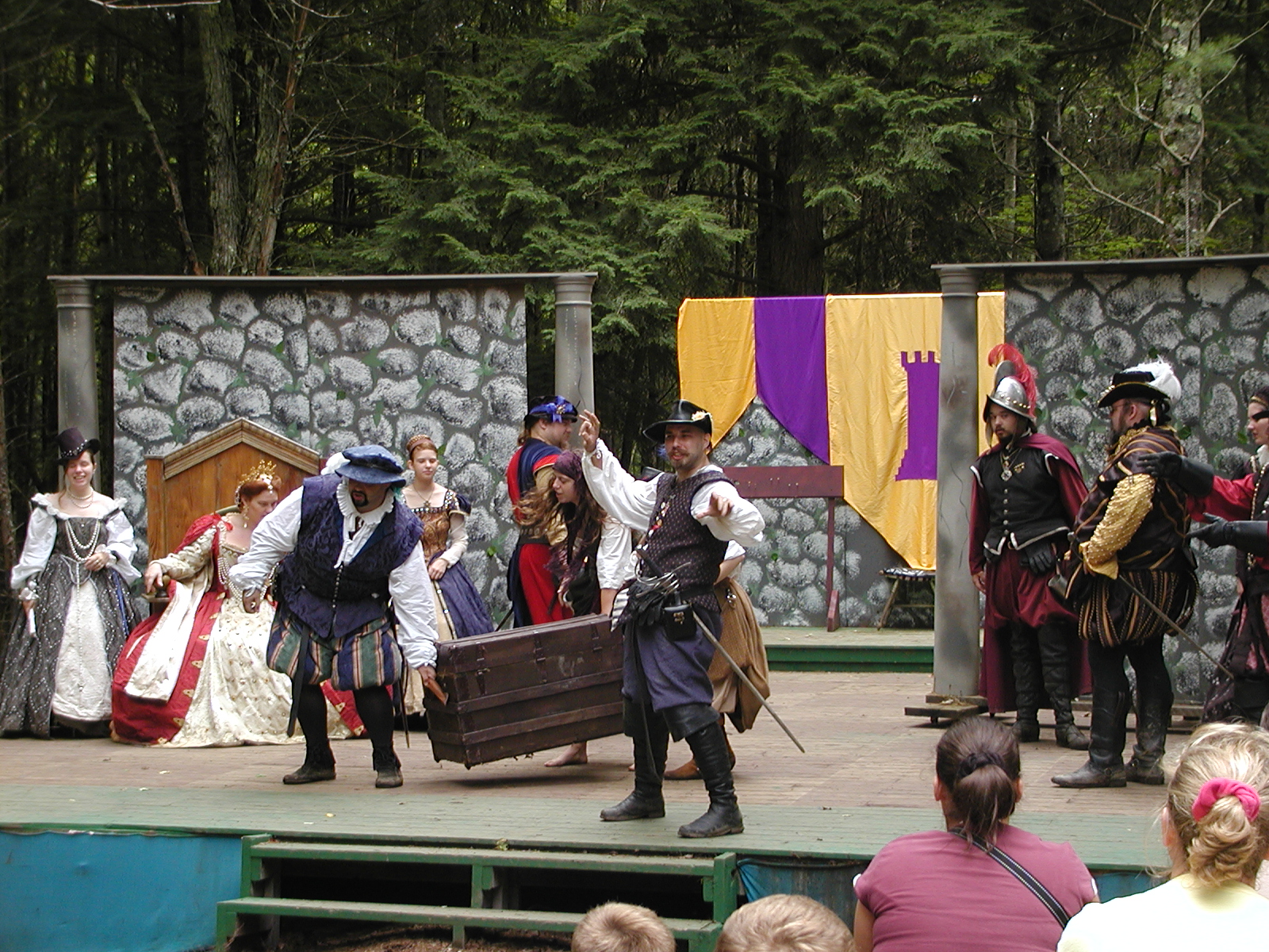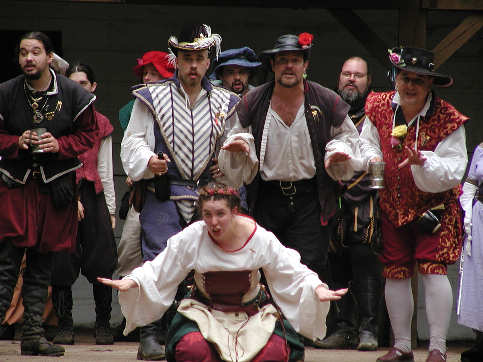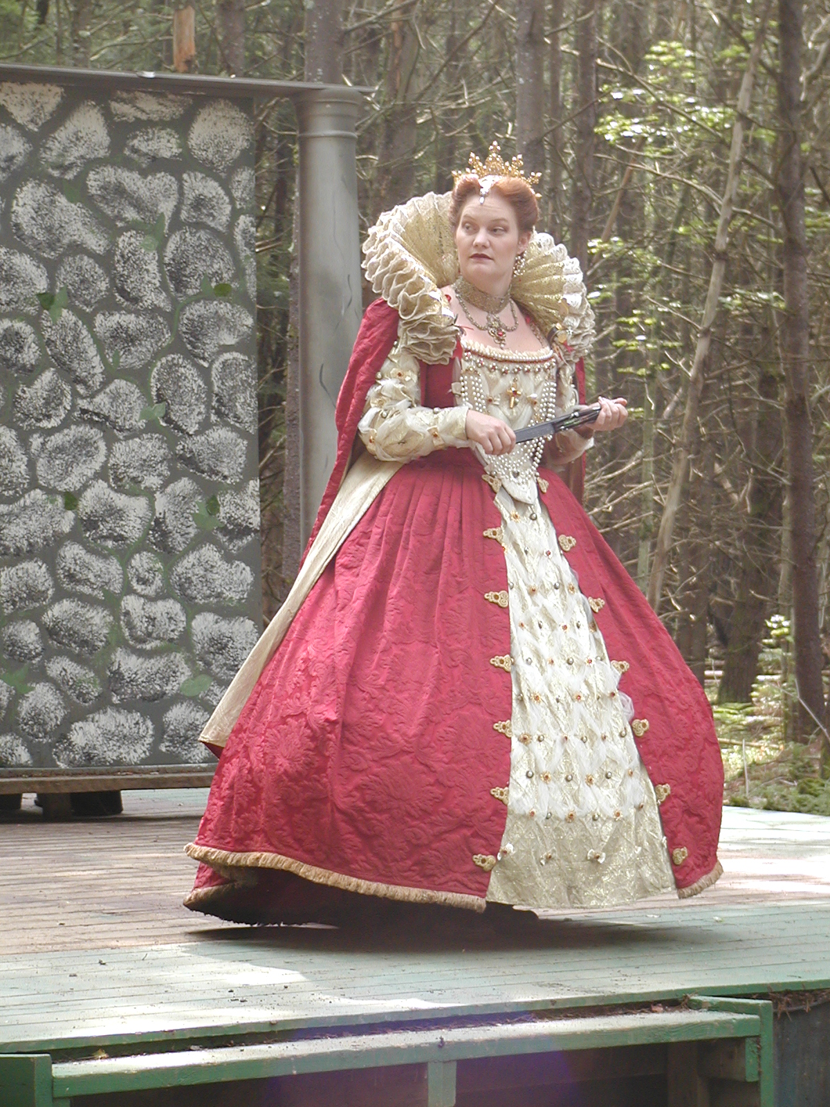 Picture #13: The queen confronts Mendoza and Drake #2 Small: 800x623, 135,070 bytes (132K), (html file) Large: 1600x1200, 1,254,998 bytes (1.2M), (html file) Copyright, Michael Meissner 2003, All rights reserved Olympus C-2100UZ camera f/2.8, ISO 100, 1/125 sec, 17.9mm, auto mode, SHQ, matrix metering 35mm equivalent focal length 99.0mm Taken by Michael Meissner on August 10, 2003 11:17:56 Last modified on August 14, 2003 at 10:50 Shutter speed of 1/125 or 1/250 may indicate use of flash |