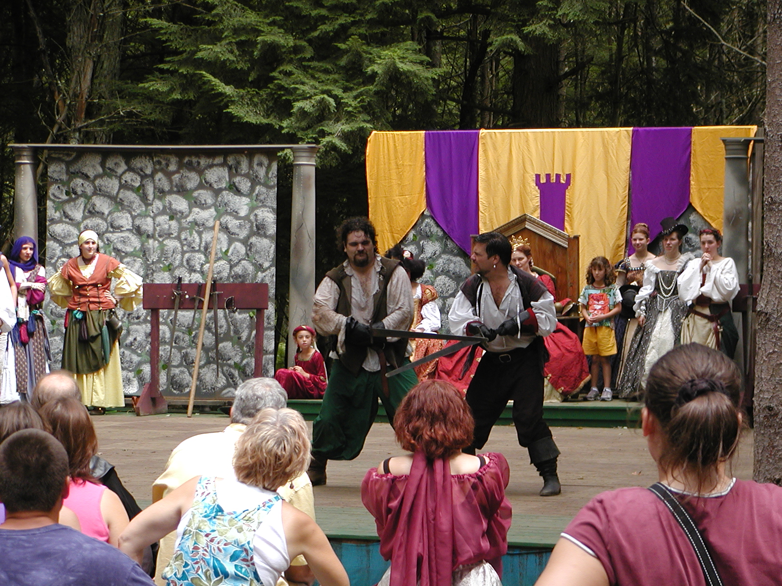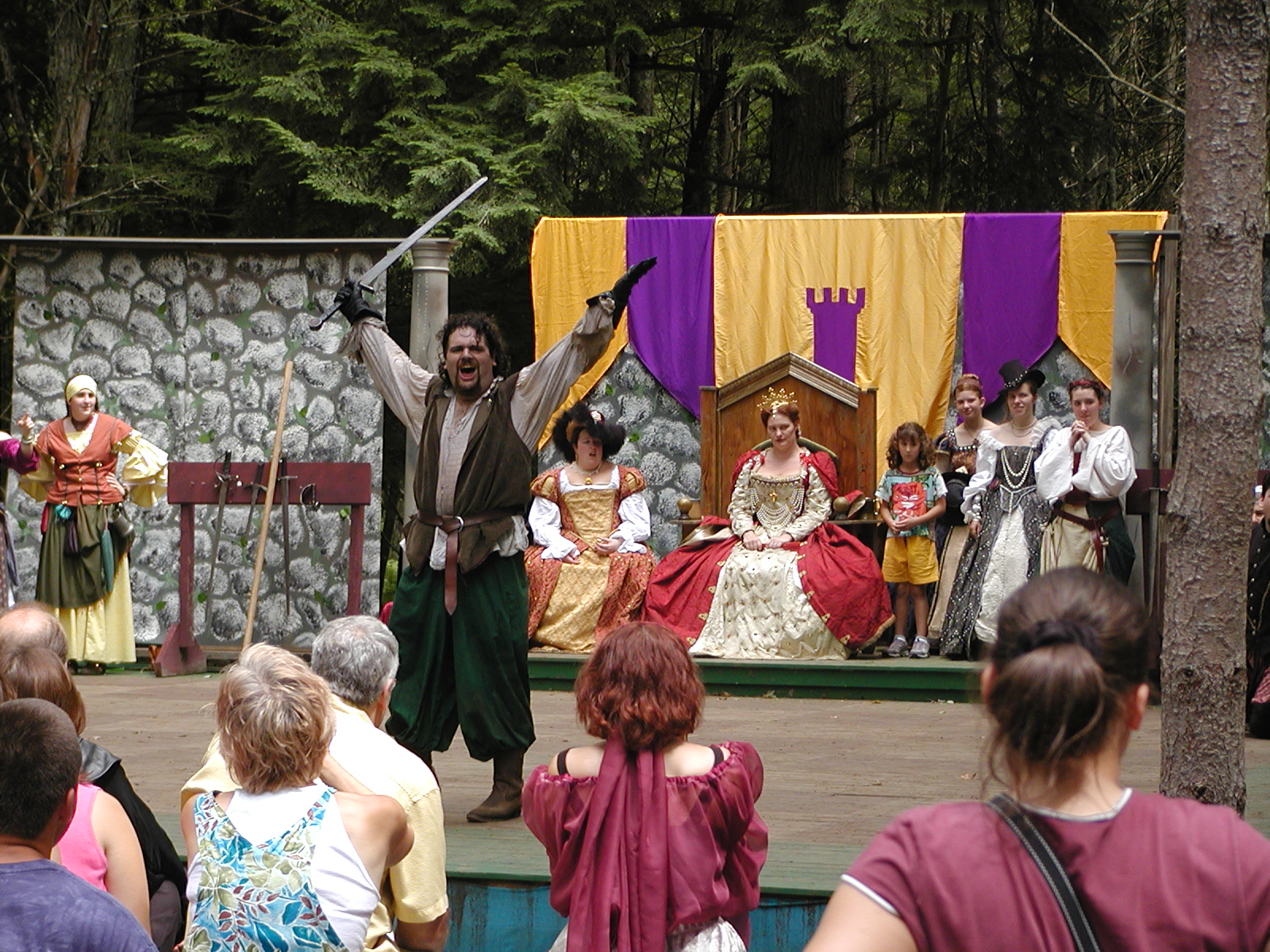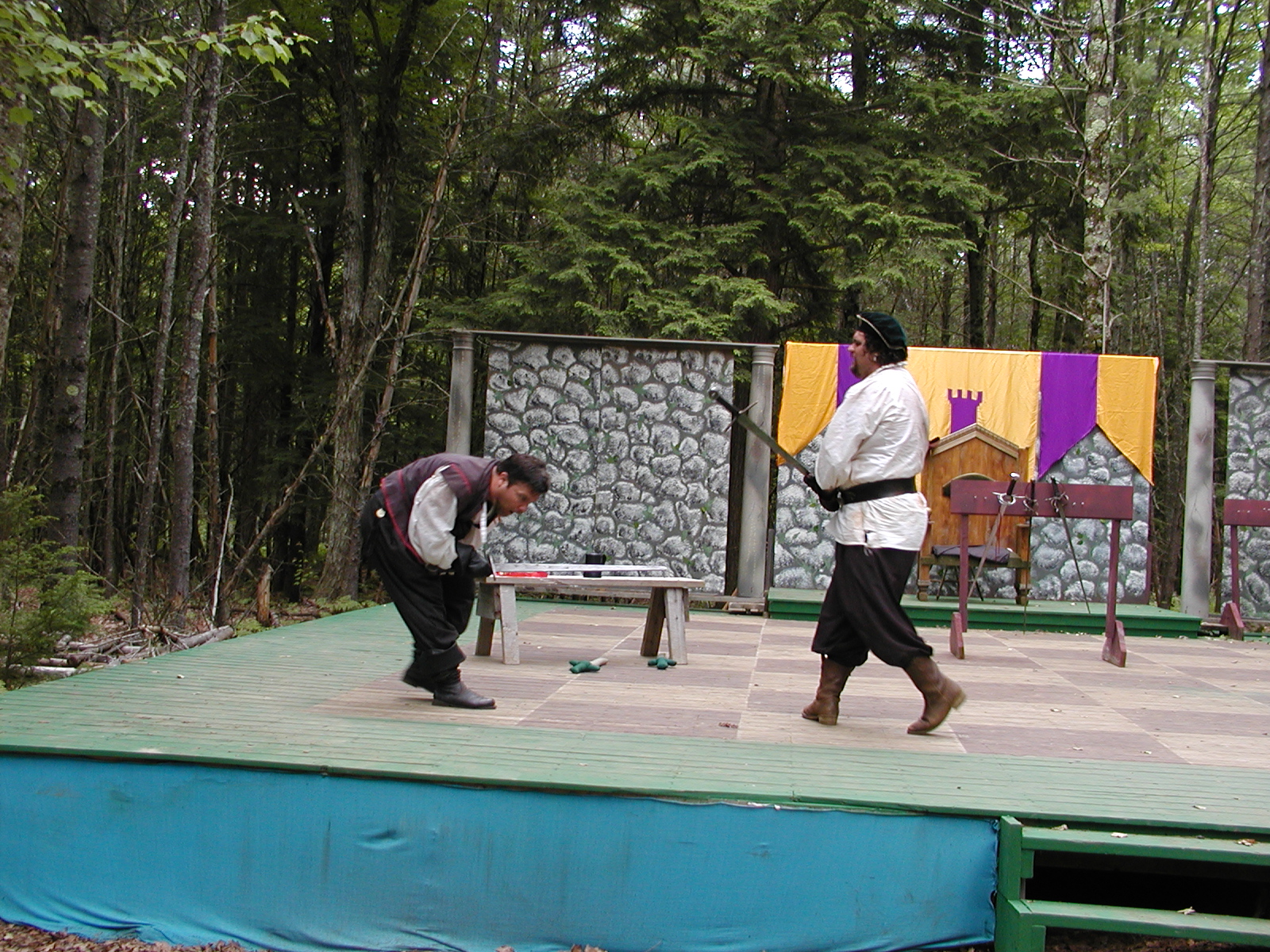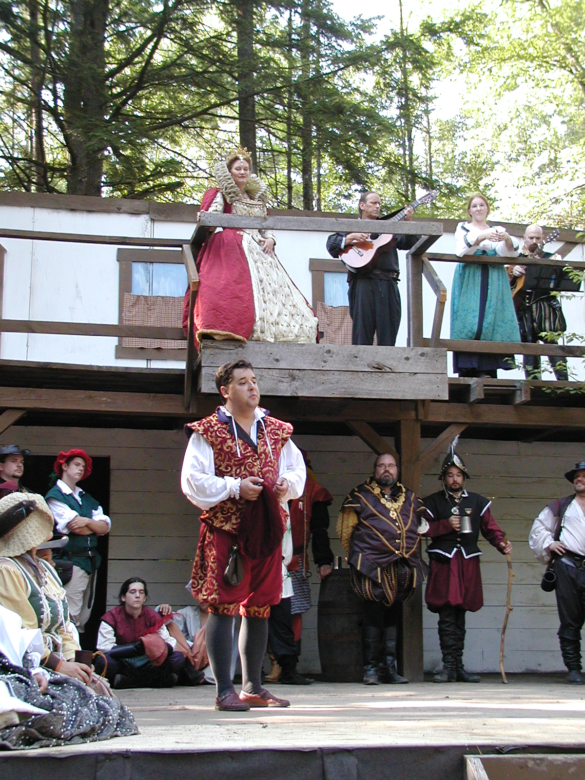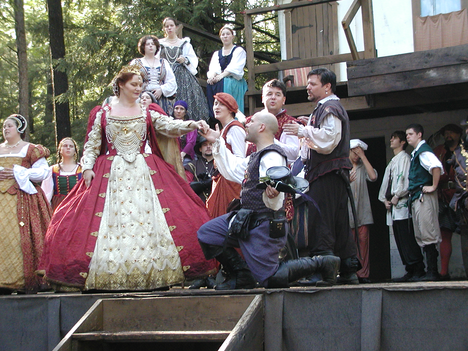 Picture #13: The queen confronts Mendoza and Drake #2 Small: 800x623, 135,070 bytes (132K), (html file) Large: 1600x1200, 1,254,998 bytes (1.2M), (html file) Copyright, Michael Meissner 2003, All rights reserved Olympus C-2100UZ camera f/2.8, ISO 100, 1/125 sec, 17.9mm, auto mode, SHQ, matrix metering 35mm equivalent focal length 99.0mm Taken by Michael Meissner on August 10, 2003 11:17:56 Last modified on August 14, 2003 at 10:50 Shutter speed of 1/125 or 1/250 may indicate use of flash |