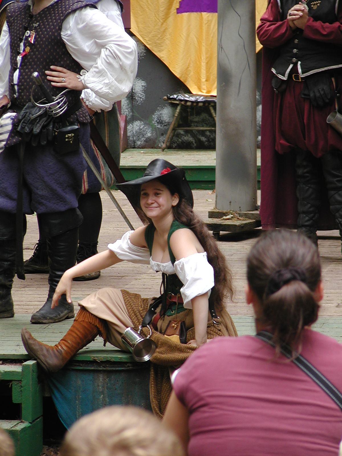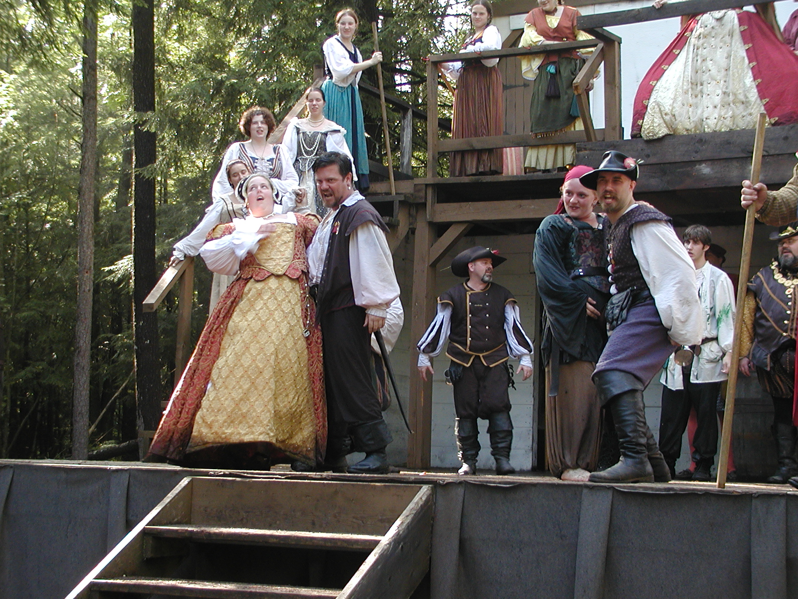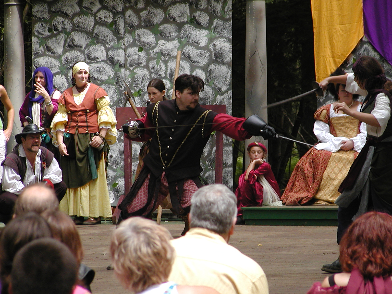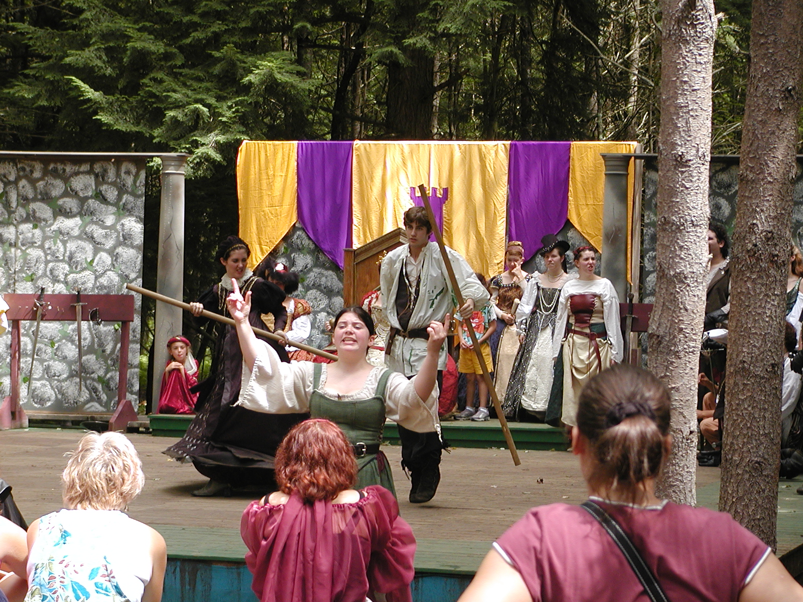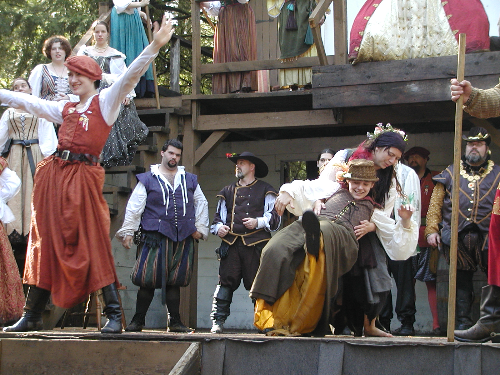 Picture #13: The queen confronts Mendoza and Drake #2 Small: 800x623, 135,070 bytes (132K), (html file) Large: 1600x1200, 1,254,998 bytes (1.2M), (html file) Copyright, Michael Meissner 2003, All rights reserved Olympus C-2100UZ camera f/2.8, ISO 100, 1/125 sec, 17.9mm, auto mode, SHQ, matrix metering 35mm equivalent focal length 99.0mm Taken by Michael Meissner on August 10, 2003 11:17:56 Last modified on August 14, 2003 at 10:50 Shutter speed of 1/125 or 1/250 may indicate use of flash |