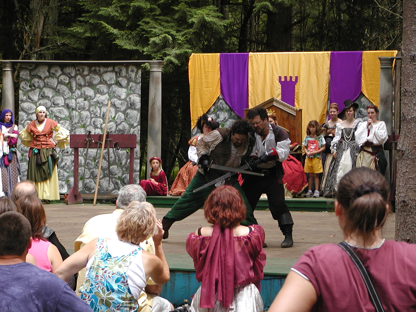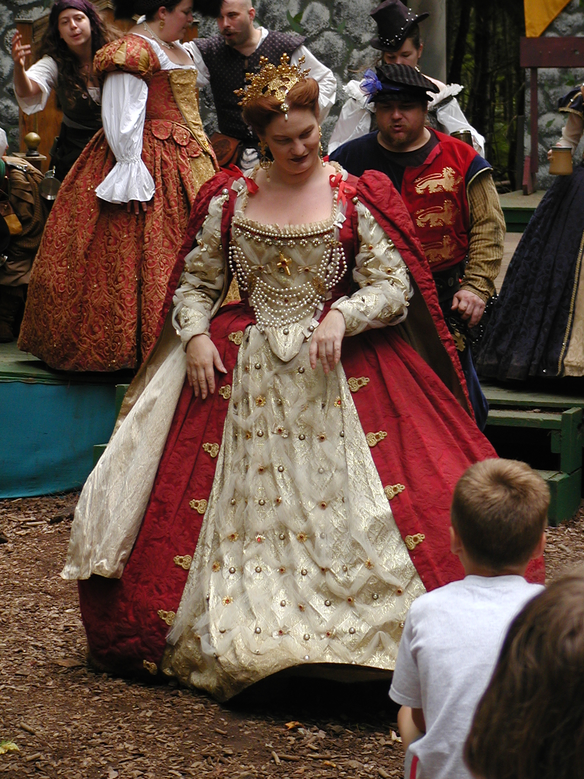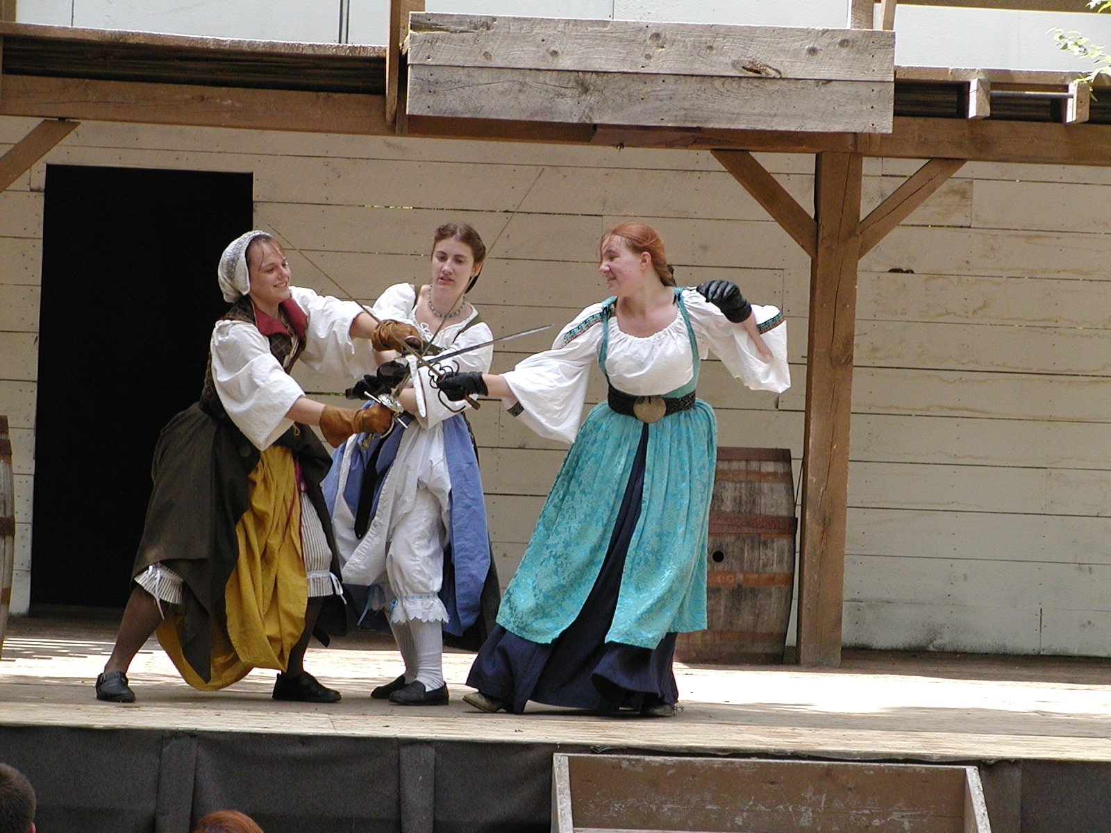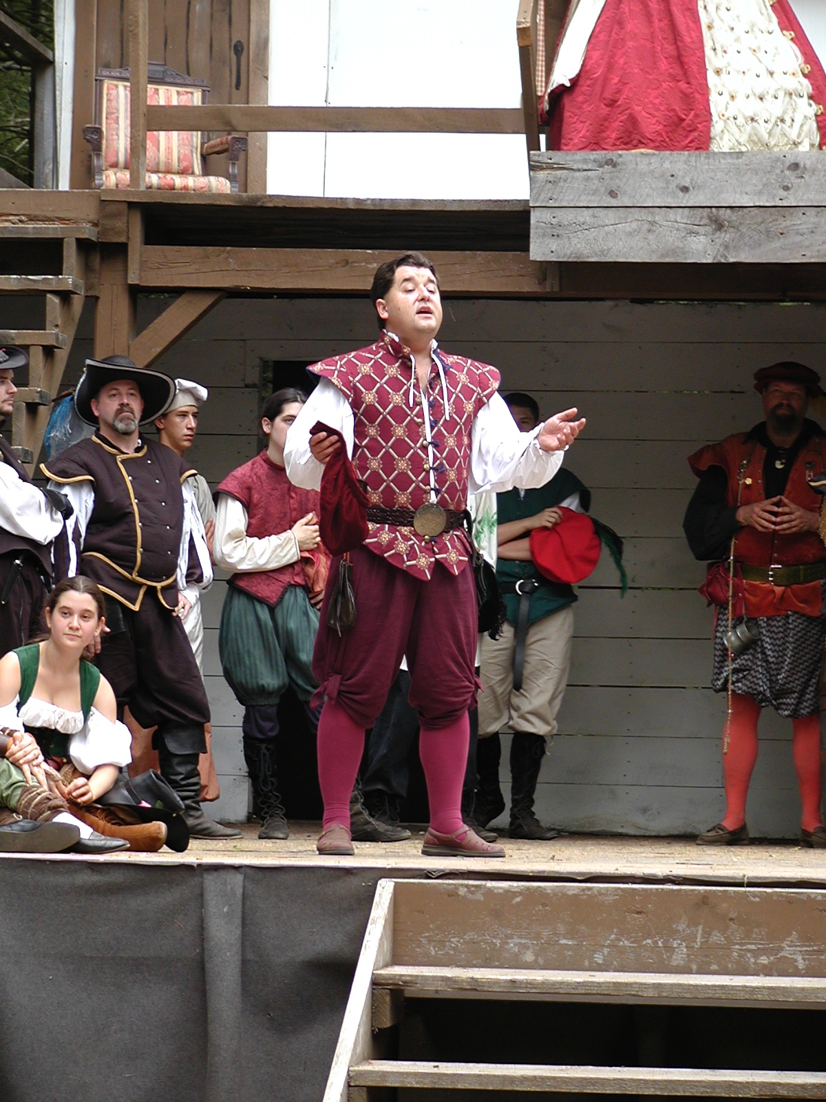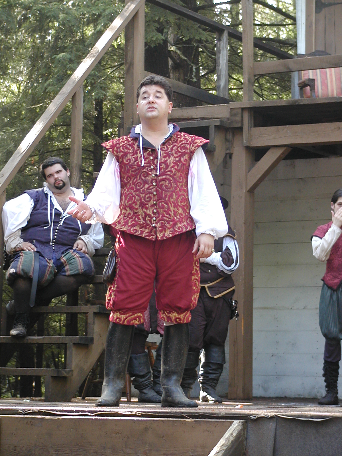 Picture #13: The queen confronts Mendoza and Drake #2 Small: 800x623, 135,070 bytes (132K), (html file) Large: 1600x1200, 1,254,998 bytes (1.2M), (html file) Copyright, Michael Meissner 2003, All rights reserved Olympus C-2100UZ camera f/2.8, ISO 100, 1/125 sec, 17.9mm, auto mode, SHQ, matrix metering 35mm equivalent focal length 99.0mm Taken by Michael Meissner on August 10, 2003 11:17:56 Last modified on August 14, 2003 at 10:50 Shutter speed of 1/125 or 1/250 may indicate use of flash |