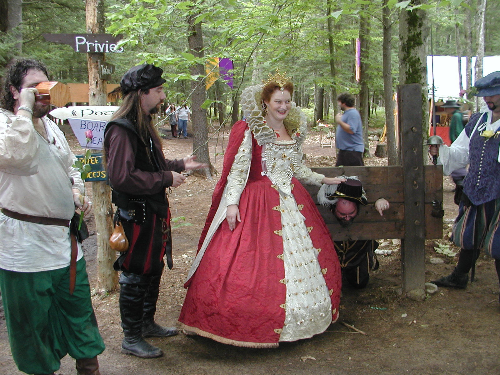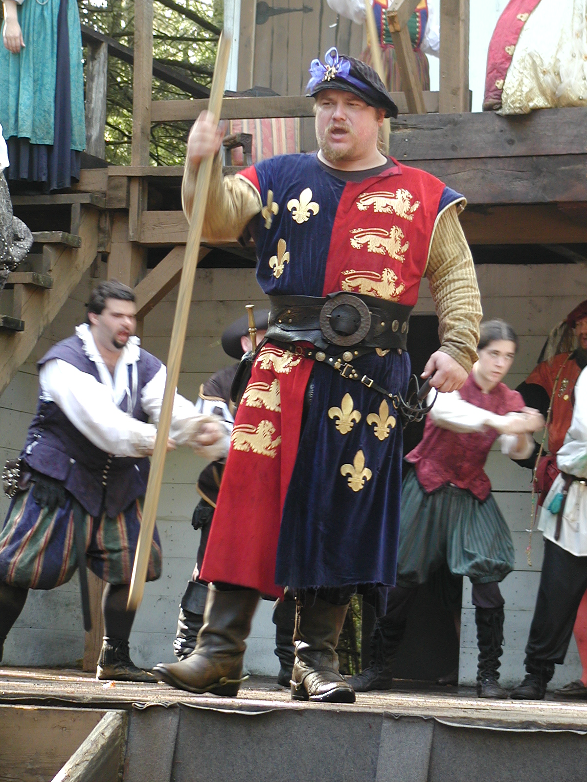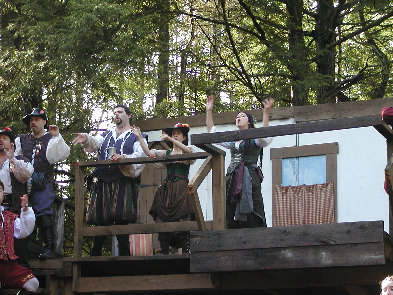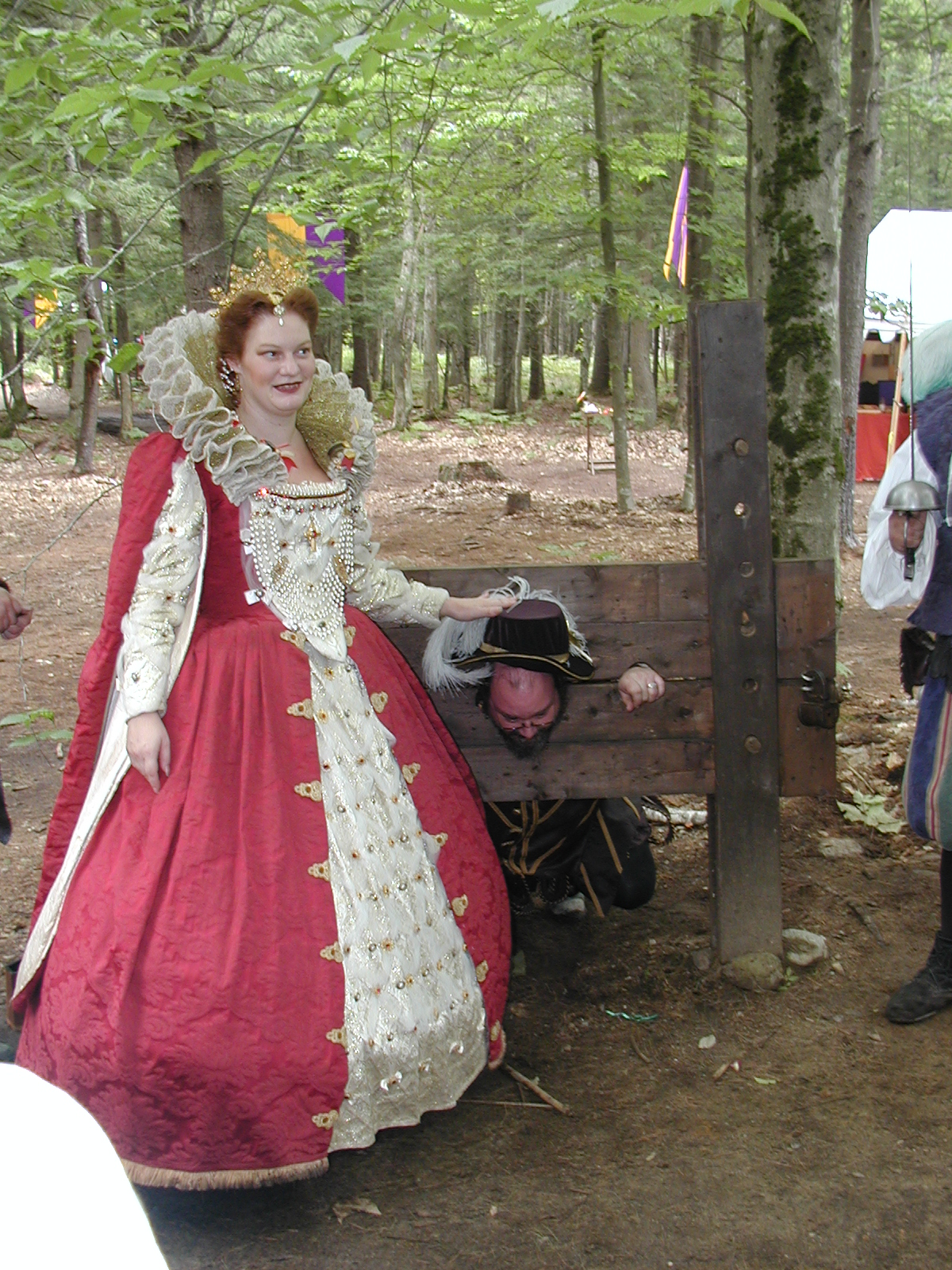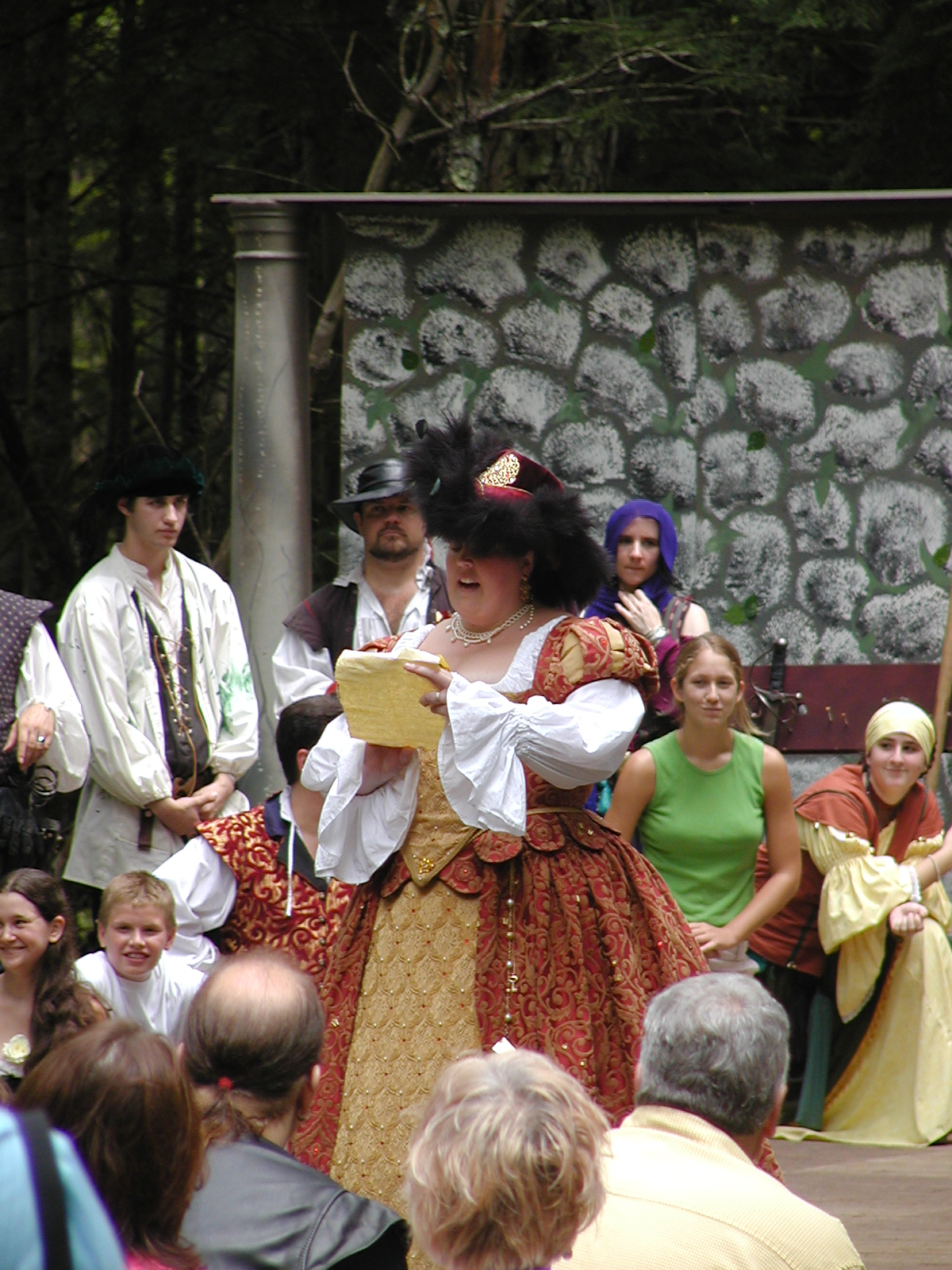 Picture #13: The queen confronts Mendoza and Drake #2 Small: 800x623, 135,070 bytes (132K), (html file) Large: 1600x1200, 1,254,998 bytes (1.2M), (html file) Copyright, Michael Meissner 2003, All rights reserved Olympus C-2100UZ camera f/2.8, ISO 100, 1/125 sec, 17.9mm, auto mode, SHQ, matrix metering 35mm equivalent focal length 99.0mm Taken by Michael Meissner on August 10, 2003 11:17:56 Last modified on August 14, 2003 at 10:50 Shutter speed of 1/125 or 1/250 may indicate use of flash |