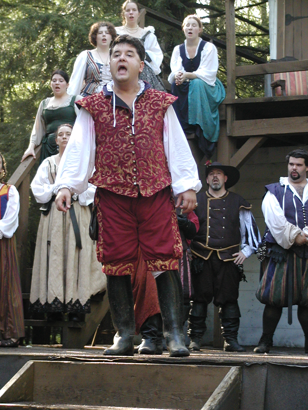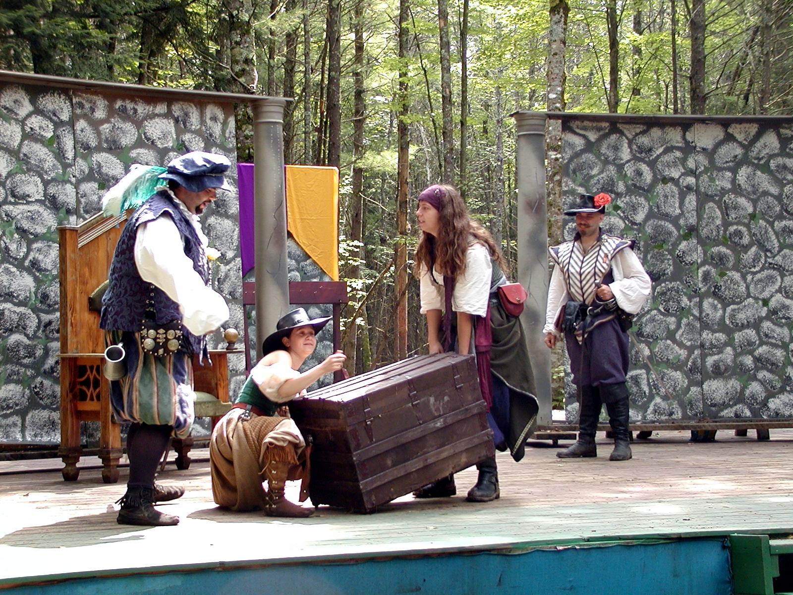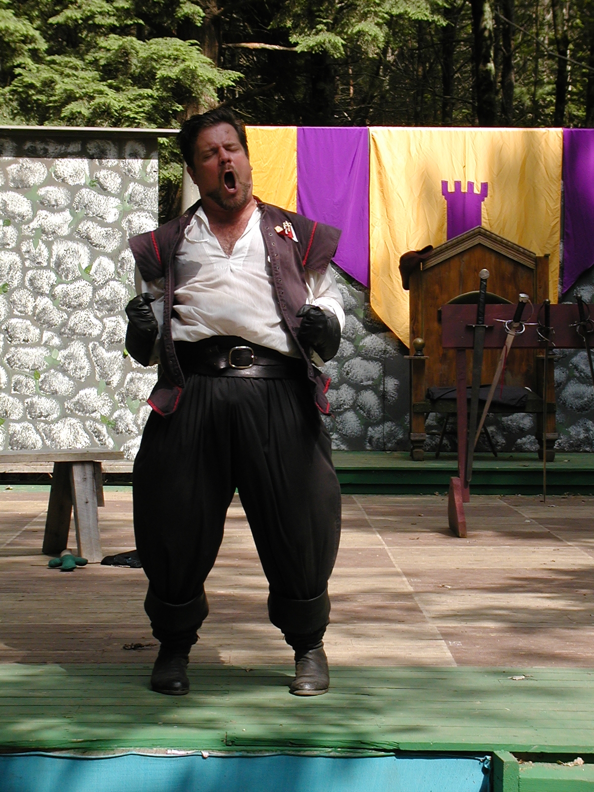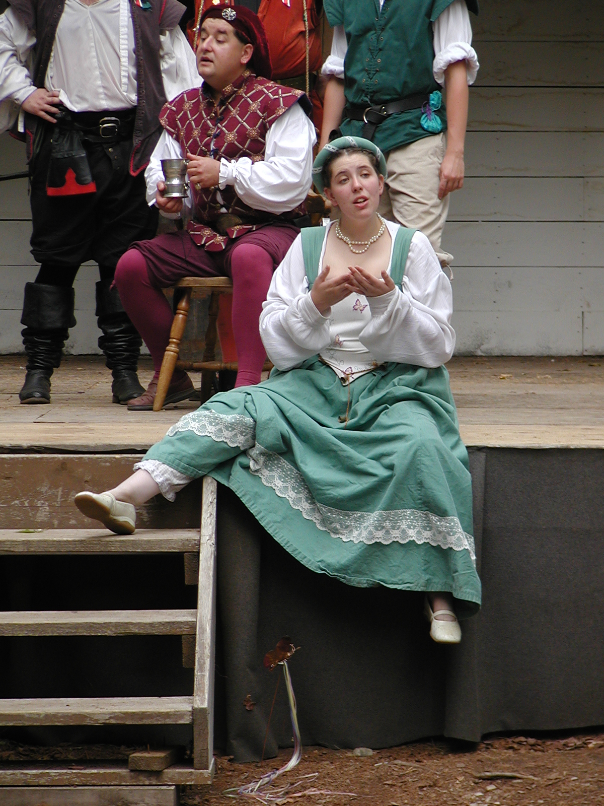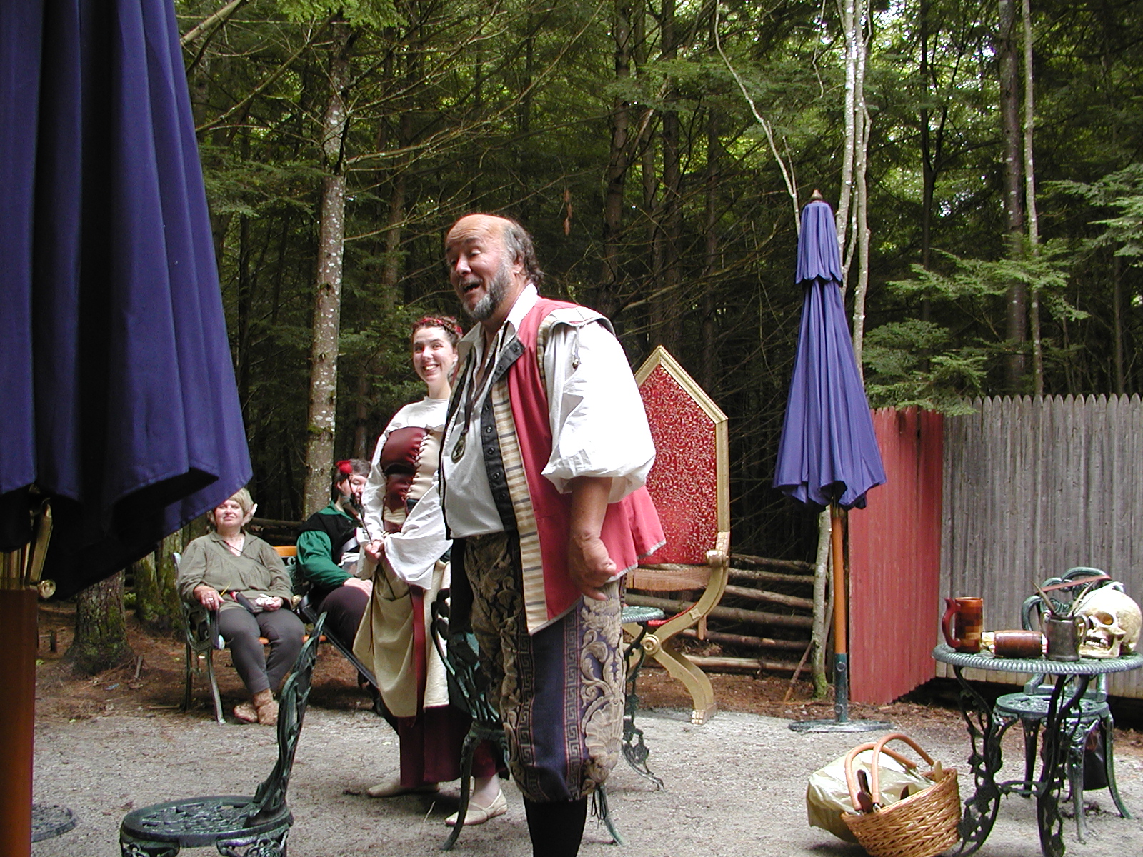 Picture #13: The queen confronts Mendoza and Drake #2 Small: 800x623, 135,070 bytes (132K), (html file) Large: 1600x1200, 1,254,998 bytes (1.2M), (html file) Copyright, Michael Meissner 2003, All rights reserved Olympus C-2100UZ camera f/2.8, ISO 100, 1/125 sec, 17.9mm, auto mode, SHQ, matrix metering 35mm equivalent focal length 99.0mm Taken by Michael Meissner on August 10, 2003 11:17:56 Last modified on August 14, 2003 at 10:50 Shutter speed of 1/125 or 1/250 may indicate use of flash |