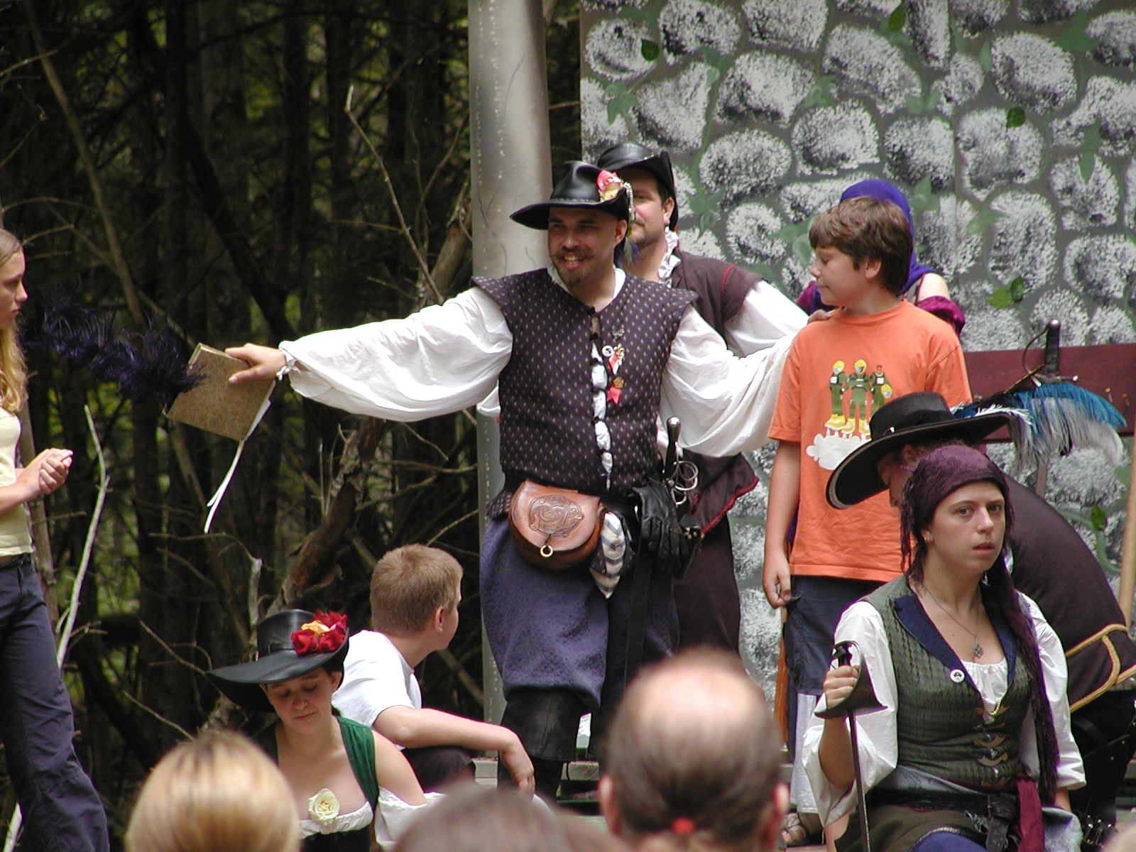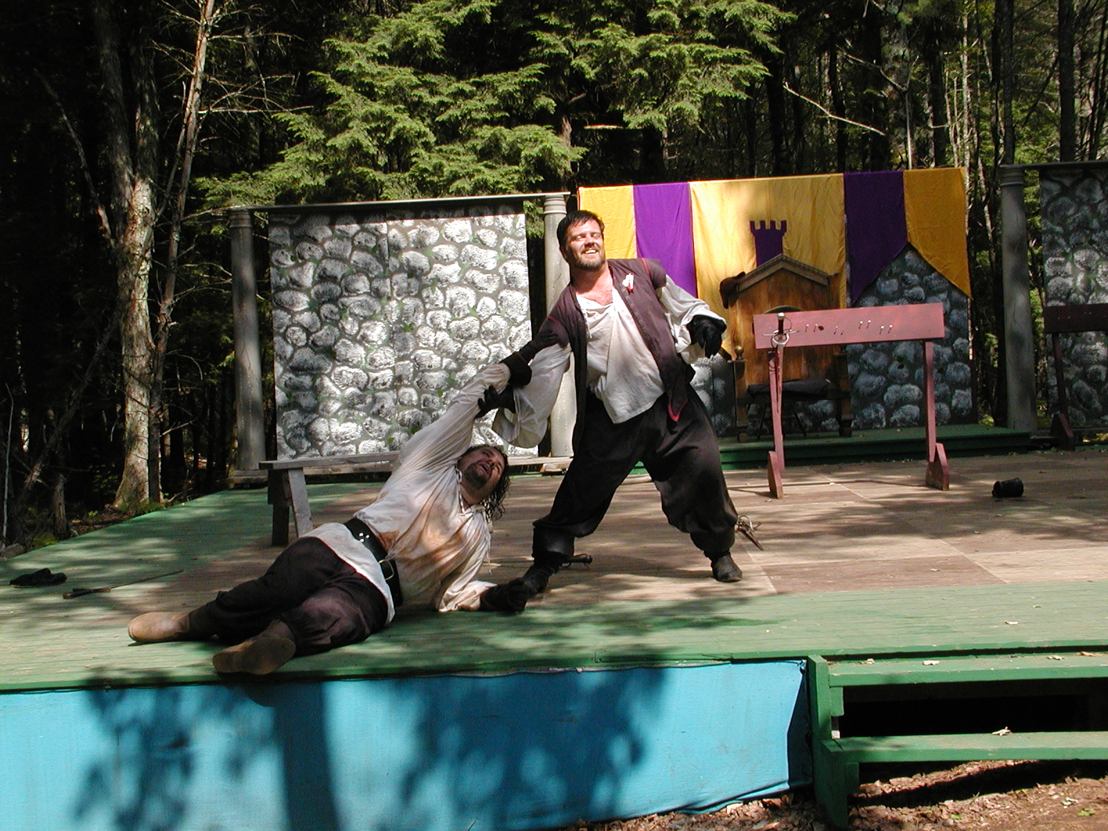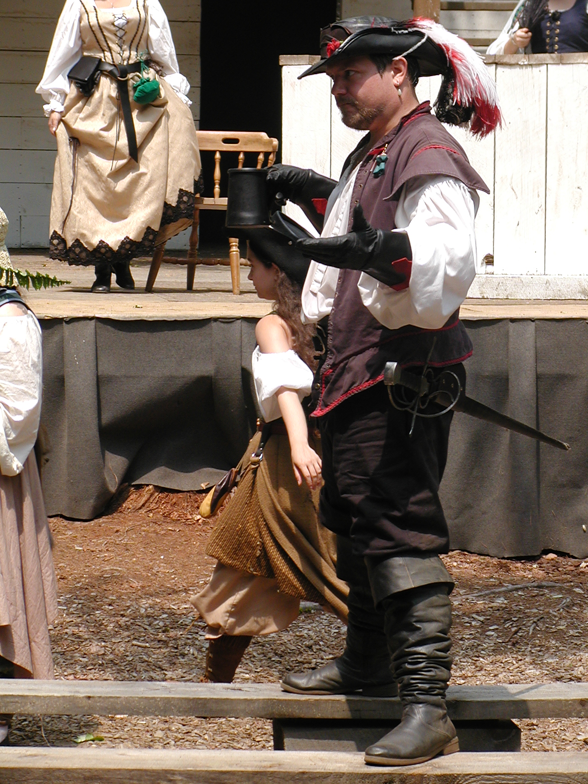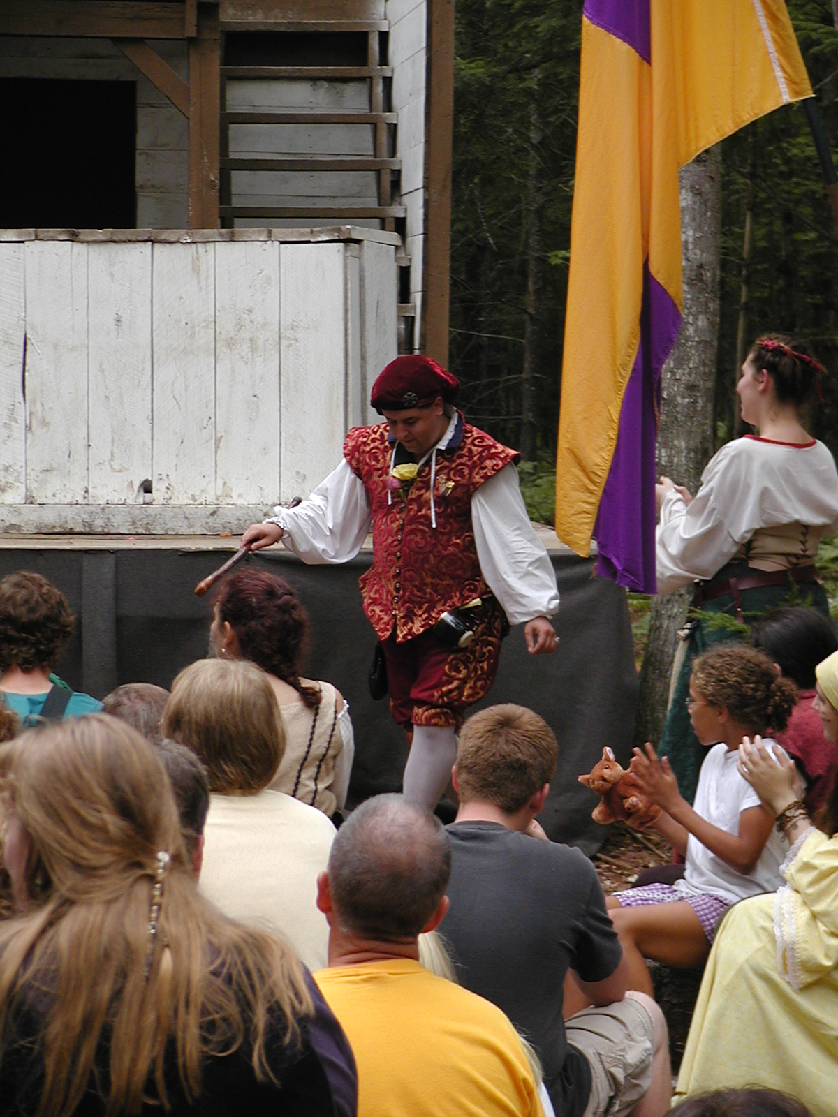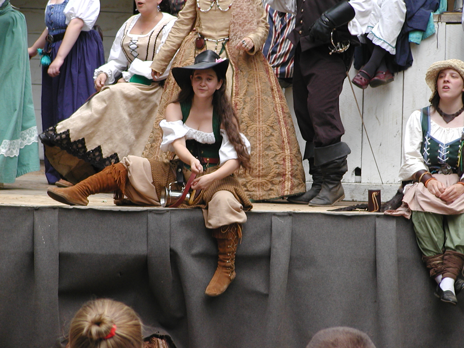 Picture #13: The queen confronts Mendoza and Drake #2 Small: 800x623, 135,070 bytes (132K), (html file) Large: 1600x1200, 1,254,998 bytes (1.2M), (html file) Copyright, Michael Meissner 2003, All rights reserved Olympus C-2100UZ camera f/2.8, ISO 100, 1/125 sec, 17.9mm, auto mode, SHQ, matrix metering 35mm equivalent focal length 99.0mm Taken by Michael Meissner on August 10, 2003 11:17:56 Last modified on August 14, 2003 at 10:50 Shutter speed of 1/125 or 1/250 may indicate use of flash |
