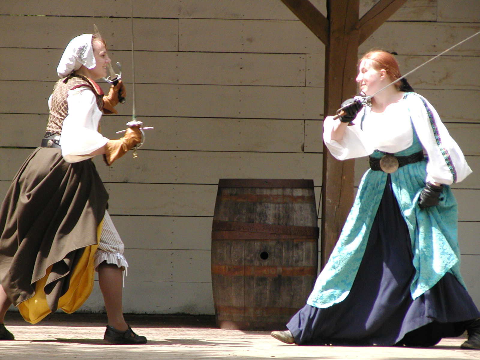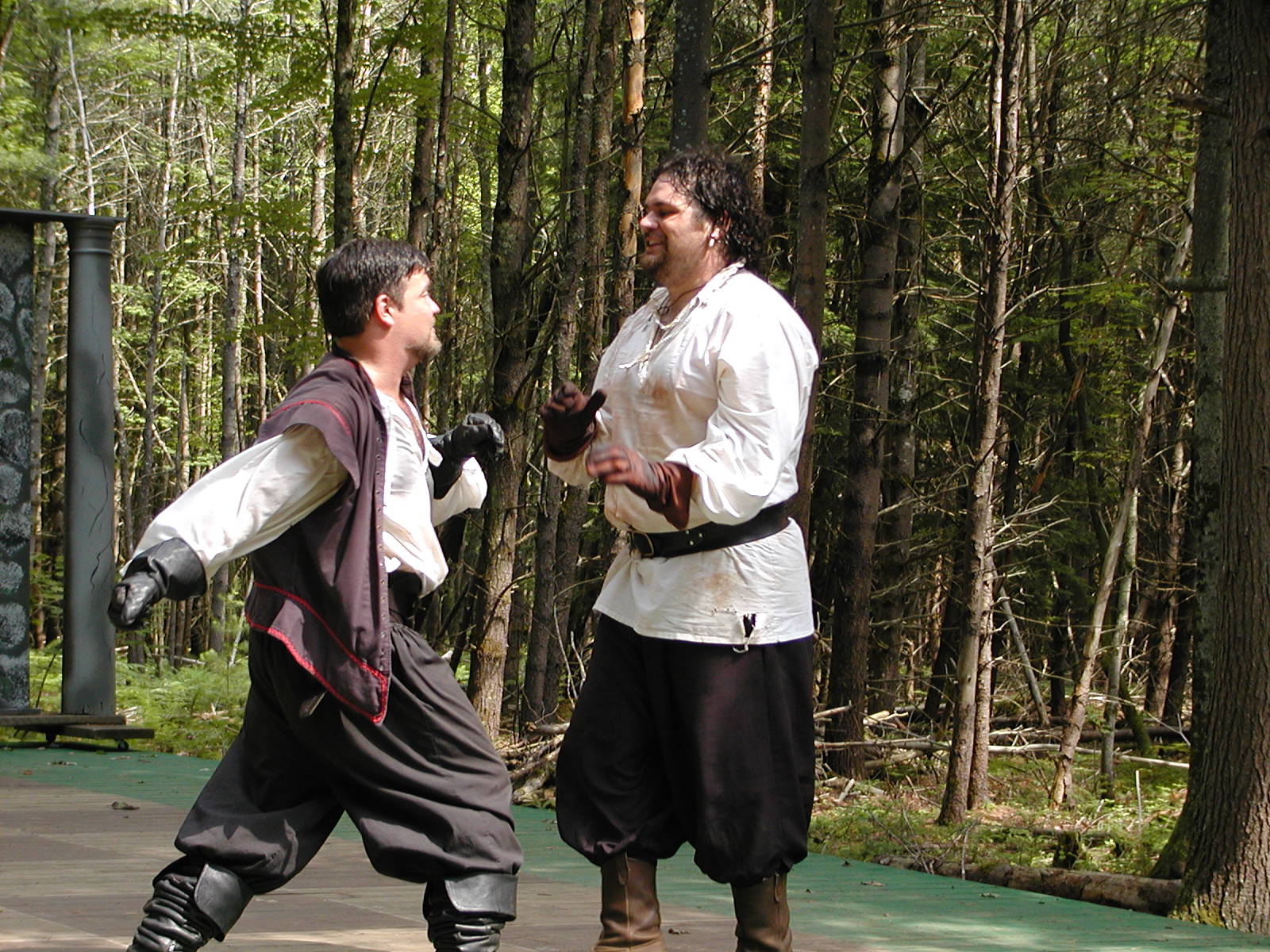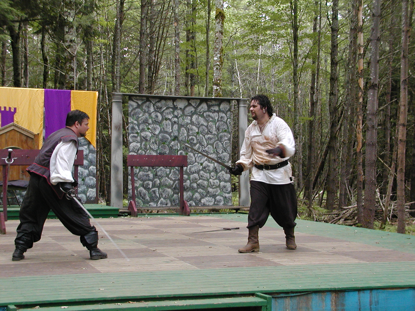 Picture #13: Quarterstaves #5 Small: 800x623, 118,684 bytes (116K), (html file) Large: 1600x1200, 1,305,498 bytes (1.2M), (html file) Copyright, Michael Meissner 2003, All rights reserved Olympus C-2100UZ camera f/2.8, ISO 100, 1/250 sec, 21.5mm, auto mode, SHQ, center weight metering 35mm equivalent focal length 119.0mm Taken by Michael Meissner on August 10, 2003 13:27:45 Last modified on August 14, 2003 at 12:39 Shutter speed of 1/125 or 1/250 may indicate use of flash |