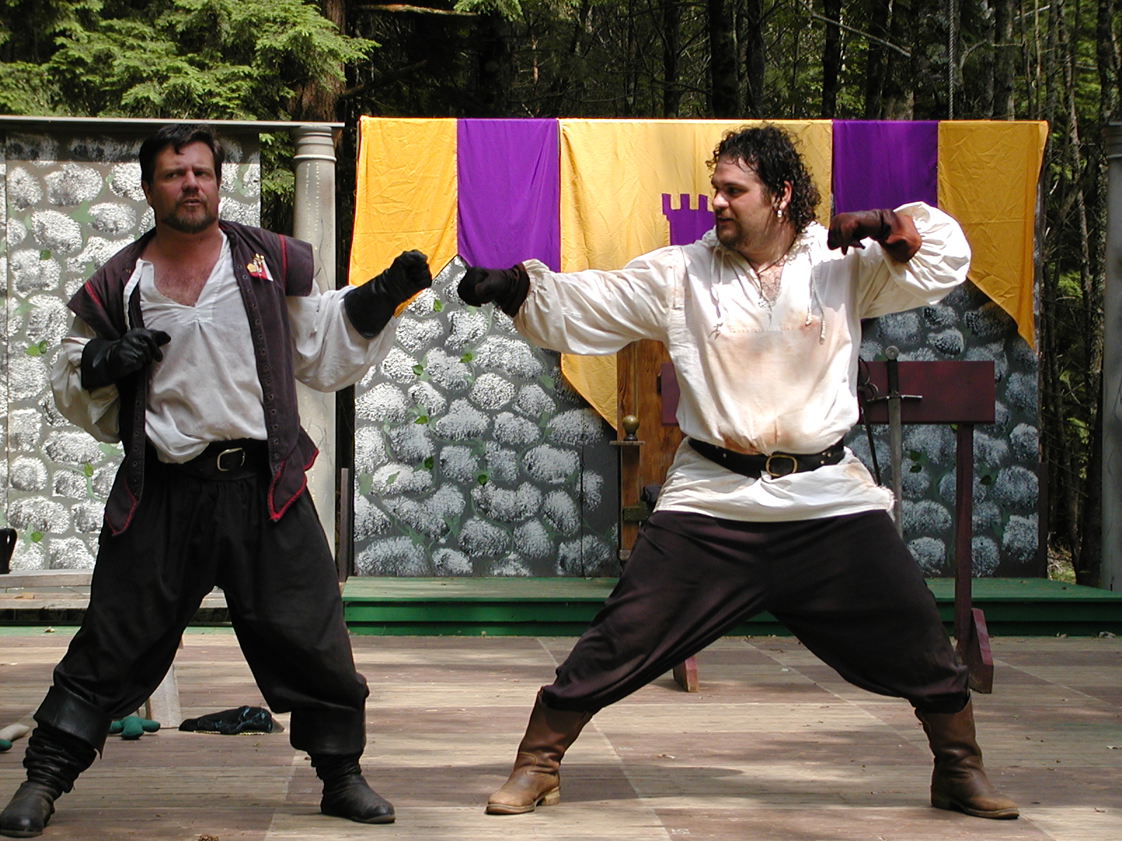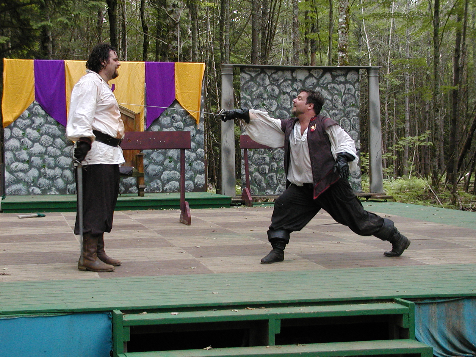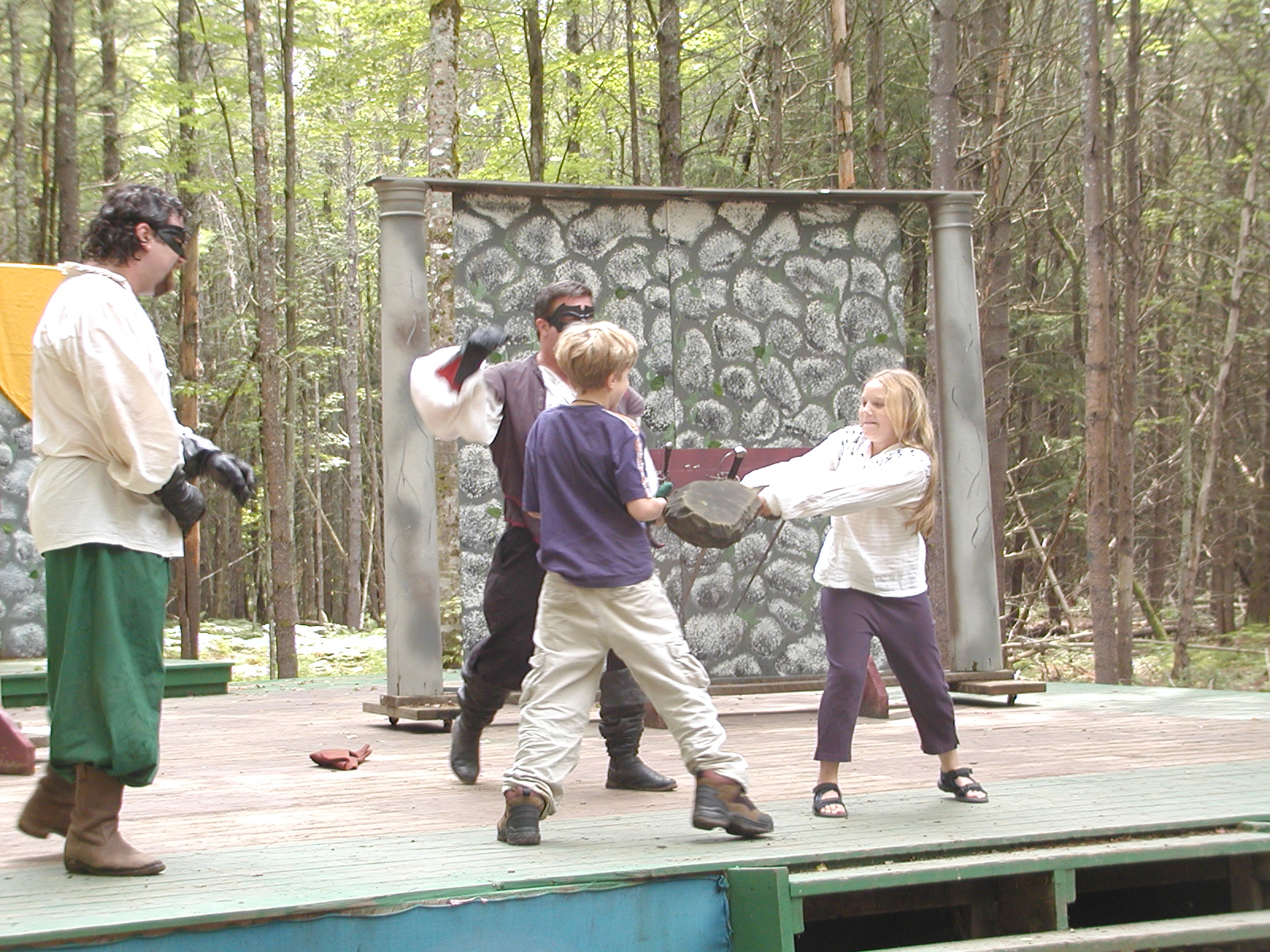 Picture #13: Quarterstaves #5 Small: 800x623, 118,684 bytes (116K), (html file) Large: 1600x1200, 1,305,498 bytes (1.2M), (html file) Copyright, Michael Meissner 2003, All rights reserved Olympus C-2100UZ camera f/2.8, ISO 100, 1/250 sec, 21.5mm, auto mode, SHQ, center weight metering 35mm equivalent focal length 119.0mm Taken by Michael Meissner on August 10, 2003 13:27:45 Last modified on August 14, 2003 at 12:39 Shutter speed of 1/125 or 1/250 may indicate use of flash |