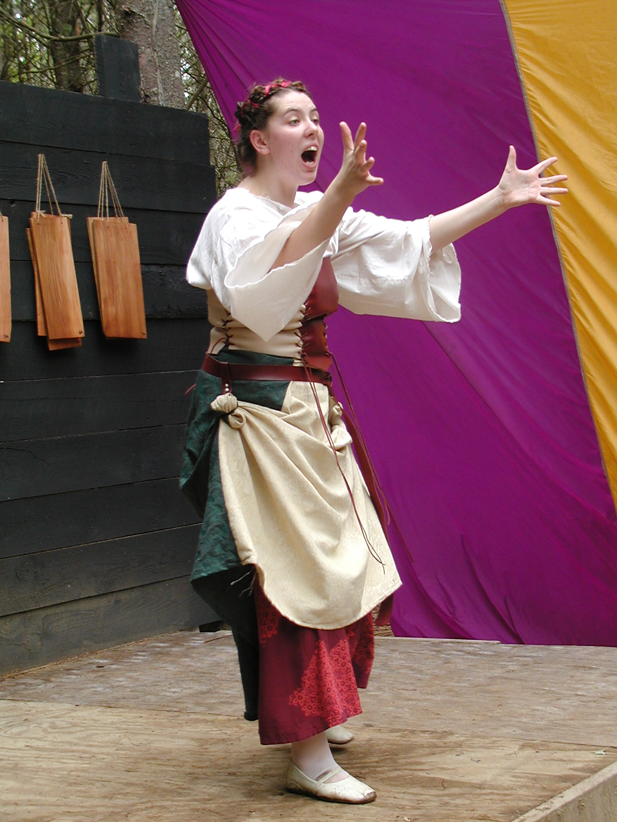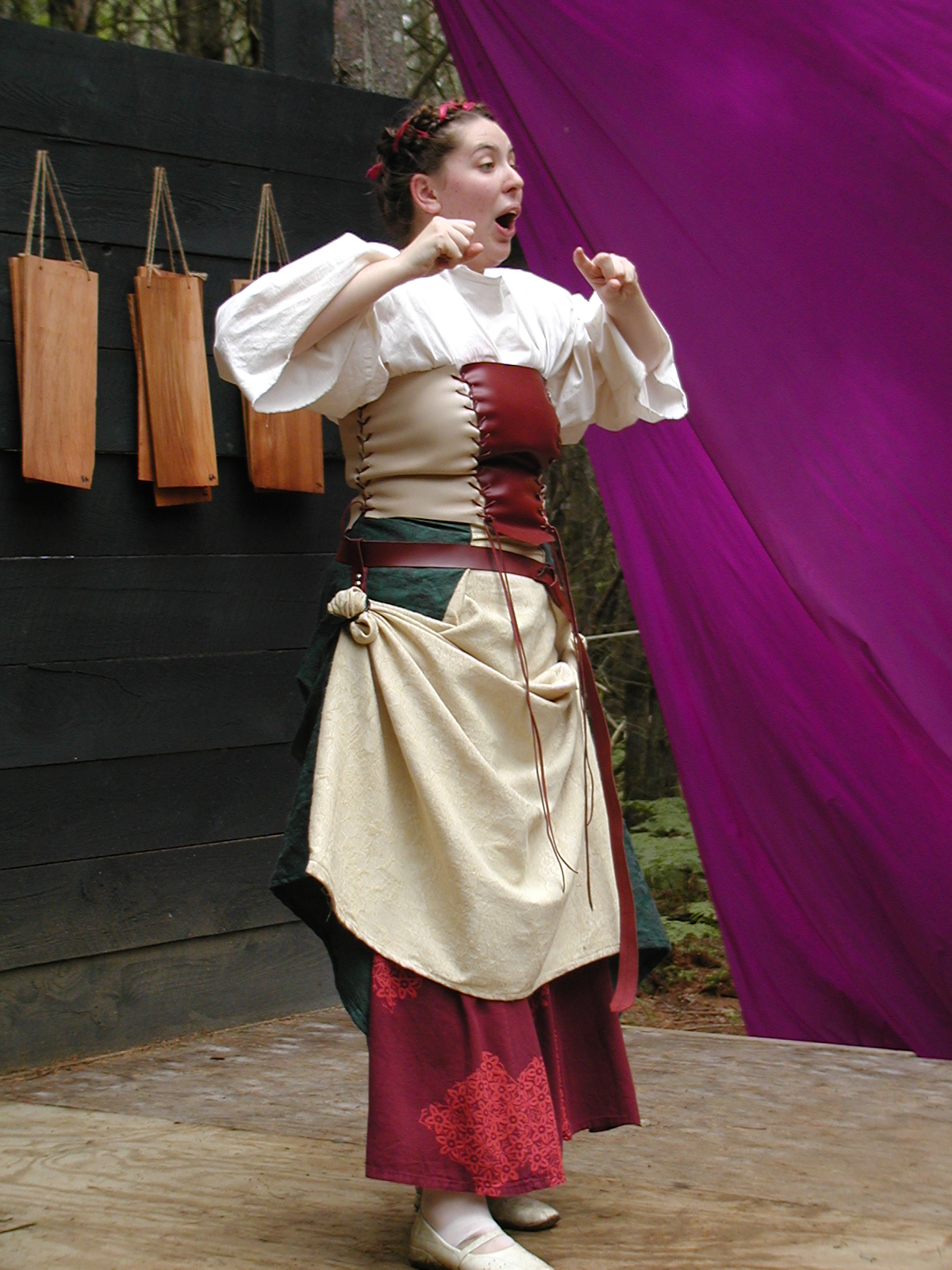 Picture #28: Waiting to go on #2 Small: 600x823, 132,103 bytes (130K), (html file) Large: 1200x1600, 1,344,903 bytes (1.3M), (html file) Copyright, Michael Meissner 2003, All rights reserved Olympus C-2100UZ camera f/2.8, ISO 200, 1/80 sec, 45.8mm, auto mode, SHQ, matrix metering 35mm equivalent focal length 254.0mm Taken by Michael Meissner on August 10, 2003 16:11:50 Last modified on August 15, 2003 at 10:55 |