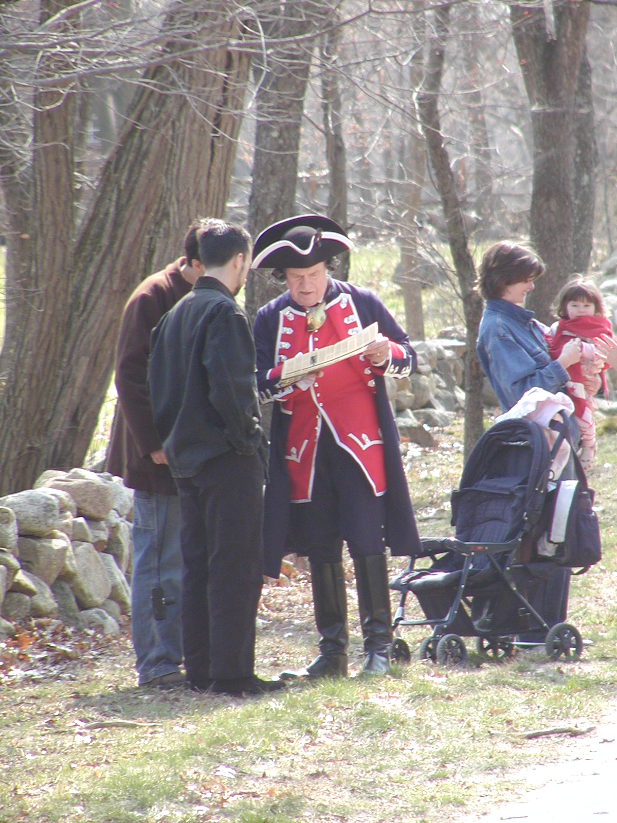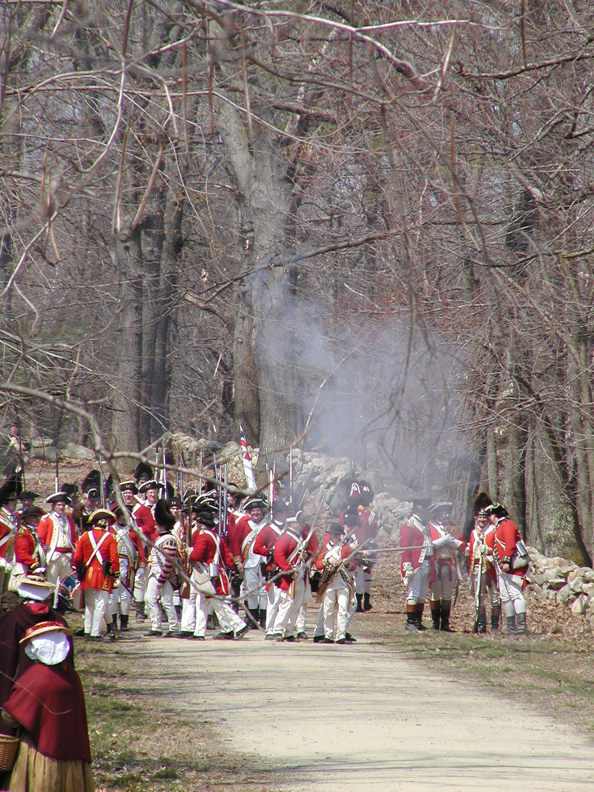 Picture #10: The British regulars advance guard tries to flush out the colonists Small: 800x623, 180,579 bytes (177K), (html file) Large: 1600x1200, 1,173,420 bytes (1.1M), (html file) Copyright, Michael Meissner 2003, All rights reserved Olympus C-2100UZ camera f/4.5, ISO 100, 1/160 sec, 34.1mm, shutter priority, SHQ, matrix metering 35mm equivalent focal length 189.0mm Taken by Michael Meissner on April 19, 2003 12:03:49 Last modified on May 05, 2003 at 23:14 |