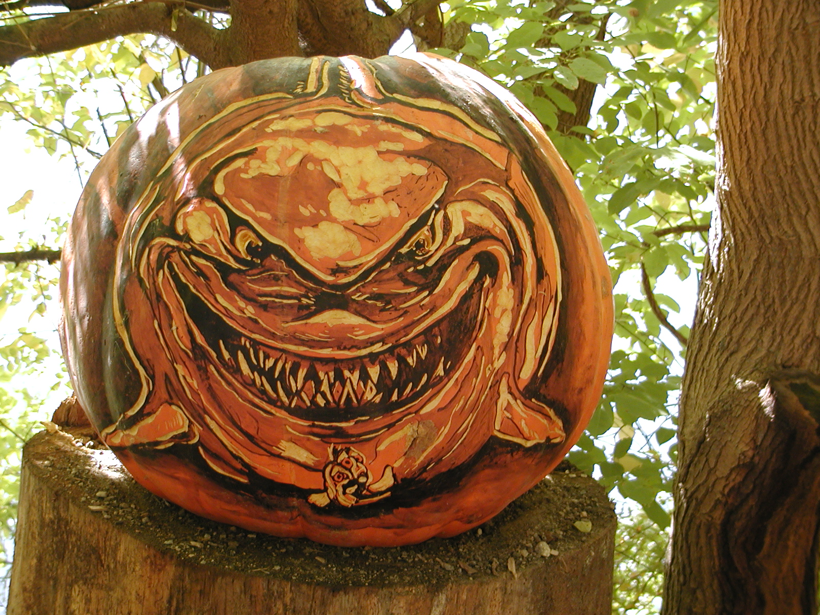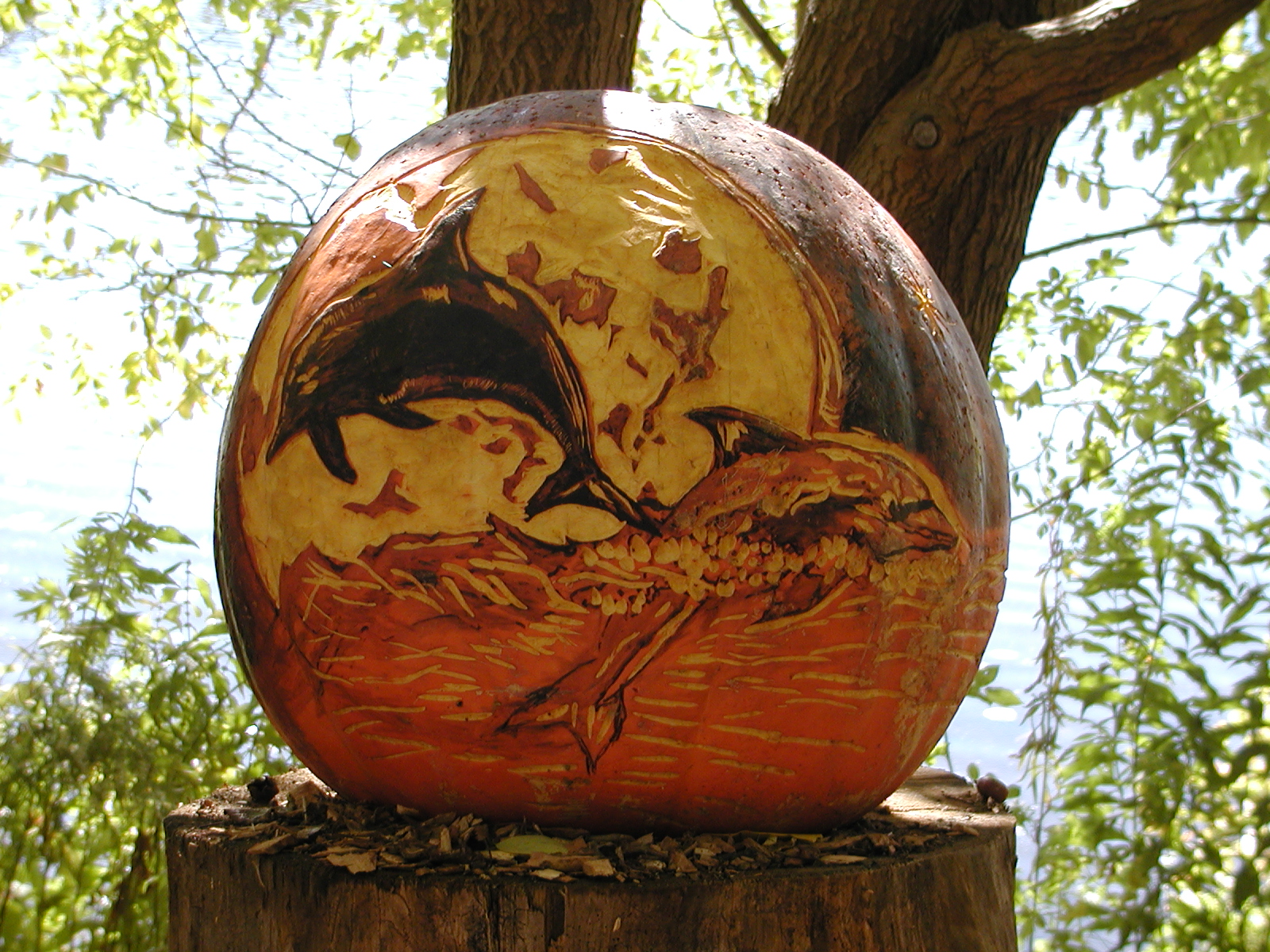 Picture #41: Dolphin pumpkin Small: 800x623, 114,116 bytes (112K), (html file) Large: 1600x1200, 1,345,173 bytes (1.3M), (html file) Copyright, Michael Meissner 2003, All rights reserved Olympus C-2100UZ camera f/2.8, ISO 100, 1/250 sec, 14.7mm, auto mode, SHQ, matrix metering 35mm equivalent focal length 82.0mm Taken by Michael Meissner on October 13, 2003 13:33:05 Last modified on October 20, 2003 at 12:22 Shutter speed of 1/125 or 1/250 may indicate use of flash |