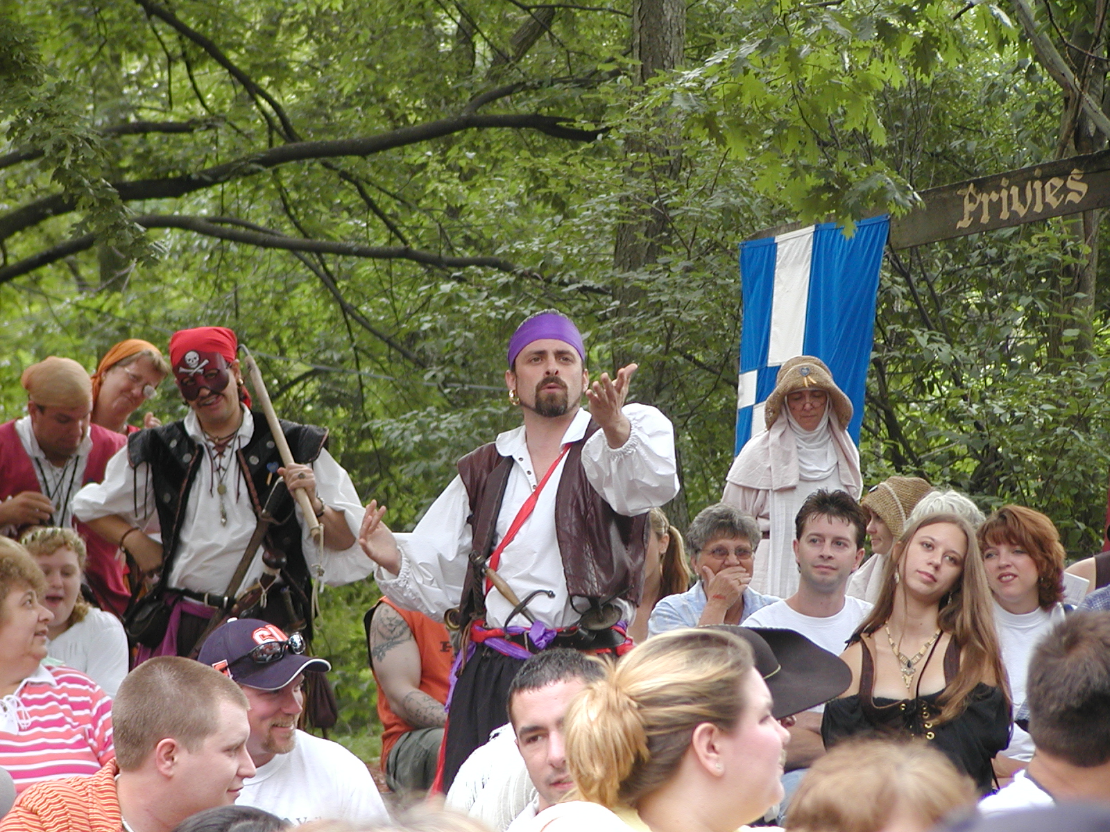 Picture #8: Rogues' Revels #4 Small: 800x623, 113,079 bytes (111K), (html file) Large: 1600x1200, 1,314,653 bytes (1.3M), (html file) Copyright, Michael Meissner 2003, All rights reserved Olympus C-2100UZ camera f/3.5, ISO 100, 1/650 sec, 15.2mm, auto mode, SHQ, matrix metering 35mm equivalent focal length 84.0mm Taken by Michael Meissner on August 03, 2003 12:22:32 Last modified on September 02, 2003 at 11:35 |