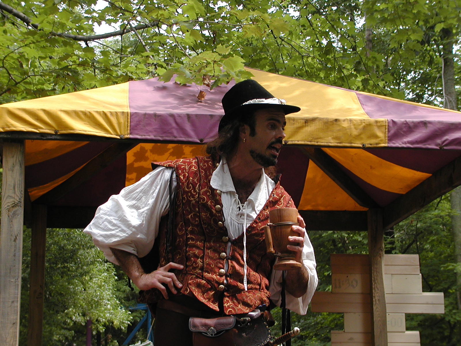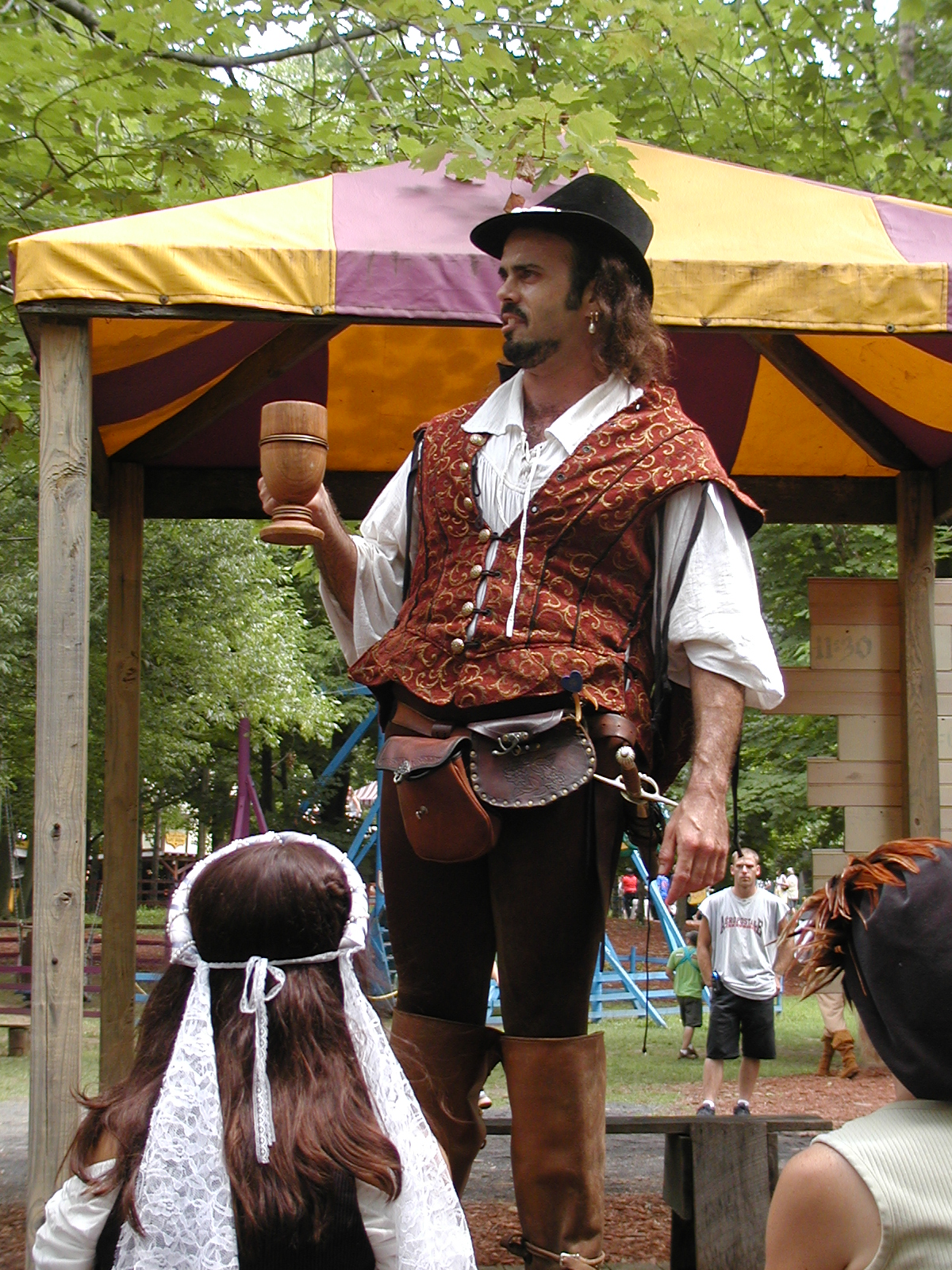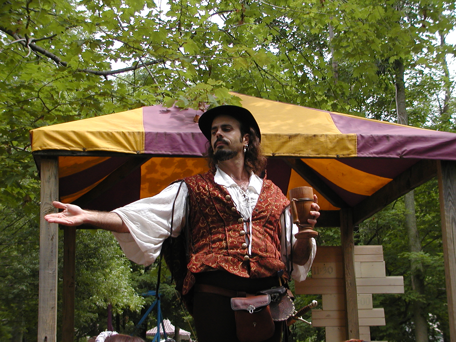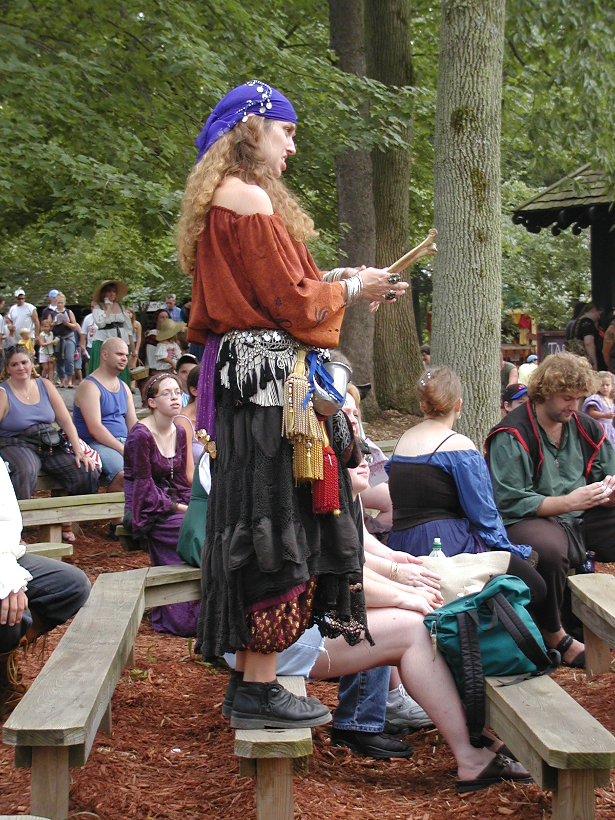 Picture #24: Mara at the Rogues' Revels #3 Small: 600x823, 118,471 bytes (116K), (html file) Large: 1200x1600, 1,365,905 bytes (1.3M), (html file) Copyright, Michael Meissner 2003, All rights reserved Olympus C-2100UZ camera f/2.8, ISO 100, 1/250 sec, 16.8mm, auto mode, SHQ, matrix metering 35mm equivalent focal length 93.0mm Taken by Michael Meissner on August 03, 2003 12:29:28 Last modified on September 02, 2003 at 11:35 Shutter speed of 1/125 or 1/250 may indicate use of flash |