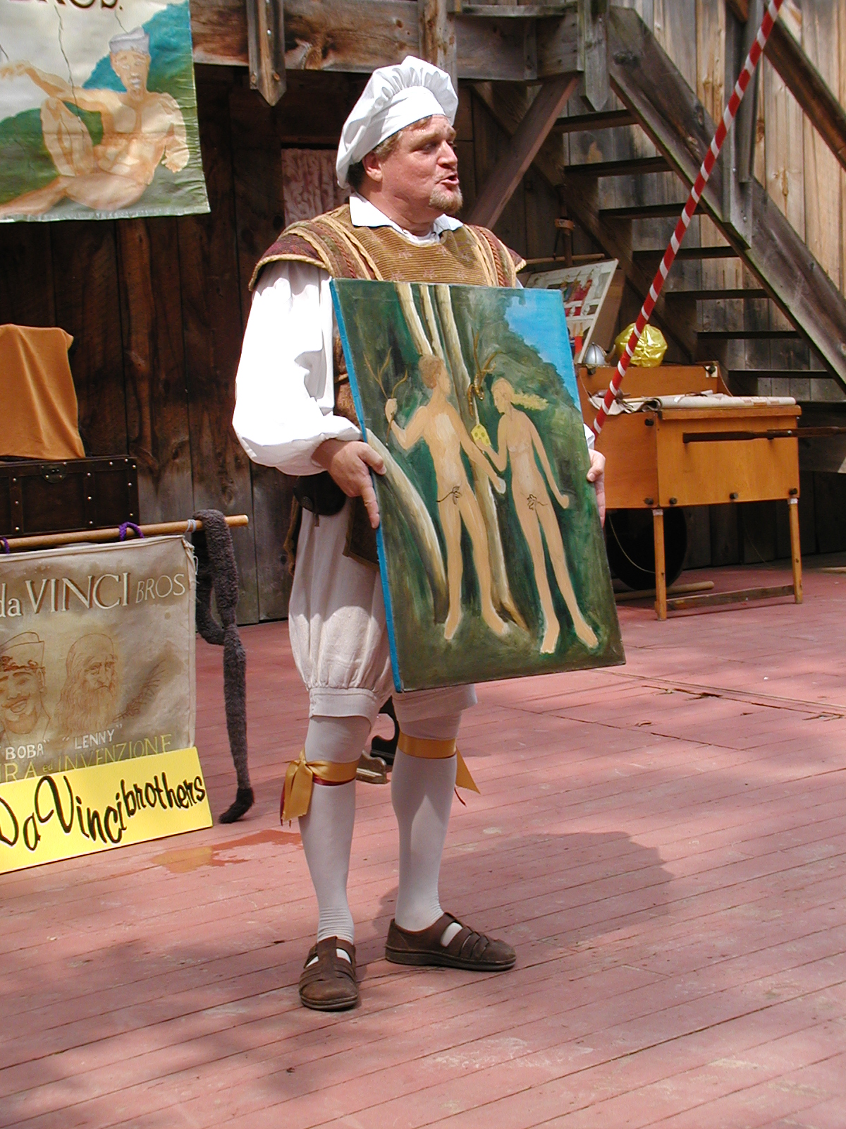 Picture #2: Bob DaVinci and paintings Small: 600x823, 97,290 bytes (96K), (html file) Large: 1200x1600, 1,210,403 bytes (1.2M), (html file) Copyright, Michael Meissner 2003, All rights reserved Olympus C-2100UZ camera f/4.0, ISO 100, 1/650 sec, 12.0mm, auto mode, SHQ, matrix metering 35mm equivalent focal length 67.0mm Taken by Michael Meissner on August 03, 2003 11:39:14 Last modified on September 02, 2003 at 11:35 |