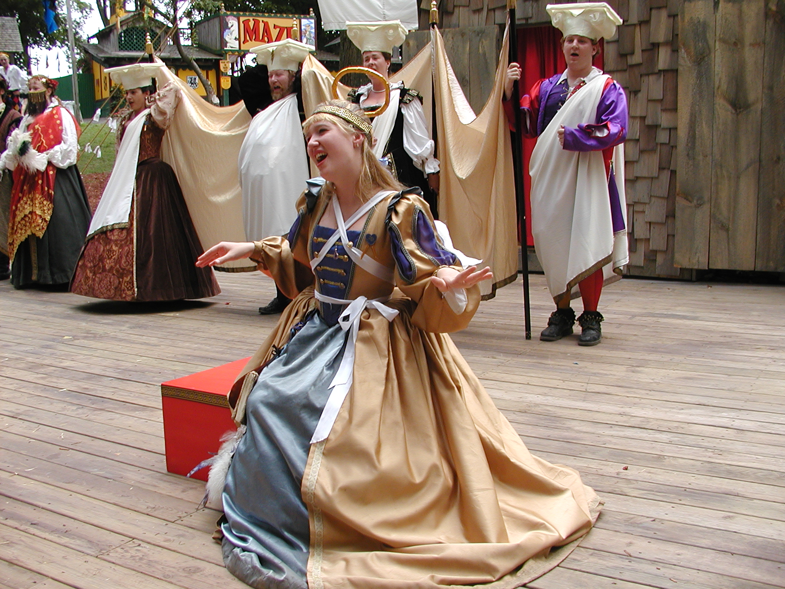 Picture #11: The Royal Masque #8 Small: 800x623, 132,571 bytes (130K), (html file) Large: 1600x1200, 1,259,083 bytes (1.2M), (html file) Copyright, Michael Meissner 2003, All rights reserved Olympus C-2100UZ camera f/5.6, ISO 100, 1/200 sec, 10.2mm, aperture priority, SHQ, matrix metering 35mm equivalent focal length 57.0mm Taken by Michael Meissner on August 03, 2003 13:55:03 Last modified on September 02, 2003 at 11:35 |