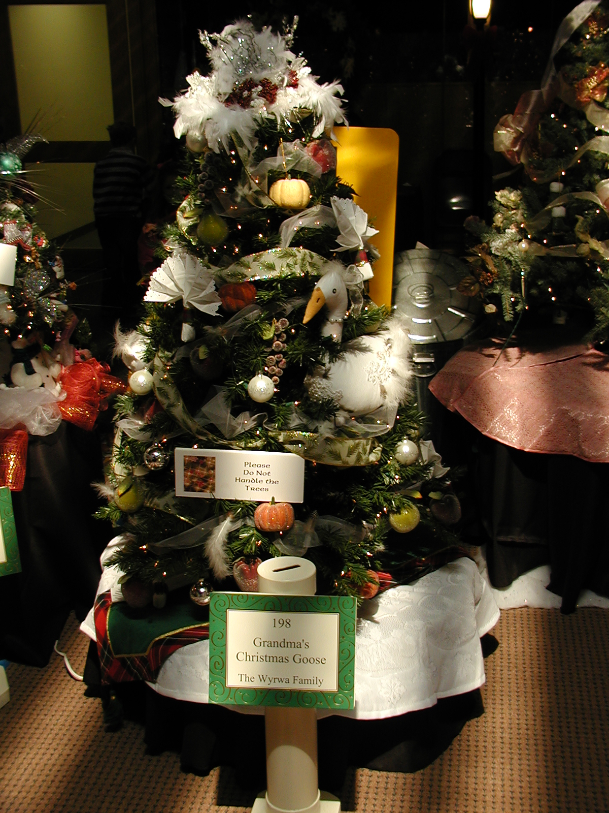 Picture #28: Grandma's Christmas Goose Small: 600x846, 104,216 bytes (102K), (html file) Large: 1200x1600, 1,150,567 bytes (1.1M), (html file) Copyright, Michael Meissner 2003, All rights reserved Olympus C-2100UZ camera f/2.8, ISO 100, 1/250 sec, 8.4mm, shutter priority, SHQ, cloudy, matrix metering 35mm equivalent focal length 47.0mm Taken by Michael Meissner on November 28, 2003 10:12:11 Last modified on December 11, 2003 at 11:00 Shutter speed of 1/125 or 1/250 may indicate use of flash |